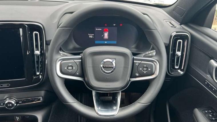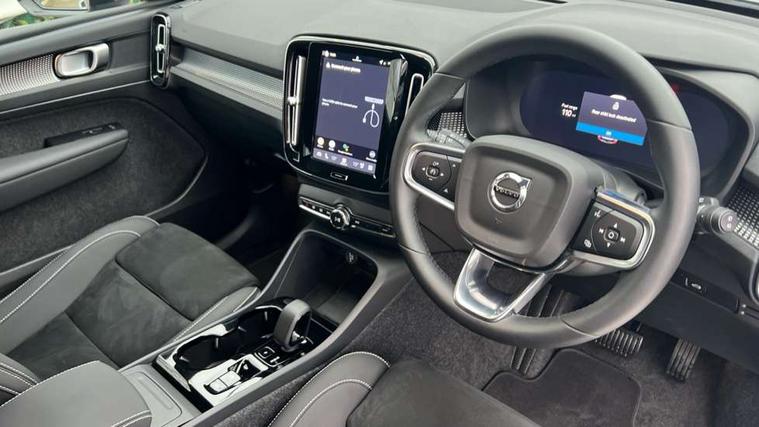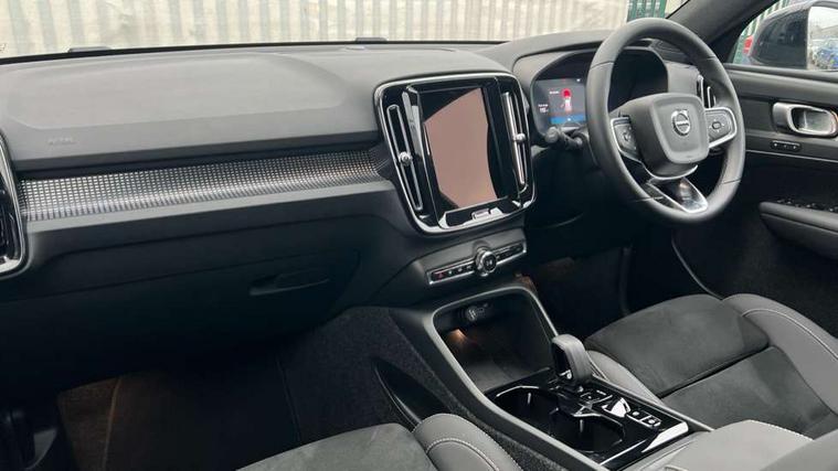 12.3" Progressive Driver Display, 9" centre console portrait touch screen, Adjustable steering wheel force, Android auto (Wired), Apple carplay (wired), Bluetooth handsfree system, Driver alert control, Driver assistance (pilot assist and adaptive cruise control), Driver awareness - Blind spot information system with steer assist, cross traffic alert with autobrake and rear collision warning and mitigation, E-call, Front and rear parking sensors, Front park assist, Google automotive services - Enabled entertainment apps, navigation with google maps, voice recognition with google assistant, Hands free power tailgate, Intelligent speed assistance, Lane keeping aid, Oncoming Lane Mitigation, Speed sensitive steering, Volvo cars services with app - Driving journal, engine remote start, remote door locking/unlocking and vehicle dashboard, Wireless/Inductive Mobile Phone Charging, Automatic transmission with start/stop and manual change functions, Dynamic chassis, DAB Digital radio, Steering wheel mounted remote controls, Adaptive brake lights with high level LED brake lights, Auto dimming feature for exterior door mirrors, Auto dimming interior mirror, Auto folding and heated power door mirrors, Automatic headlamp levelling, Automatic LED Headlights + Active high beam incorporating daytime running lights, Front aluminium tread plates, Front and rear electric windows, High gloss black front and rear skid plate, High gloss black front bumper deco, High gloss black mesh front grille with high gloss black surround, High gloss black window trim, Home safe and approach lighting, Integrated roof rails in high gloss black, LED front fog lights, Puddle lights, Rain sensor with automatic windscreen wiper activation, Rear side wing doors, Rear wiper, Roof antenna, Roof spoiler, Visible VIN plate, 12V socket in front tunnel console and luggage compartment, 2-Zone electronic climate control with CleanZone air quality system and pollen filter, 3 seat bench in 2nd row, 3 Spoke tailored steering wheel with chrome trim, 60/40 versatile split folding rear seat, Centre console cupholders and storage, Charcoal carpet and floor mats, Charcoal headlining, Connect suede textile/microtech upholstery, Flexible load floor and grocery bag holder, Front headrests, Front seat cushion extensions, Glovebox bag hook, Heated front seats, Height adjustable passenger seat, Height/reach adjustable steering column, High gloss centre tunnel deco, High level illumination - Front door pocket, front side step (under door), tailgate, instrument panel, front door inlay, rear courtesy&reading lights, Integrated waste bin, Isofix attachments on outer rear seats, Load cover, Load protection net, Mid level illumination - Front footwell, luggage & glovebox compartment, front cabin courtesy & reading lights, illuminated vanity mirrors+ticket holder, Multi directional lumbar support for driver and passenger seat, Power driver seat with memory + exterior mirrors memory, Rear armrest with cupholders, Rear headrests, Single front passenger seat, Underfloor luggage compartment storage, Climate pack without heated front seats - XC40, 3x3 point rear seatbelts, City safety with steering support with Pedestrian + cyclist + front collision warning with full auto brake and rear auto brake, Driver and passenger airbags, Drivers knee airbag, Electronic parking brake with auto hold, First aid kit, Front and outer rear seatbelt reminder and pretensioners, Front seats SIPS airbags, Hill descent control - Off-road drive mode, Hill start assist, IC (Inflatable Curtains) - Full Length, Passenger airbag cut-off device, Power child locks on rear doors, Road sign information display, Run off Road Protection, SIPS (Side Impact Protection System), Slippery road and hazard light alert, Stability and Traction Control with Spin control, Engine Drag Control and Corner Traction Control, Tyre pressure monitoring system, Vehicle deceleration control with Anti-lock Brake System, Electronic Brake Distribution and Emergency Brake Assist, Warning triangle, WHIPS whiplash protection system - front, 2 x Key integrated remote control central locking including with deadlocking system and auto open/close windows, Anti-theft alarm including immobiliser/volume sensor + level sensor, Keyless drive includes keyless entry and keyless start, Locking wheel nuts,