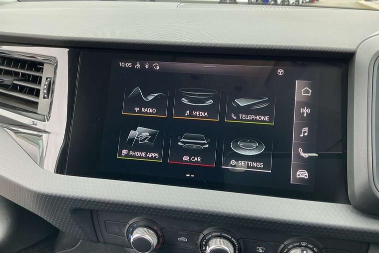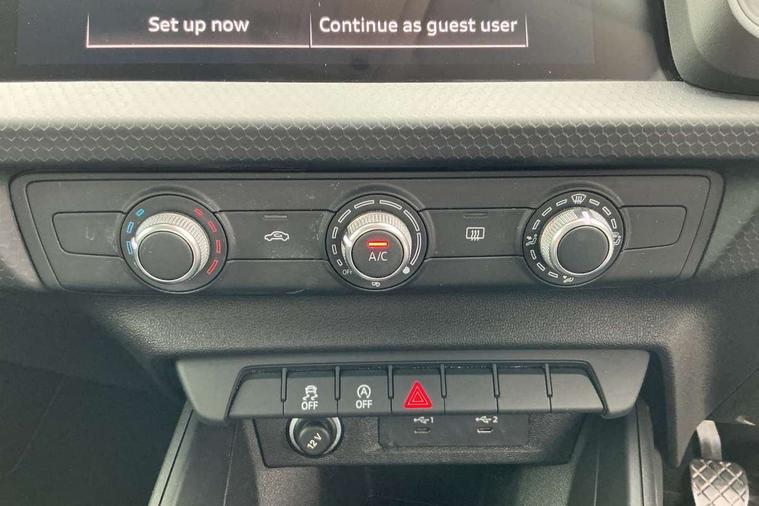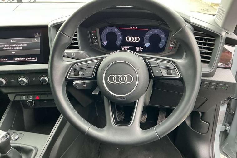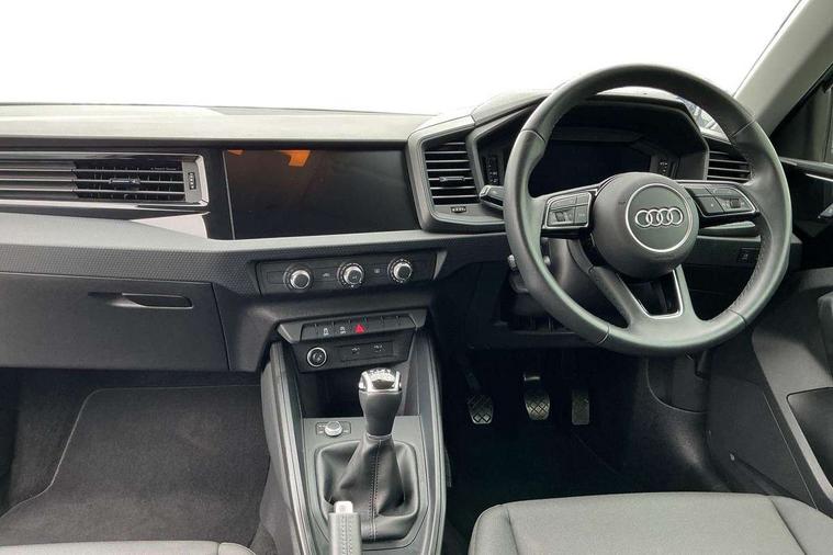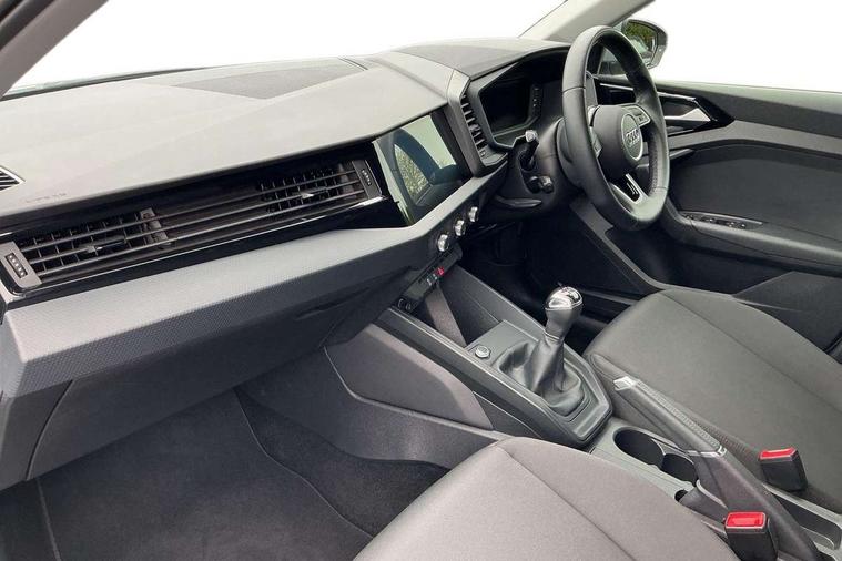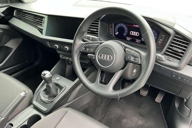 10.25" Digital instrument cluster display classis style instrument dials + speed, odometer, time, outside temperature, telephone menu + fuel level warning, Audi connect safety emergency and service including E-call, Audi smartphone interface with connect compatible smartphone via USB directly MMI display + Nav, music, third party apps controlled via MMI controller, Automatic start/stop system, Bluetooth interface, Driver's information system, Electromechanical power steering, Lane departure warning system, Service interval indicator, Speed limiter, Voice control system, Washer fluid level indicator, Dynamic suspension, 1 x SDXC card reader, 2 x USB type C connection points, 6 passive loudspeakers, DAB Digital radio, MMI radio plus with 8.8" colour MMI display screen and MMI touch, Auto dimming rear view mirror, Body coloured bumpers, Body coloured door mirrors, Electric front and rear windows, Electrically adjustable, heated, folding door mirrors with integrated LED side indicator, Front side air inlets with front spoiler lip and rear diffuser in matt black grained, Heat insulating glass windscreen and side windows, Heated rear windscreen, LED headlights with LED rear lights + dynamic rear indicators + headlight adjustment and high beam, turning light + LED daytime running lights, Radiator grille in matt black, Rain and light sensors, Rear fog lights, Rear wiper, 12V socket in centre console with two cup holders, 3 rear seats with headrests, 3 spoke leather multifunction plus steering wheel, 40:60 Split folding rear seat or folded fully, Air vents, door handle recesses and centre console in black, Delta cloth upholstery, Driver and passenger seat with manual height adjust with forward and backwards adjustment, Front head restraints, Front/rear floor mats, ISOFIX child seat mounting for front passenger and outer rear seats including top tether attachment point of outer rear seats, Leather gear knob with aluminium trim, Leatherette handbrake grip, Luggage compartment light with front and rear reading lights, Manual air conditioning, Titanium grey cloth headlining, Luggage compartment pack - A1, 3x3 point rear seatbelts, Audi pre-sense front with pedestrain and cyclist recognition, Brake assist function, Driver and front passenger airbag with front side and head airbags, Electronic Stability Control including ABS, EBD, ASR and EDL, Front and rear seatbelt reminder, Front passenger airbag deactivation switch, Hill hold assist, Seatbelt height adjustment for front seats, Seatbelt monitoring, Tyre pressure warning light, Warning triangle and first aid kit, Anti theft alarm, Anti theft wheel bolts and loose wheel warning, Immobiliser, Remote central locking with 2 foldaway keys, Black inlays polygon structure, 15" 5 arm design alloy wheels,