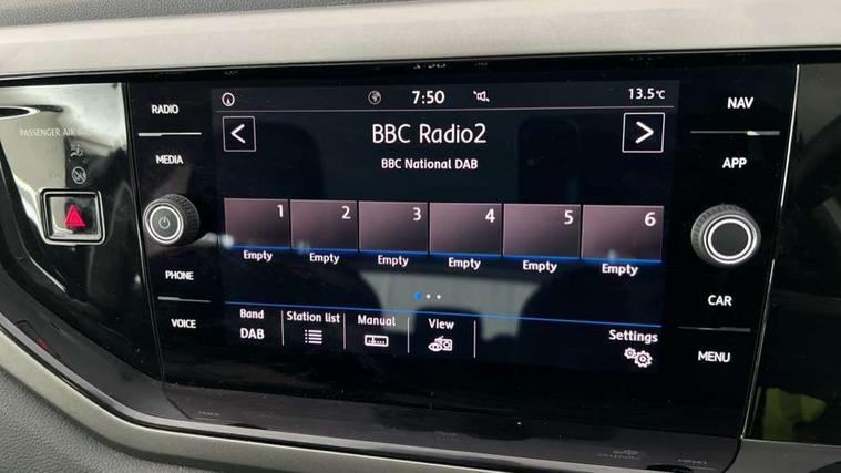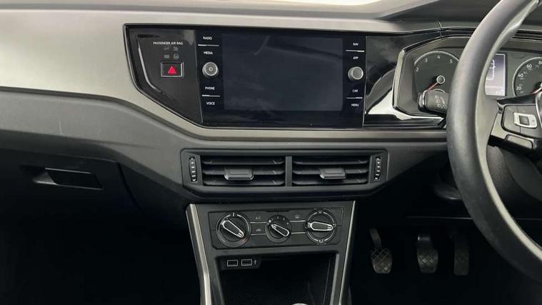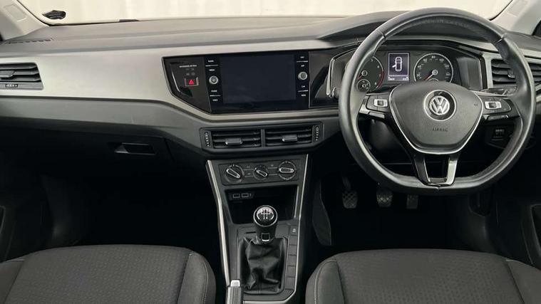 App-Connect, Bluetooth Telephone preparation, Discover navigation + European map data, Driver alert system, Multifunction colour display, PAS - speed related, Service interval indicator, Start/stop system, Trip computer, Warning buzzer and light for front seatbelts unfastened, Battery regeneration during braking, 6 speakers, Composition media system with radio, glovebox mounted CD, colour touch screen, SD card, aux-in, USB, multimedia interface, DAB Digital radio, Black grille with chrome surround, Black radiator grille with chrome insert, Body colour bumpers, Body colour door handles, Body colour rear spoiler, Body coloured side sills, Electric front windows, Front wash/wipe with interval delay, Fully galvanised body, Heat insulating tinted glass, Heated rear window with auto timer, High level 3rd brake light, LED daytime running lights, LED rear number plate lights, Rear electric windows, Rear windscreen washer and wiper with interval delay, 12V power socket in centre console, 2 bag hooks in luggage compartment, 2 cupholders, 3 rear head restraints, 3 spoke steering wheel, 4 grab handles, 60/40 split folding rear seat, Centre console storage, Chrome interior door handles, Chrome plated light switch, Driver/front passenger seat height adjustment + underseat drawers, Driver/passenger sunvisors with illuminated vanity mirrors, Dust/pollen filter, Front door pockets, Front seat backrest storage nets, Front/rear reading lights, Gear lever gaiter in high glass black trim surround, Glovebox, Handbrake grip button in chrome effect, Height/reach adjustable steering column, Instrument lighting, white adjustable panel illumination, Interior light with delay, Isofix Preparation 2 Rear child seats, Jack and tool kit, Luggage compartment cover, removable, Luggage compartment lighting, Multifunction leather steering wheel with leather gear knob/handbrake grip, Storage compartment in front doors, Storage compartment in rear doors, Storage compartment under front seats, Sunglasses holder, Variable boot floor, Variable Luggage compartment, Light and sight pack - Polo, 3 point height adj front seatbelts + pretensioners, 3x3 point rear seatbelts, ABS, Automatic post collision braking, Driver/front passenger airbag, Driver/Passenger whiplash optimised head restraints, ESP with EDL + ASR, Front and rear passengers curtain airbag system including front side airbags, Front disc brakes and rear drum brakes, Front passenger airbag deactivation, Hill hold control, Hydraulic Brake Assist (HBA), Two tone horn, Tyre pressure monitoring system, Alarm with remote central locking and interior protection, Electronic engine immobiliser, Air vents in High gloss black, Black high gloss trim, Full size spare wheel,