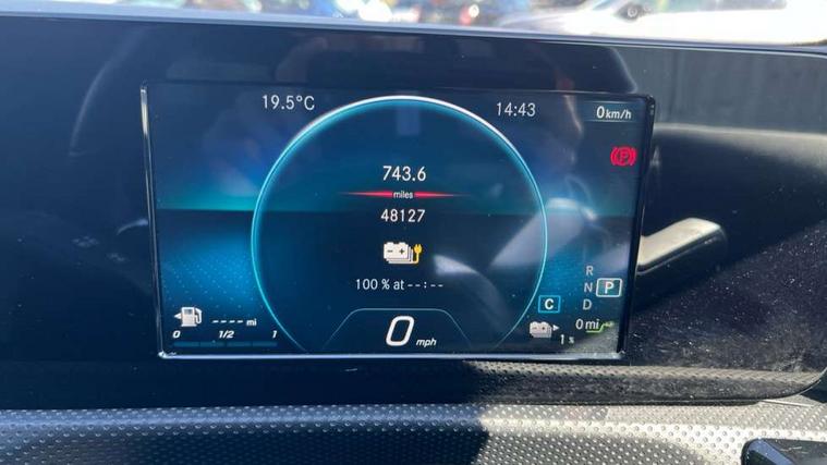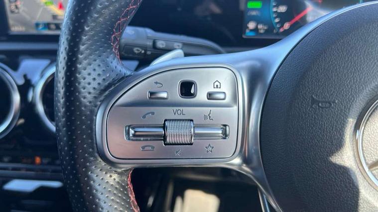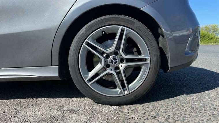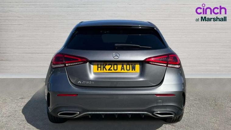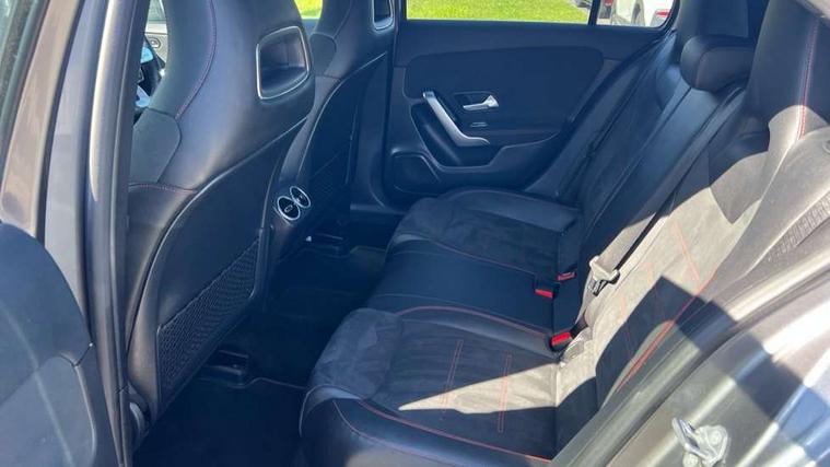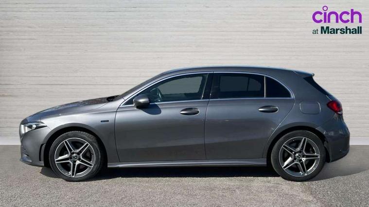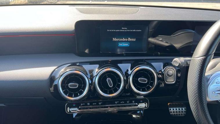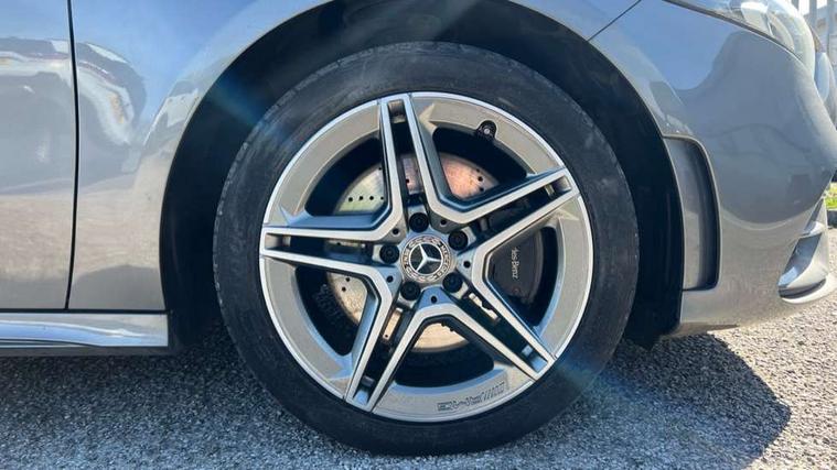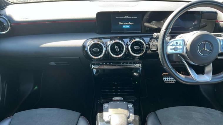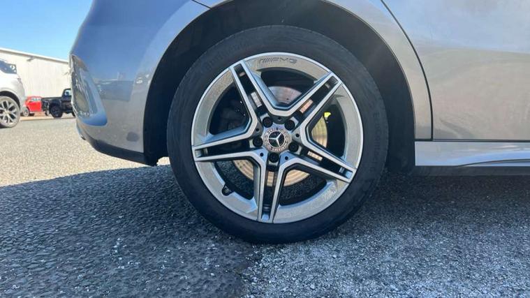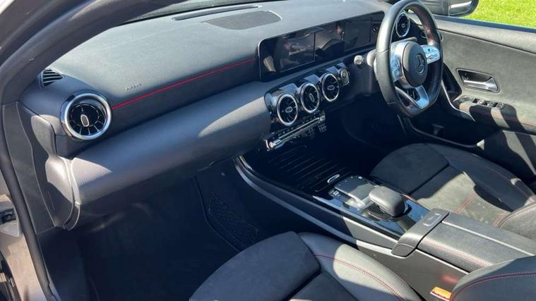 180 degree rear view camera with parking guidelines, 7" colour screen in instrument panel, 7" touchscreen media display, Acoustic ambient protection, Active lane keep assist, Attention assist, Brake pad wear indicator warning light, Car wash mode, Cruise control + speed limiter, Direct steering, Dual bluetooth interfaces, DYNAMIC SELECT with a choice of driving modes (ECO, Comfort, Sport and Individual), ECO start/stop function, Fluid level warning indicator for fuel, oil, coolant and washer fluid, Hard-disk navigation, Hey Mercedes Voice activation, Lamp failure indicator, Mercedes me connect including emergency call system, accident recovery, breakdown and maintenance management, Outside temperature gauge, Owners manual in English, Pre-installation for private car sharing, Pre-installation for Vehicle Monitoring, Pre-installation for Vehicle Setup, Preinstallation for Mercedes Benz link, Service indicator (ASSYST), Speed sensitive power steering, Trip computer, 7.4 kW monophase on board charger, Comfort suspension, Mode 3 charging cable 11 kW, Rear axle multi-link, 2 USB ports (type C) in rear stowage compartment and one in front of center console, 6 speakers, DAB Digital radio, MBUX multimedia system with DAB digital radio and touchpad including satellite navigation, Mercedes-Benz sound system - 100W, 4 Electric Front and Rear windows, Adaptive brake lights, AMG bodystyling - Front apron with splitter in chrome, rear apron with chrome trim and chrome visible trim elements in tailpipe, Black weather strip, Body colour bumpers, Body colour door handles, Body colour side skirt, Body coloured door mirrors, Chrome beltline trim, Diamond radiator grille with chrome pins and silver louvre + chrome insert, Electric adjustable and heated door mirrors with integrated LED side indicators, EQ badging, Exhaust system - Twin visible tailpipes in polished stainless steel, Headlamp assist automatic headlamp activation, Heated glass rear windscreen + timer control, LED high performance headlamps with integrated LED daytime running lights, LED tail lamp, LED third brake light, Privacy glass, Radio aerial, Rain sensing windscreen wipers with two sensitivity settings, Rear fog lights, Rear wiper, Window line trim strip in chrome, 3 pin charging cable plug, 3 Spoke flat bottom leather multi function steering wheel with perforated leather in grip area, 40:20:40 split folding rear seats, Artico man-made leather/Microfibre Dinamica upholstery with red contrast stitching, Auto Mercedes-Benz child seat recognition sensor, Black air vents with surround in silver chrome, Black roof lining, Brushed stainless steel sports pedals with rubber studs, Charging socket, Controller on centre console with chrome surround, Floor mats with stitched edging and AMG lettering, Front centre armrest with storage compartment, Front door sills with Mercedes Benz lettering, Front seat backs luggage nets, Front seat cushion length adjustment, Galvanished gear shift paddles on steering wheel, Heated front seats, Height/reach adjustable steering column, Interior mirror with reading lamps in black and frameless, Manual height adjustable front seats, Pre-entry climate control, Rear head restraints, Seat occupancy sensor for front passenger seat, Sports seats with integrated headrests, Stowage compartment in centre console with retractable cover, Sunvisors with illuminated vanity mirrors, Touchpad on center console, Twin front cupholders, Two zone thermotronic luxury automatic climate control, Light and sight pack - A Class, Seat comfort pack - A Class, 3 rear 3 point seatbelts, ABS with Brake Assist, Active bonnet, Active brake assist includes forward collision warning system with autonomous braking, Adaptive brake assist with hold function and hill start assist, Childproof locks manually operated for rear doors and electrically operated for rear power windows, Crash responsive emergency lighting, Driver and passenger head and side airbags, Drivers knee airbag, Dual stage driver/passenger airbags, Electronic parking brake, ESP curve dynamic assist, ESP with ASR, Front and rear seatbelt reminder, Front brake callipers with Mercedes Benz lettering, ISOFIX and top tether child seat fixing points in two outer rear seats, Perforated front brake discs, Radar based regeneration, Tyre pressure monitoring system, Warning triangle and first aid kit, Window airbags, Alarm system/interior protection/immobiliser, Keyless Go, Remote central locking and crash sensor with emergency opening function, Urban guard vehicle protection system with immobiliser and interior protection, Black seatbelts, Dinamica microfibre trim in black, 18" AMG 5 twin spoke light alloy wheels in titanium grey with highsheen finish, Summer tyres, Tirefit sealant kit,