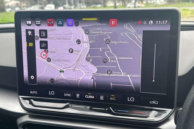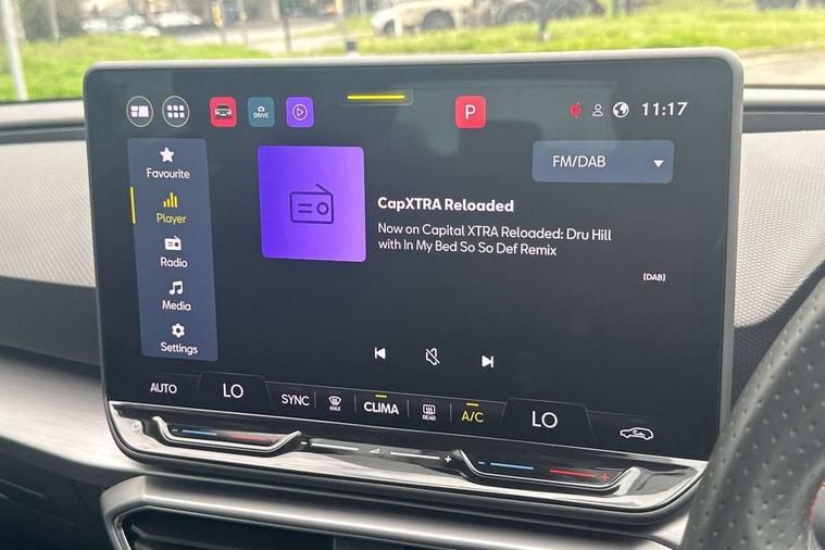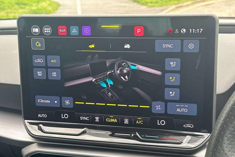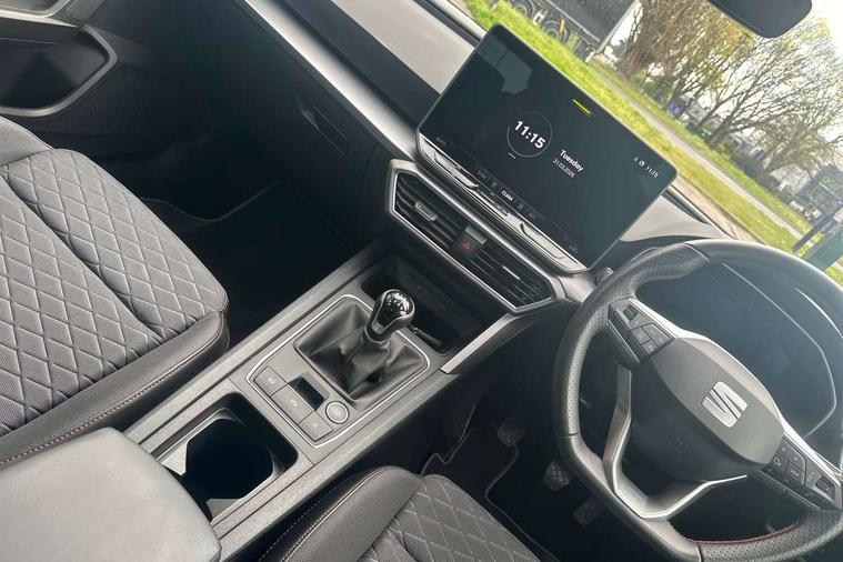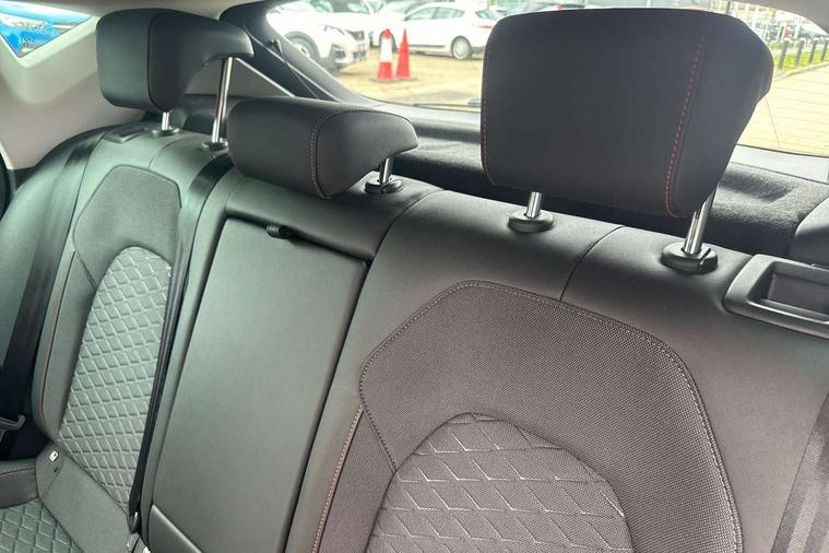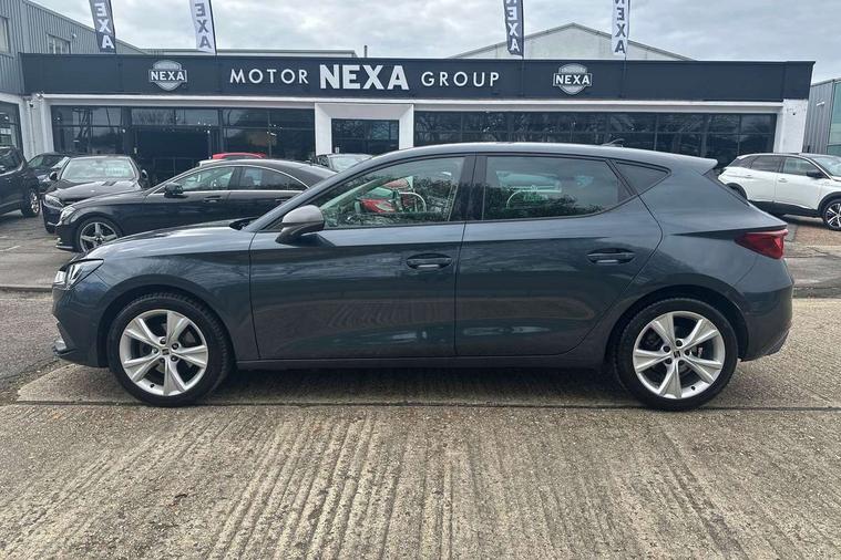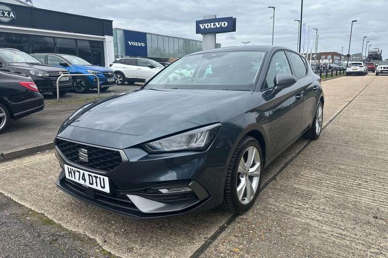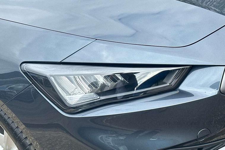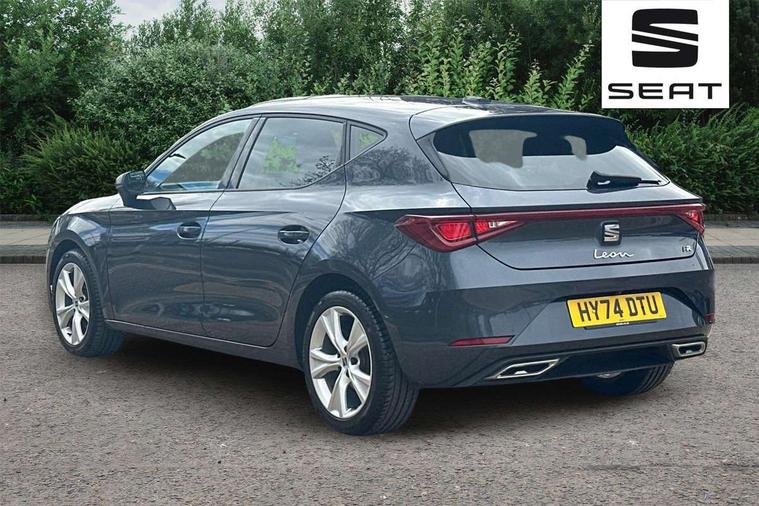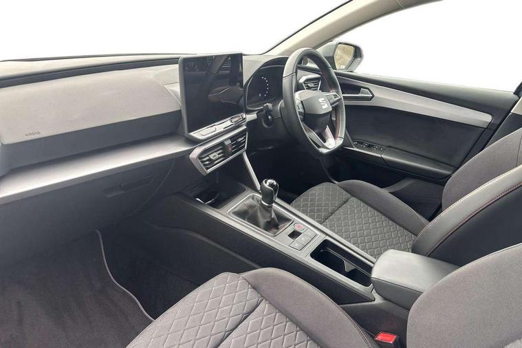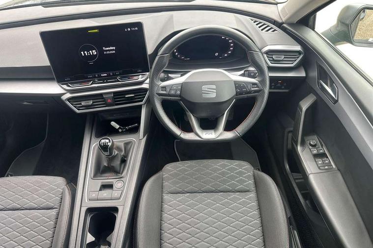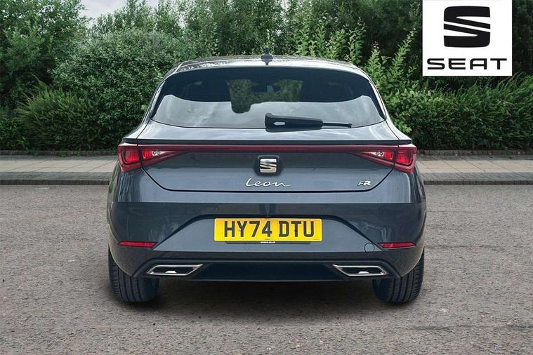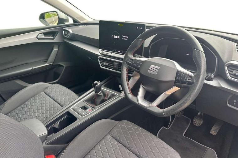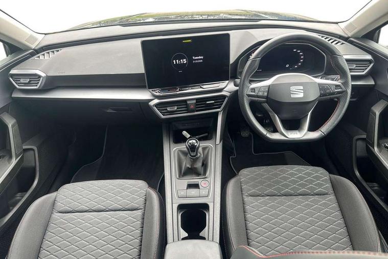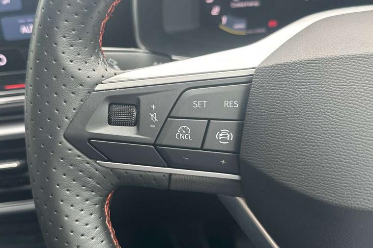 Digital cockpit with multifunction display, Driver attention alert with drowsiness warning, Dynamic road sign display, E-call, Front assist with forward collision warning braking reaction to vehicles, pedestrians and cyclists, Full link smartphone integration with Mirror Link, wireless Apple CarPlay and wired Google Android Auto, Intelligent speed assist, Lane assist, Lockable tailgate, Park assist (inc front/rear parking sensors), Power assisted speed sensitive electro-mechanical steering, Rear view camera, RPM, trip computer, outside temp gauge, instrument light brightness, low fuel warning light, lights on reminder, gearshift indicator, SEAT drive profile with 4 modes (Eco/Normal/Sport/Individual), throttle response, Service interval indicator, Start/stop system with regenerative braking, Wireless phone charging, Sports suspension, XDS electronic differential lock and dynamic traction support, 2 front and 2 rear USB-C ports, 7 speakers, Auxiliary input socket, Auto dimming rear view mirror, Body colour door handles, Body coloured bumpers, Cosmo grey exterior mirrors with integrated LED indicators, Dark tinted rear windows, Electric front/rear windows, Electrically adjustable, heated and folding door mirrors, FR sports bumper, Illuminated front door sill, LED front fog lamps, LED headlights and infinite rear tail lights, LED rear fog lamp, Rear side wing doors, Rear wash/wipe, Separate daytime running light with automatic headlight control and coming home feature, Third brake light, Welcome light silhouette from exterior mirrors, Windshield wiper intermittent control with light/rain sensor, 12v power point in centre console, 3 seat bench in 2nd row, 60/40 split rear bench seat with armrest, Ambient lighting with glovebox, footwell and single monocolour, Driver/passenger manual seat height adjustment, Dust/pollen filter, Flat bottomed perforated leather steering wheel with red stitching and FR logo and leather gear stick, Folding boot cover, Front and rear height adjustable headrests, Front and rear reading lights X 4, Front centre armrest, Front seatback storage pockets, Grey headlining, Height/reach adjust steering wheel, ISOFIX points in outer rear seats with top tether anchorage points, Luggage tie-down hooks, Lumbar adjustment for front seats, Single front passenger seat, Sunvisors with covered illuminated mirror, Three zone climate control, Two tone cloth upholstery, Media system plus with navigation - Leon, 3 point seatbelts on all rear seats, ABS, Brake control system - ESC and brake booster, Child proof door locks, Driver and front passenger airbags with front passenger airbag de-activation, front side and curtain airbags, Electronic parking brake, Extended safety system - seat belt tensioner, window closure and hazard lights, Hill hold control, Rear disc brakes, Seat belt reminder for front and rear seats, Tyre pressure monitoring system, Anti theft alarm system with interior monitoring in cab, backup horn and towing protection, KESSY Go (Keyless start), Locking wheel bolts, Chrome interior detailing, 17" Dynamic Bi-spoke alloy wheels with 91W tyres, Tool kit,