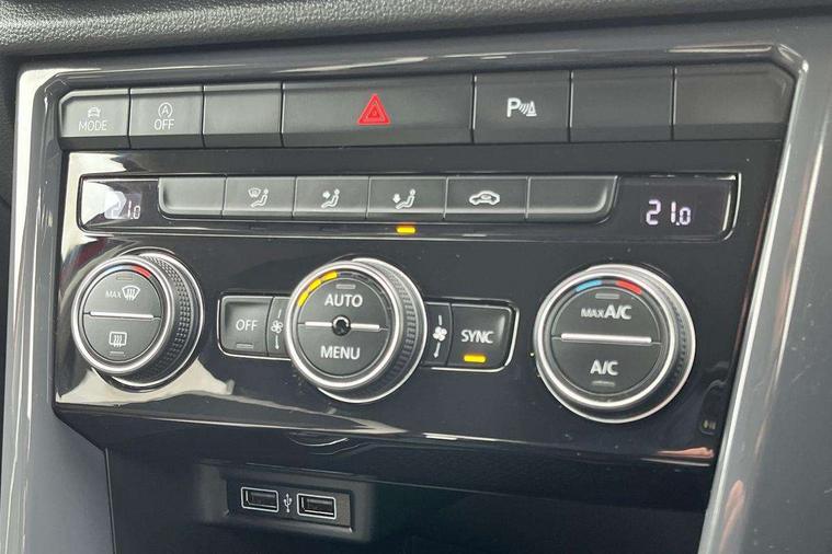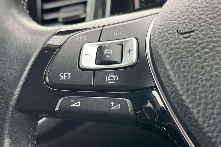 Space and weight saver spare wheel, Alarm with interior protection and deactivation via infotainment system, Electronic engine immobiliser, Remote central locking with 2 remote folding keys, DAB Digital radio, Dynamic navigation based on TMC+, Multi device interface (MDI) with USB connection, Music playback - MP3, WMA and AAC files, Premium USB cable in choice of either Apple or Android smartphone compatibility, SD card slot, Simultaneous pairing of 2 compatible mobile devices, SMS functionality - read, compose and send SMS messages using touch-screen display, Three route options - Fast, Short, Eco, Title and cover art display, 3 rear three point seatbelts, ABS, Curtain airbags, Driver and front passenger safety-optimised head restraints, Drivers and front passengers airbags with passengers deactivation switch, Electronic parking brake with auto hold, Electronic stability control (ESC) includes ASR, EDL, EDTC and trailer stabilisation function, Front seat side impact airbags, Predictive pedestrian protection, Rigid safety cell with front and rear crumple zones, Three point height adjust front seatbelts + pretensioners, Tyre pressure loss indicator, Ventilated front and rear disc brakes, Volkswagen roadside assistance, Auto dimming interior rear view mirror, Black grained lower door protectors, Black grained wheel arches, Body colour bumpers with silver metallic underbody fascia, Body colour door handles, Chrome effect left and right trapezoid exhaust tailpipe fascia surround, Chrome trim on upper and lower radiator grille, Electrically foldable, adjustable and heated door mirrors with puddle lights and reverse activated kerb-view adjustment on passenger's door mirror, Front and rear electric windows, Front fog lights with static cornering function, Front windscreen wiper with intermittent wipe and 4 position delay, Fully galvanised body, Heated rear window, High level 3rd brake light, LED darkened rear light clusters, LED rear number plate lights, Manual coming/automatic leaving home lighting function, Rain sensor, Rear tinted glass from B-pillar backwards approx 65% tinted, Rear wash/wipe with intermittent wipe setting, 12V socket in centre console storage area, 2 Front and rear reading lights incorporating LED technology, 3 rear head restraints, 4 load lashing points in luggage compartment, Ambient lighting in front footwell and light strips below trim in front doors, Branded points of interest, Climate control - 2 zone electronic air conditioning with automatic air recirculation and allergy filter, Drawer under drivers seat, Front centre armrest with storage compartment, longitudinal and height adjustable and two rear air vents, Front cupholders x 2, Front footwell illumination, Front seat back storage pockets, Glovebox, Height adjustable front seats, Height/reach adjust steering wheel, Illuminated vanity mirrors, Instrument lighting, white adjustable panel illumination, Interior light delay, Isofix easy fit child seat preparation for 2 outer rear seats, Load through provision with single cup holder when folded down, Luggage compartment cover, removable, Luggage compartment lighting, Split folding rear seat backrests with centre armrest, Storage compartment in left and right luggage area, Storage compartment in rear doors, Storage compartments in driver and front passenger doors, App-Connect, 'Lights On' Reminder warning buzzer, 2 USB connection charging sockets, Active Info Display, 10.3" high resolution TFT dash display screen with customised information, Adaptive cruise control with front assist, radar sensor controlled distance monitoring, city emergency braking, Automatic start/stop system, Bluetooth telephone and audio connection for compatible devices, Car information display, Car-Net Security and Service, Discover navigation, 8" touch screen navigation/infotainment system with Car-Net, European map, CD/radio, 2D/3D map and speed limiter, Driver alert system with audible and visual fatigue detection system, Driver tips and journey analysis, Driving profile selection - Eco, normal, sport or individual modes with Individual mode allows for steering, drive and air conditioning settings, Dusk sensor, Lane assist, Multifunction computer with visual gear change recommendation for fuel consumption, Service interval indicator, Think blue trainer driver tips and journey analysis, Voice activation, Warning sound and light for doors and tailgate open, Warning sound and light for front seatbelts unfastened, Battery regeneration during braking,