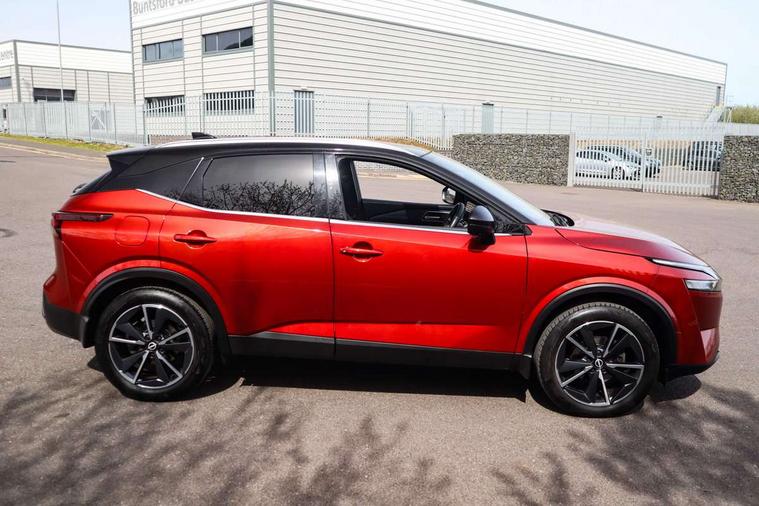 Advanced windscreen head up display, Android auto/Apple CarPlay (Wired), Blind spot warning, Drive modes (sport, normal, eco), Electric speed sensitive power steering, Emergency and breakdown call, Front and rear parking sensors, Full Digital 12.3" TFT Digital Combimeter, Google maps services - search, weather, 3D maps and Google street view, Hands free power tailgate, Idle stop/start system, Intelligent around view monitor, Intelligent Cruise control (ICC), Intelligent driver alert system, Intelligent forward collision warning, Intelligent lane intervention, Lane departure prevention, Lane departure warning system, Lane keep assist, Moving object detection, Nissan connect 12.3 inch touchscreen infotainment system, Nissan connect navigation, ProPilot, Push button starter, Rear cross traffic alert, Rear view camera, Remote control services - door locks, lights, horn and car locator, Telematics - notifications and connectivity services, TomTom live traffic services, Traffic jam pilot, Traffic sign recognition with legal speed adjustment, Trip computer, Virtual personal assistant and firmware over the air capability, Wireless apple carplay, Wireless charging pad, 6 speakers, AM/FM audio system with DAB, Bluetooth audio streaming, Front USB connections (Type-A and Type-C), Rear USB charging only ports (Type-A and Type-C), Auto dimming rear view mirror, Auto rear wiper when reversing, Automatic hazard signal with emergency stop signal, Body colour mirror caps, Body coloured door handles, Bodyside mouldings, Chrome side window finisher, Door handle with button, Electric auto folding door mirrors, Electrically adjustable and heated door mirrors with LED turn indicator, Follow me home headlights, Front and rear LED turning signals, Headlights auto levelling system, Intelligent auto headlights, LED daytime running lights, LED headlights with adaptive driving beam, LED rear lights, One touch front and rear electric windows with remote opening and closing, Partially body coloured bumpers, Privacy glass, Rear bumper with graphite insert, Rear reversing light (bulb lighting), Rear roof spoiler, Rear side wing doors, Rear styling plate, Shark fin antenna, Splash free rain sensing wipers, Super UV and infrared cut glass, Thermaclear heated windscreen, Three blink turn signal, 12v power socket in dashboard and luggage, 2x Rear coat hooks, 3 bench rear seats in 2nd row, 3 rear headrests, 4 folding assist grip, 6 Luggage hooks - 4 on floor, 2 on side, 60/40 split folding rear seat bench, Ambient lighting around centre console, Ambient lighting in front doors, Centre console storage tray, Chrome interior door handles, Cloth/syntech leather monoform upholstery, Dark black/blueish PVC wrapping, Dark headlining, Driver and front passenger sunvisors with illuminated vanity mirrors, Driver seat back pocket, Dual zone automatic climate control with pollen filter, Electrically adjustable driver seat, Electrically adjustable lumbar support for driver, Front and rear door storage, Front centre console and armrest, Front cupholders x 2, Front door with bottle holders, Glovebox with light, Hard trunk cover, Heated front seats, Heated steering wheel, Height adjustable driver's seat, Height adjustable front headrests, Height adjustable passenger seat, Leather steering wheel, Luggage board system, Luggage space lighting, Manual lumbar support on passenger seat, Manually adjustable passenger (slide recline + lifter), Multifunction steering wheel, Passenger seat back pocket, Rear armrest with 2 cupholders, Rear door bottle holders, Single front passenger seat, Soft PVC kneepad, Steering wheel gearshift paddles, Steering wheel switches, Tilt/telescopic adjustable steering wheel, Two rear isofix child seat anchorage points with top tether, Welcome light and doors with console tray ambient lighting, Glass roof pack with roof rails - Qashqai, 3x3 point rear seatbelt pretensioners + load limiters, ABS with EBD and brake assist, Active brake limited slip, Auto hold function, Child locks on rear doors, Curtain and front side, far side airbags, Driver and passenger airbags, Driver, passenger and 2nd row rear seat belt reminder, Electronic parking brake, Front seatbelt pretensioners + load limiters, Height adjustable front seatbelts, Hill start assist, Intelligent blind spot intervention, Intelligent front emergency braking with pedestrian, cyclist recognition and junction assist, Intelligent rear automatic braking, Tyre pressure monitoring system, Vehicle dynamic control, Capless fuel filler, Engine immobiliser, Intelligent Key, Remote central door locking with deadlocking, Thatcham Cat.1 alarm, Interior instrumental panel C finisher, 19" Alloy wheels, Tyre puncture repair kit,