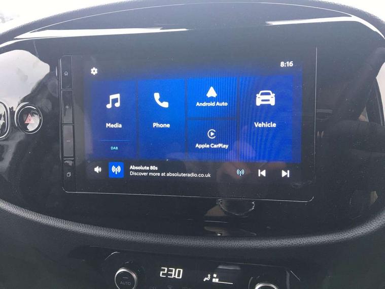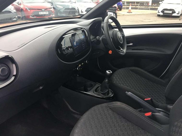 4.2" TFT colour screen, Adjustable speed limiter, Analogue speedometer, Bluetooth connectivity, Digital tachograph, Driver attention alert system, eCall emergency call system, Electric power steering, Intersection turn assist, Key reminder warning, Noise reduction kit, Pre collision system with emergency steering assist, Reversing camera with static guide lines, Smart phone integration with Apple car play/Android Auto, Speed limit display, Start and stop, Vehicle Stability Control (VSC), 4 speakers, 9" HD multimedia display touch screen with Toyota smart connect, DAB digital audio broadcast, USB connector, Auto headlights, Auto wipers, Automatic headlights cut-off, Bicycle towing hook, Black contrast roof, Black side protection mouldings, Black wheel arch mouldings, Body colour door handles, Body coloured front bumper, Boot door scuff plate, Eclipse black rear bumper, Electric heated door mirrors, Follow me home headlights, Front fog lights, Front power windows, Gloss black door mirrors, Gloss black upper front grille, Headlight cut-off reminder, LED daytime running lights, LED front light guide, LED High mounted stop lamp, Manual day/night rear view mirror, Manual headlight levelling, Pagoda roof, Power adjustable door mirrors, Power back door, Privacy glass, Projector halogen headlights, Rain sensor, Rear combination lights LED bulb type, Rear side wing doors, Rear windscreen defogger, Rear windscreen wiper, Short antenna, Variable intermittent windscreen wipers, 12v power outlet - front, 2 seat bench in 2nd row, 3 spoke leather steering wheel, 50/50 split folding rear seat, Adhesive roof headlining, Adjustable speed limiter switch on steering wheel, Audio and telephone switches on steering wheel, Auto air conditioning, Black insert on steering wheel, Black roof lining, Boot light, Centre room light, Chrome interior door handles, Chrome surround on air conditioning buttons, Clean air filter, Console box storage in body color, Fabric upholstery, Floor mats, Front and rear cup holders, Front head rest deco art, Front head restraints, Height adjustable driver seat, Intelligent adaptive cruise control switch on steering wheel, ISOFIX child restraint system on rear seats, Lane departure alert switch on steering wheel, Leather gearshift knob, Manual tilt steering wheel, Manually reclining and sliding driver seat, Manually reclining and sliding front passenger seat, Multimedia switches on steering wheel, Pollen filter, Rear door pockets, Rear head restraints, Satin silver insert on gear shift knob, Single compartment glovebox with lights, Single front passenger seat, Soft tonneau cover, Sun visors with mirror on driver and passenger side, Voice recognition switch on steering wheel, Toyota safety sense pack - Aygo X, Anti lock braking system + Electronic brake force distribution, Child safety door lock, Emergency brake light signal (EBS), Hill start assist control (HAC), Passenger airbag on/off switch, Seat belt reminder for front and rear seats, Supplement restraints system (SRS) - 6 airbags, Traction control, Tyre pressure warning system, Immobiliser, Remote power door locks, Black wheel centre caps, Tyre repair kit,