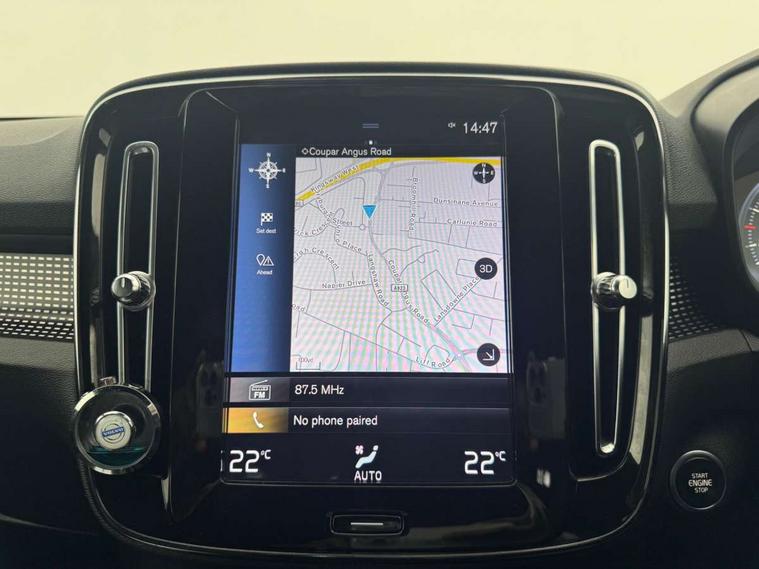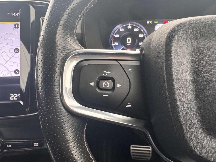 12.3" Active TFT crystal driver's instrument display, 9" Touch screen, Adjustable steering wheel force, Bluetooth hands free telephone kit, Drive mode selector, Lane keep assist with driver alert control, Oncoming Lane Mitigation, Sensus navigation system, Speed limiter, Speed sensitive steering, Voice control system, Volvo on call, DAB Digital radio, Steering wheel mounted remote controls, Adaptive brake lights, Auto dimming interior mirror, Automatic headlamp levelling, Black stone door mirrors, Black stone roof, Dark tinted glass for rear windows + rear screen + side luggage area window, Dual integrated exhaust pipes with high gloss black surround, Electrically adjustable and heated door mirrors, Embossed rear side roof pillar, Front and rear electric windows, Front tread plates, High gloss black front and rear skid plate, High gloss black lower front bumper, High gloss black mesh grille, High gloss black roof rails, High gloss black window trim, Home safe and approach lighting, LED front fog lights, LED Headlights + Active high beam incorporating daytime running lights, Rain sensor windscreen wipers, Rear wiper, Roof antenna, Roof spoiler, Visible VIN plate, 12V socket in front tunnel console, 2 zone electronic climate control with air quality system, 3 spoke leather steering wheel with chrome trim, 60/40 split folding rear seat, A-pillar parking ticket holder, Ambient lighting in door panels, Black headlining, Bright metal luggage threshold, Centre console cupholders, Centre console storage box, Contour sports seats with leather/nubuck upholstery, Cooled glovebox, Courtesy lights, Driver's lower storage shelf, Extended front seat cushions, Front door pockets, Front footwell illumination, Front tunnel storage net, Front/rear reading lights, Glovebox bag hook, Glovebox illumination, Height/reach adjustable steering column, High gloss centre tunnel deco, Illuminated driver/passenger vanity mirrors, Illuminated front cupholder, Illuminated luggage compartment, Illuminated tailgate, Isofix attachments on outer rear seats, Multicolour theatre lights, Passenger seat adjustable for lumbar support, Perforated leather gearknob, Perforated Leather Key Integrated Remote, Perforated leather steering wheel, Pollen filter, Rear armrest / integral cup holders / storage tray, Sports pedals, Underfloor stowage compartment, ABS/EBD, City safety, Drivers knee airbag, DSTC-Dynamic Stability and Traction Control, Dual stage driver/passenger airbags, EBA, Electronic parking brake with auto hold, Fasten seatbelt reminder, First aid kit, Front seat side impact airbags, Hill descent control, Hill start assist, Inflatable curtain, Passenger airbag cut-off device, Road sign information display, Run off Road Mitigation, Run off Road Protection, Seatbelt pre-tensioners, Side impact protection, Tyre pressure monitoring system, Warning triangle, WHIPS whiplash protection system - front, Anti-theft alarm including immobiliser/volume sensor + level sensor, Fuel flap with deadlocking system, Key integrated remote control central locking, Locking wheel nuts, Private locking, Cutting edge aluminium inlay,