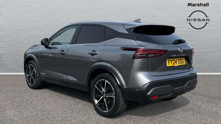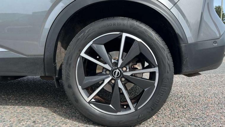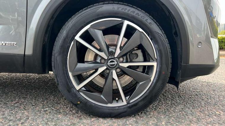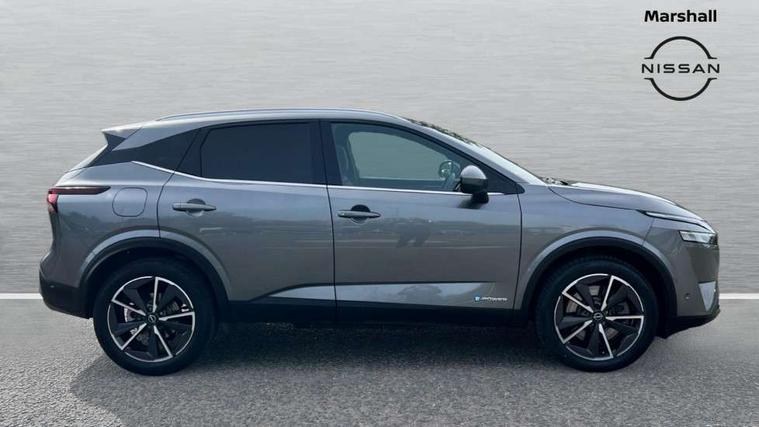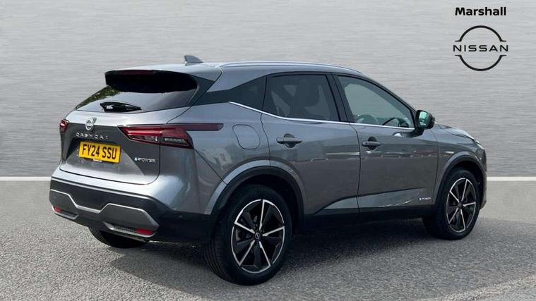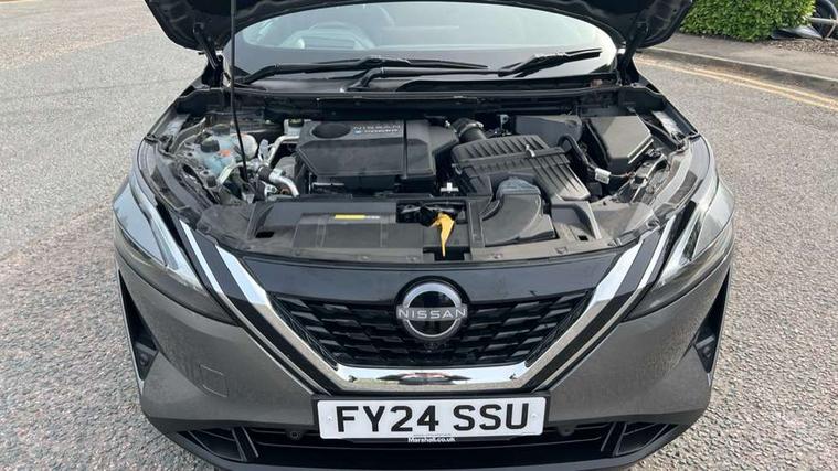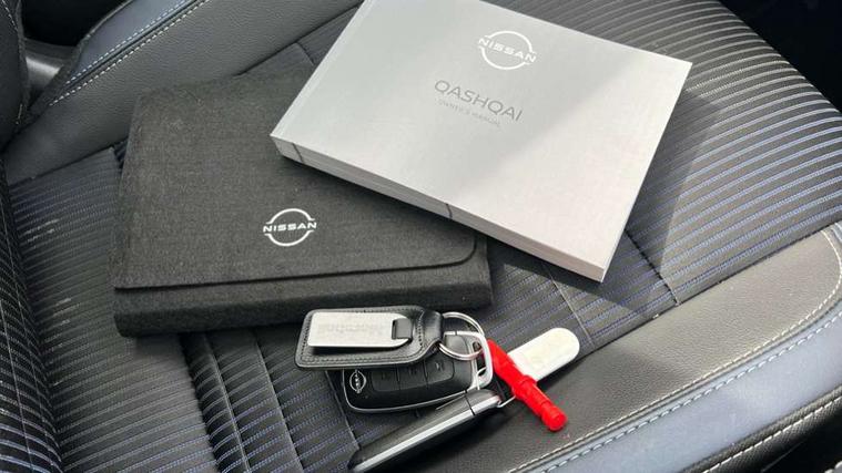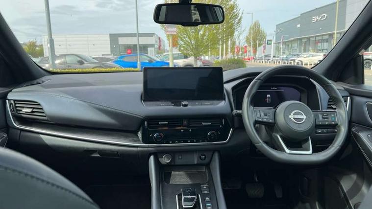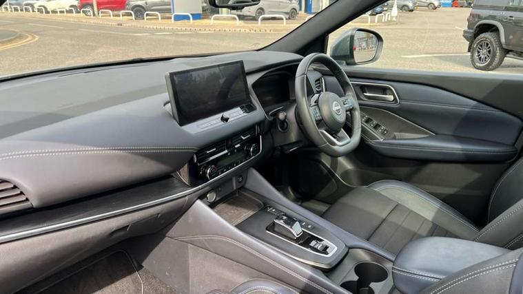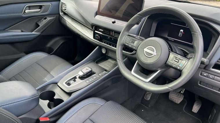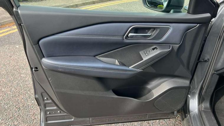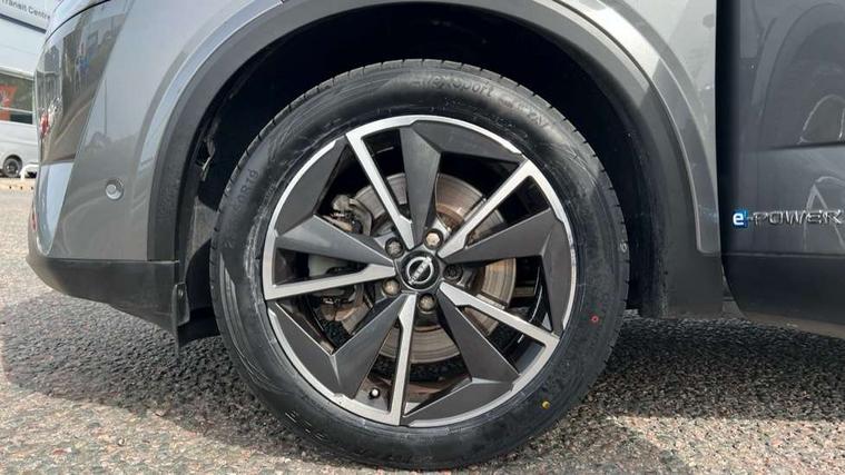 Advanced windscreen head up display, Blind spot warning, Drive modes (sport, normal, eco), e-Pedal step, Electric speed sensitive power steering, Emergency and breakdown call, Front and rear parking sensors, Full Digital 12.3" TFT Digital Combimeter, Google maps services - search, weather, 3D maps and Google street view, Hands free power tailgate, Idle stop/start system, Intelligent around view monitor, Intelligent Cruise control (ICC), Intelligent driver alert system, Intelligent forward collision warning, Intelligent lane intervention, Lane departure prevention, Lane departure warning system, Lane keep assist, Moving object detection, Nissan connect 12.3 inch touchscreen infotainment system, Nissan connect navigation, ProPILOT with Navi-Link, Push button starter, Rear cross traffic alert, Rear view camera, Remote control services - door locks, lights, horn and car locator, Telematics - notifications and connectivity services, TomTom live traffic services, Traffic sign recognition with legal speed adjustment, Trip computer, Virtual personal assistant and firmware over the air capability, Wireless Apple CarPlay and wired Android Auto, Wireless charging pad, 6 speakers, AM/FM audio system with DAB, Bluetooth audio streaming, Front USB connections (Type-A and Type-C), Rear USB charging only ports (Type-A and Type-C), Auto dimming rear view mirror, Auto rear wiper when reversing, Automatic hazard signal with emergency stop signal, Body colour mirror caps, Body coloured door handles, Bodyside mouldings, Chrome side window finisher, Door handle with button, e-POWER badging, Electric auto folding door mirrors, Electrically adjustable and heated door mirrors with LED turn indicator, Follow me home headlights, Front and rear LED turning signals, Headlights auto levelling system, Intelligent auto headlights, LED 3rd brake light, LED daytime running lights, LED headlights with adaptive driving beam, LED rear lights, One touch front and rear electric windows with remote opening and closing, Partially body coloured bumpers, Privacy glass, Rear bumper with graphite insert, Rear reversing light (bulb lighting), Rear roof spoiler, Rear side wing doors, Rear styling plate, Shark fin antenna, Splash free rain sensing wipers, Super UV and infrared cut glass, Thermaclear heated windscreen, Three blink turn signal, 12v power socket in dashboard and luggage, 2x Rear coat hooks, 3 bench rear seats in 2nd row, 3 rear headrests, 4 folding assist grip, 6 Luggage hooks - 4 on floor, 2 on side, 60/40 split folding rear seat bench, Ambient lighting around centre console, Ambient lighting in front doors, Centre console storage tray, Chrome interior door handles, Cloth/syntech leather monoform upholstery, Dark black/blueish PVC wrapping, Dark headlining, Driver and front passenger sunvisors with illuminated vanity mirrors, Driver seat back pocket, Dual zone automatic climate control with pollen filter, e-POWER shifter, Electrically adjustable driver seat, Electrically adjustable lumbar support for driver, Front and rear door storage, Front centre console and armrest, Front cupholders x 2, Front door with bottle holders, Glovebox with light, Hard trunk cover, Heated front seats, Heated steering wheel, Height adjustable driver's seat, Height adjustable front headrests, Height adjustable passenger seat, Leather steering wheel, Luggage board system, Luggage space lighting, Manual lumbar support on passenger seat, Manually adjustable passenger (slide recline + lifter), Multifunction steering wheel, Passenger seat back pocket, Rear armrest with 2 cupholders, Rear door bottle holders, Single front passenger seat, Soft PVC kneepad, Steering wheel switches, Tilt/telescopic adjustable steering wheel, Two rear isofix child seat anchorage points with top tether, Welcome light and doors with console tray ambient lighting, Glass roof pack with roof rails - Qashqai, 3x3 point rear seatbelt pretensioners + load limiters, ABS with EBD and brake assist, Active brake limited slip, Auto hold function, Child locks on rear doors, Curtain and front side, far side airbags, Driver and passenger airbags, Driver, passenger and 2nd row rear seat belt reminder, Electronic parking brake, Front seatbelt pretensioners + load limiters, Height adjustable front seatbelts, Hill start assist, Intelligent blind spot intervention, Intelligent front emergency braking with pedestrian, cyclist recognition and junction assist, Intelligent rear automatic braking, Tyre pressure monitoring system, Vehicle dynamic control, Capless fuel filler, Engine immobiliser, Intelligent Key, Remote central door locking with deadlocking, Thatcham Cat.1 alarm, Interior instrumental panel C finisher, 19" Diamond cut alloy wheels, Tyre puncture repair kit,