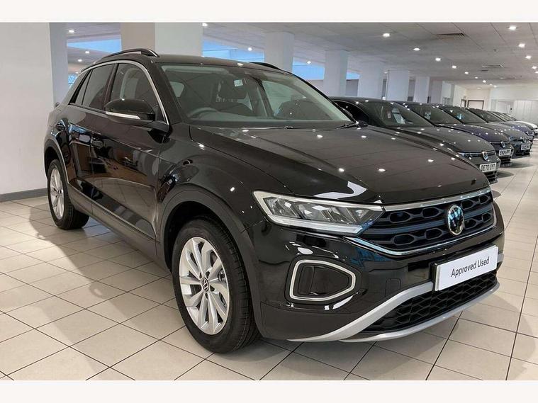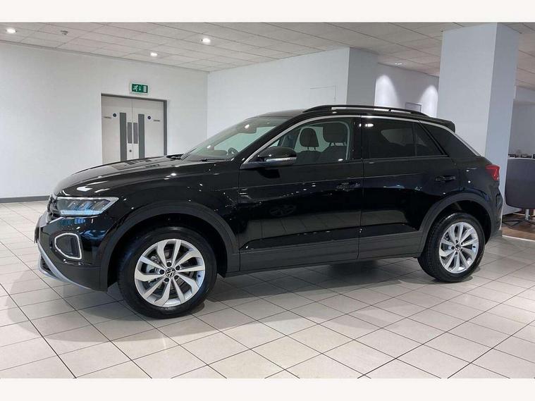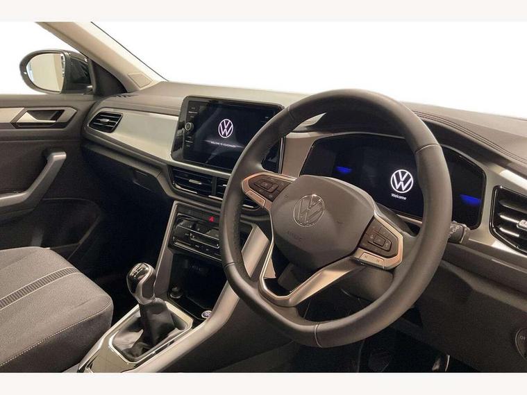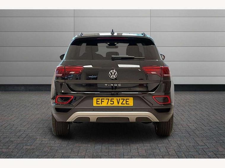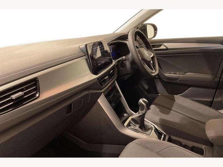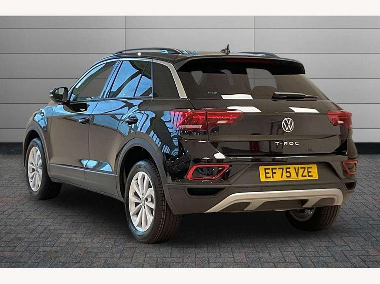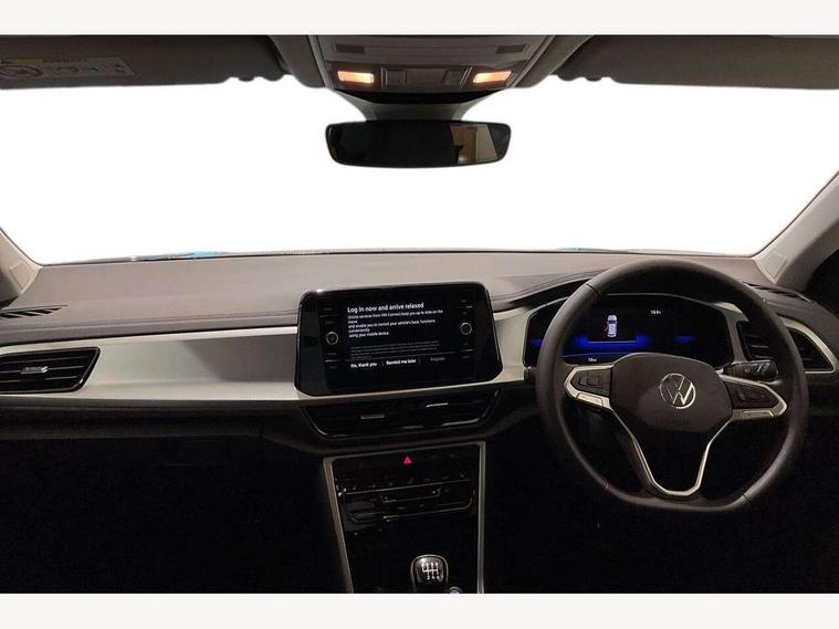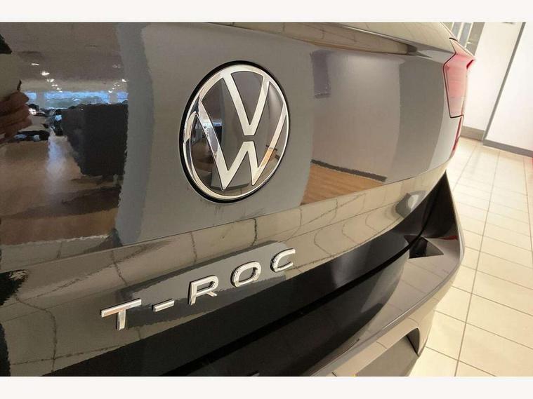 Advanced driver attention and drowsiness monitor, Dynamic road sign display, Emergency call service, Lane keeping system Lane Assist, Mobile phone interface, Modified key software - reduce switch off time for key status change to Long no motion, Online services, Park assist including front and rear parking sensors, Power assisted speed sensitive steering, Rear view camera, Service interval indicator, Tailgate/trunk lid release from outside, Think blue trainer driver tips and journey analysis, Warning sound and light for front seatbelts unfastened, Wireless app connect, Battery regeneration during braking, Front shock absorption, Rear shock absorption chassis with increased ride height, Start/stop function with battery regeneration, DAB Digital radio, Diversity antenna for FM reception, Music playback - MP3, WMA and AAC files, SD card slot, Simultaneous pairing of 2 compatible mobile devices, Title and cover art display, We Connect and We Connect Plus functionality, Auto dimming interior rear view mirror, Automatic hazard lights activation under emergency braking, Automatic headlight control with LED separate daytime running lights with coming/leaving home function, Black roof rails, Body coloured bumpers and radiator grille with chrome trim and front fog lamps with chrome bezel, Body coloured exterior mirror housings and door handles, Electrically adjustable and heated door mirrors, Extended roof spoiler, Exterior mirrors aspherical on driver side, convex on front passenger side, External USB type C socket and charging sockets, Front windscreen wiper with intermittent wipe and 4 position delay, Heated rear window, LED 3rd brake light, LED rear combination lamps, LED rear number plate lights, Power windows with comfort operation and circuit breaker, Privacy glass for rear side windows and rear window, Rain sensor, Rear exhaust tailpipe, Rear fog light on one side and reversing lights on both sides, Rear side wing doors, Rear wash/wipe with intermittent wipe setting, Remote electrically foldable door mirrors, puddle lights and reverse activated passenger's door mirror, 12V power socket in centre console, 3 rear head restraints, 3 seat bench in 2nd row, 4 load lashing points in luggage compartment, Air care climatronic air conditoning system with active combination filter and 2-zone temperature control, Black stitching for floor mats, Ceramique roof liner, Cloth upholstery, Door and side trim panel in cloth, Drawer under drivers seat, Driver/front passenger seat height adjustment, Front centre armrest, Front comfort sports seats, Front cupholders x 2, Front reading light, Front seat back storage pockets, Glove compartment door with light, Instrument lighting, white adjustable panel illumination, Interior ambient lighting and surround lighting, Interior light delay, Isofix child seat preparation, Leather gearshift handle, Load-through provision with cup holder when folded down ('Unsplit rear seat bench, split folding backrest, with centre armrest), Luggage compartment lighting, Lumbar support for driver's and front passengers seat, Non-folding front passenger seat backrest, Single front passenger seat, Storage compartment in left and right luggage area, Storage compartment in rear doors, Storage compartments in driver and front passenger doors, Sunvisors with illuminated vanity mirrors, Variable boot floor, height adjustable and removable, Driver assistance pack without proactive passenger protection - T-Roc Life/Match, 3 point height adj front seatbelts + pretensioners, 3 point seatbelts in outer rear with ECE label, ABS, Child locks on rear doors, City emergency braking and pedestrian monitoring, Driver and front passenger airbag with front passenger airbag deactivation, Driver and front passenger safety-optimised head restraints, Drivers seatbelt reminder, Electronic parking brake, Electronic Stability Control (ESC) inc EDL (Electronic Differential Lock) and ASR (Traction Control), Front and rear passengers curtain airbag system including front side airbags, Front disc brakes, Hill start assist, Predictive pedestrian protection, Rear disc brakes, Two tone horn, Tyre pressure loss indicator, Volkswagen roadside assistance, Alarm with interior protection, Keyless locking and starting system keyless access with safelock, Pewter matt decorative inserts for intrument panel, centre console and door panels at the front, Trims for alloy wheels,