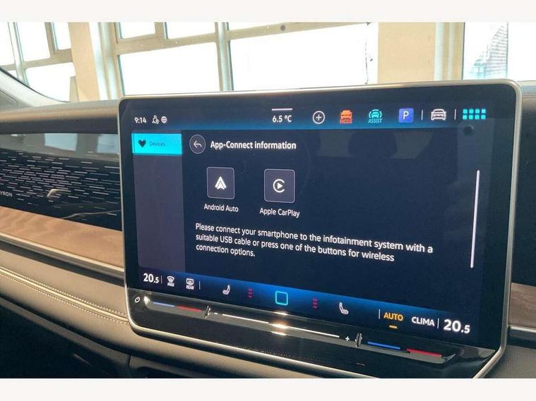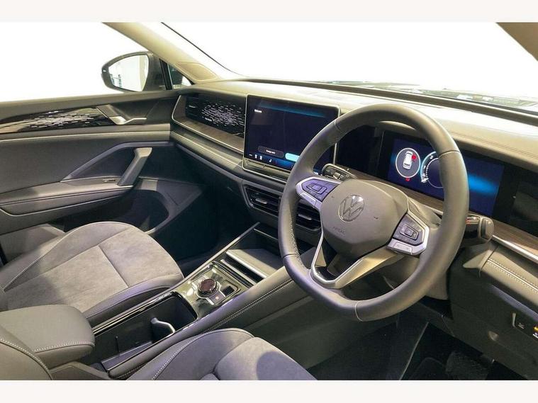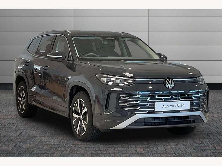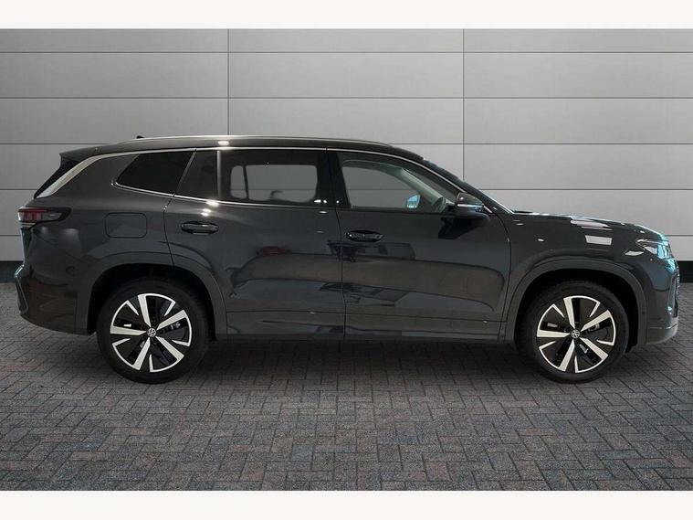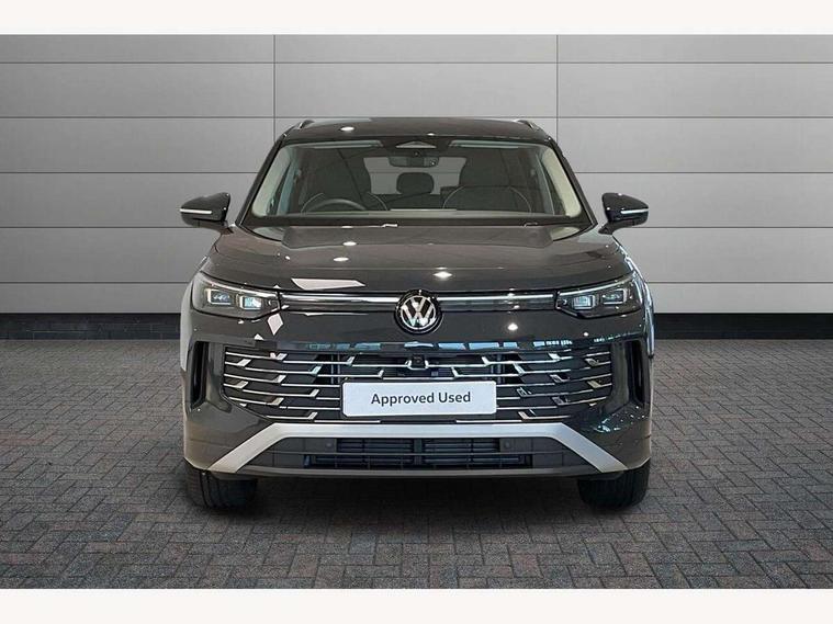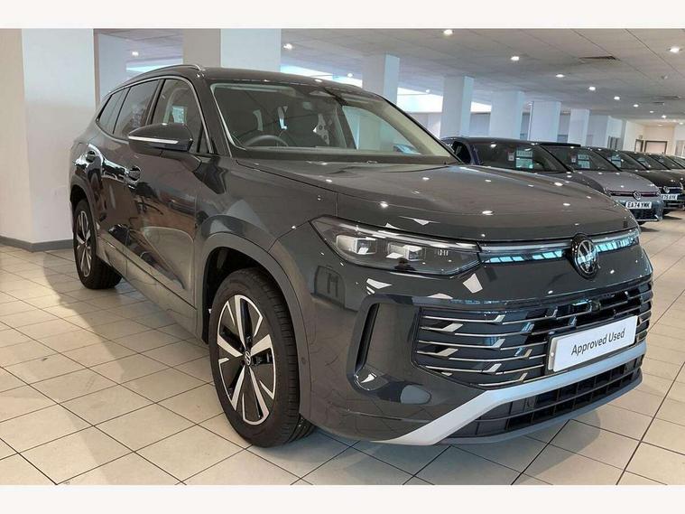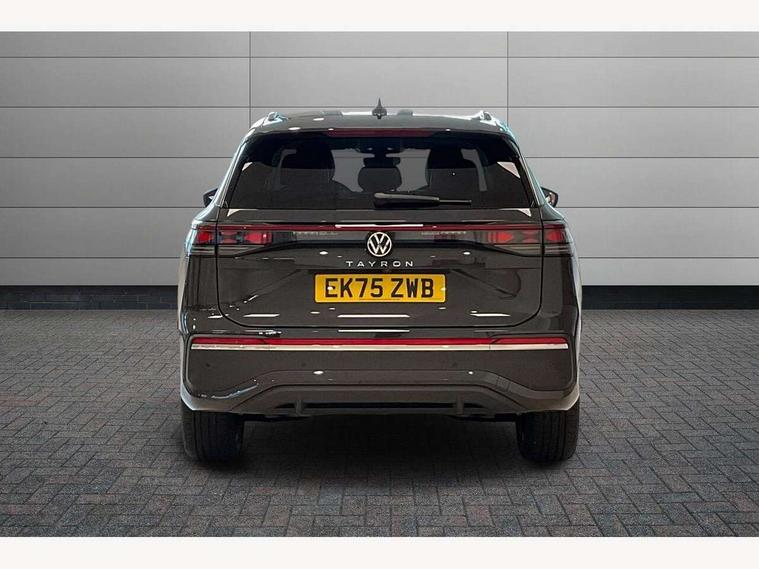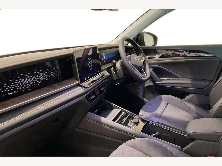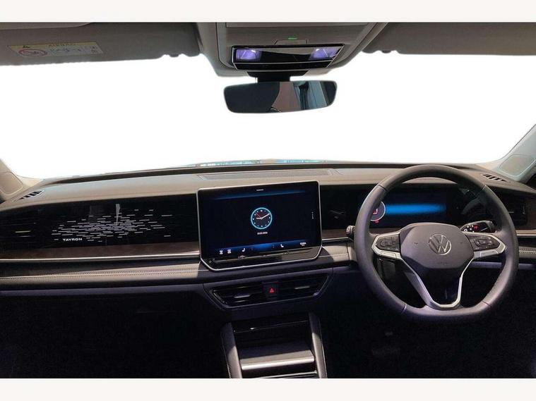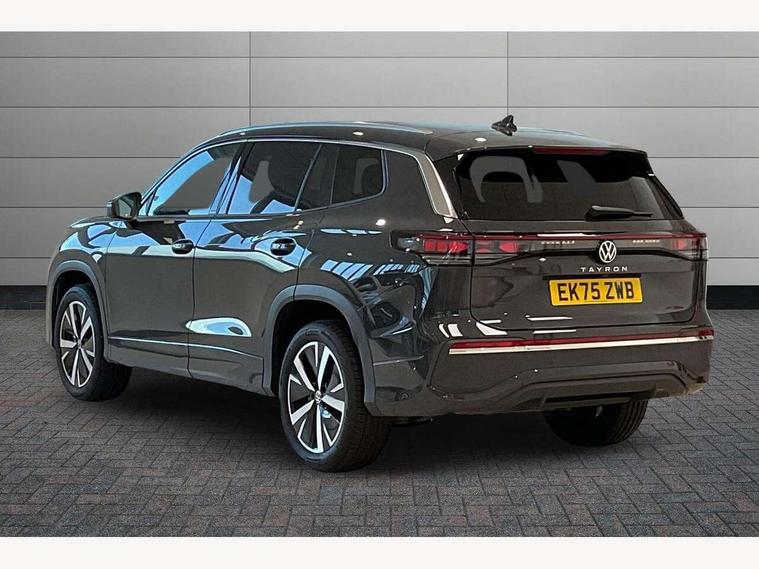 Adaptive cruise control (ACC), Digital Cockpit Pro - 10.25" high resolution dash display screen with customisable menus and information, Driver alert system, Driver attention monitoring system, Dynamic road sign display, E-Sim card for online connectivity, eCall emergency call system, Lane change system, Side assist, Rear traffic alert and Exit warning system, Multifunction front facing camera, Oncoming vehicle braking when turning including swerve support, Start/stop system with regenerative braking, Voice activation spoken voice commands for telephone and navigation system, Warning signal and warning light for front and rear seatbelts not fastened, Wireless App-Connect, Front wheel drive, Digital radio reception (DAB), Diversity antenna for FM reception, Auto dimming interior rear view mirror, Automatic headlight control system, Body colour door handles, Body coloured bumpers and air intake with chrome trim, Body-coloured exterior mirror housings, Chrome moldings on the side windows, Coming/leaving home lighting function, Dynamic headlight range control with dynamic cornering light, Exterior mirrors convex on the left and aspherical on the right, Heat insulating glass in side and rear windows, Illuminated Volkswagen logo rear with animation, Laminated safety glass from B-pillar backwards 90% tinted, Laminated safety glass windshield, heat insulating, LED 3rd brake light, LED separate signature day time running light, Puddle lights, Rain sensor windscreen wipers, Rear fog light on one side, reversing light on both sides, Rear side wing doors, Rear wiper, Reverse activated passenger's door mirror, Surround lighting with welcome light, Volkswagen logo in front, illuminated lighting animation with wake up/goodbye scenario and illuminated door handles, 10 colour interior ambient lighting, 12V outlet in center console rear and in luggage compartment, 3 rear headrests, 3 rear seat bench in 2nd row, backrest split folding with centre armrest and 2 seats in 3rd row of seats, Carpet mats, front and rear, Centre console with illuminated storage compartment with sliding cover and two drinks holders, Chrome elements on the mirror switch and power window switches and door pulls, Door and side trim panel featuring foam film with leatherette insert, Flat luggage compartment floor, Front centre armrest, Front scuff plates in aluminium, ISOFIX anchors for child seats on outer rear seats and front passenger seat compatible with i-Size, Mechanical rear seat release, Power adjustable lumbar support in front, Single front passenger seat, Sports comfort seats in front, Sun visors with illuminated vanity mirrors, Comfort package with park assist pro - Tayron, Driver assistance package - Tayron, 3 Point seat belts in front with pretensioners, 3 point seatbelts in outer rear with ECE label, Autonomous emergency braking front assist with pedestrian and cyclist monitoring, Driver and front passenger airbag with front passenger airbag deactivation, Electronic parking brake with auto hold, First aid kit with warning triangle and safety vest, Front and rear curtain airbags, Front and rear side airbags, Front centre airbag, Front disc brakes, Hill start assist, Rear disc brakes, Two tone horn, Decorative material set Elegance with inserts in ornamental wood ash in the dashboard, Interior door handle in matte chrome,