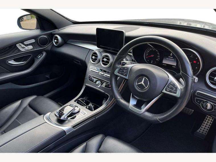 Active park assist with parktronic system, Analogue clock, Attention assist, Bluetooth interface for hands free telephone, Collision prevention assist, DYNAMIC SELECT with a choice of driving modes (ECO, Comfort, Sport, Sport+ and Individual), Garmin Map Pilot navigation system with SD card, touchpad and voice control, Multi function trip computer, Outside temperature gauge, Power opening/closing tailgate, Remote boot release, Service indicator (ASSYST PLUS), Speed sensitive steering, Diesel particulate filter, DAB Digital radio, Frontbass loudspeakers, Mercedes Audio 20 radio/single CD + telephone keypad, USB connection, Adaptive brake lights, AMG body styling, Body coloured bumpers, Chrome roof rails, Electric front sliding and fixed rear panoramic glass sunroof, Electric windows one touch open/close, Electrically adjustable and heated door mirrors, Green tinted glass, Heated windscreen washers, LED daytime running lights, Radiator grille with integral star and 2 louvres in matt iridium silver with chrome trim, Rain sensor windscreen wipers, Rear wiper, Side windows surround in polished aluminium, Twin exhaust pipes, 12V power socket in centre console, 2 cupholders in front centre console, 2 way rear head restraints, 3 spoke AMG steering wheel in Nappa leather, 4 way adjustable front head restraints, 40:20:40 split folding rear seats, Advanced multicolour ambient light and LED interior light, Aluminium door trim, AMG floormats, AMG sports seats, Auto Mercedes-Benz child seat recognition sensor, Bottle holders, Dual zone automatic climate control, Front centre armrest with storage compartment, Gearshift paddles, Heated front seats, Illuminated glovebox, Load compartment cover, Multifunction steering wheel, Rear top tether child seat ISOFIX attachment, Sports pedals with stainless steel surfaces and rubber studs, Sunvisors with illuminated vanity mirrors, Lighting pack - C class, Memory pack - C Class, Mirror pack - C Class, Seat comfort pack - C Class, Stowage space pack - C Class, 3 rear 3 point seatbelts, ABS with Brake Assist, Active bonnet, Adaptive brake system, Child proof door locks, Drivers knee airbag, Dual stage driver/passenger airbags, Electronic parking brake, ESP with ASR, Front passenger seat occupancy sensor, Front side airbags, Hill start assist, Pre-Safe anticipatory safety system, Tyre pressure monitoring system, Warning triangle and first aid kit, Window airbags, Alarm system/interior protection/immobiliser, Chrome surround in electric key, Keyless entry and keyless start, Remote central locking,