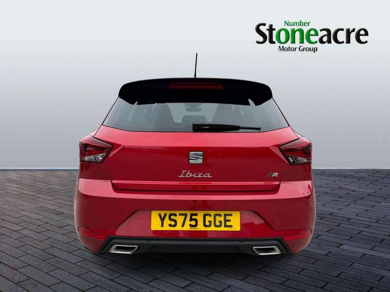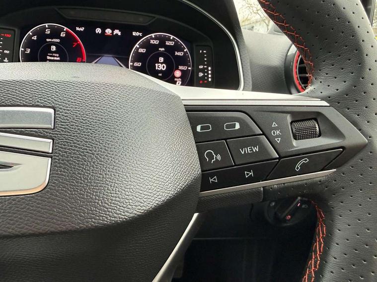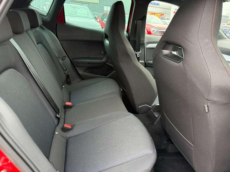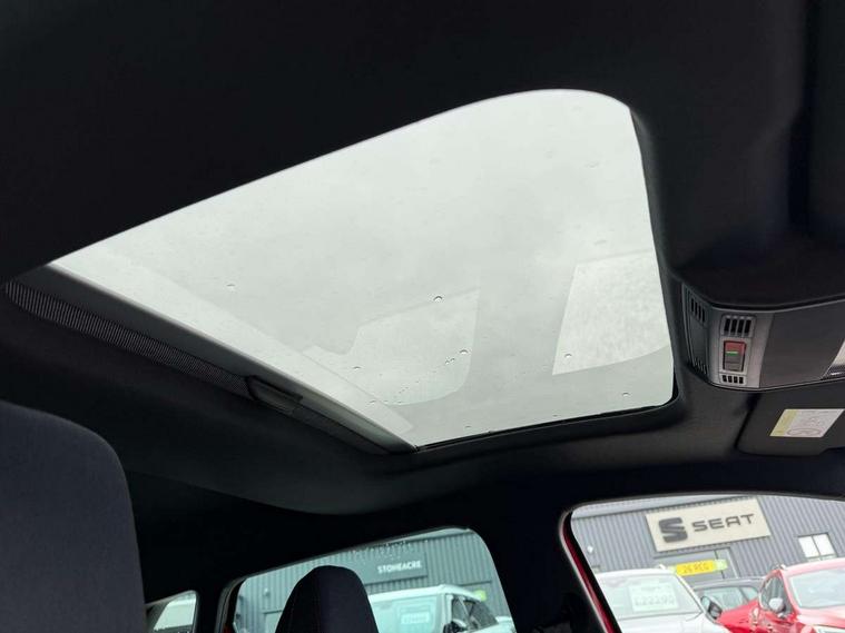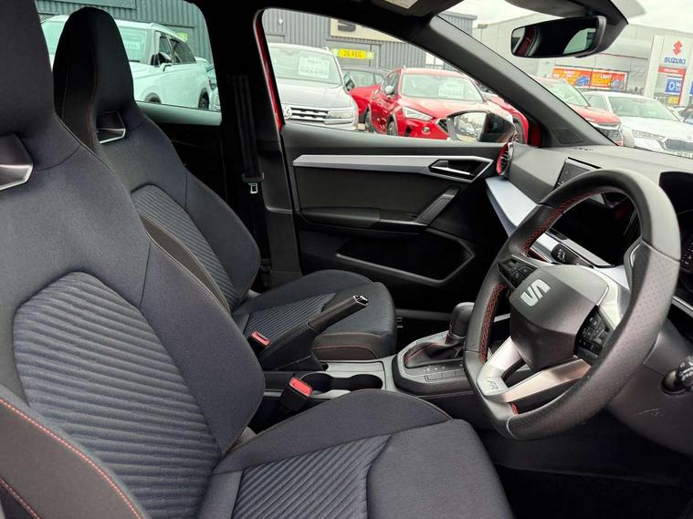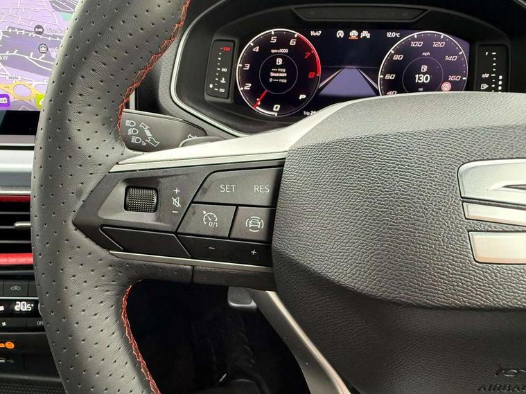 'Lights On' Reminder warning buzzer, 10" Digital cockpit, 9.2" touchscreen navigation system with type C USB socket, Voice control and DAB/AM/FM radio, Auto start and stop system, Bluetooth audio streaming with handsfree system, Digital clock, E-call, Full link smartphone integration with mirror link, wireless apple carplay, Google android auto + USB Type C cable for apple and android devices, Lane assist, Low fuel warning light, Outside temperature gauge, Power Steering, Rear parking sensor, Seat connect plus with safety, service, remote and online, SEAT drive profiles and ECO function, SEAT logo boot release, Speed limiter, Traffic sign recognition, Trip computer, Sports suspension, Auxiliary input socket, Radio/MP3 player, SD card slot, Steering wheel mounted controls, Anti theft roof antenna, Auto dimming rear view mirror, Automatic rain sensing wipers, Black door mirror caps, Black roof spoiler, Black side skirts, Body colour bumpers, Body colour door handles, Brilliant black window surrounds, Dark tinted rear windows, Electric adjustable/heated/folding door mirrors, Electric front windows, Electric headlight adjustment, Electric panoramic sunroof, Electric rear windows, Front/rear fog lights, FULL LED automatic headlights with dynamic headlight range control, coming and leaving home, LED daytime running lights, LED 3rd brake light, LED tail lights, Rear roof spoiler with FR twin exhausts, Rear side wing doors, Rear wiper, 3 seat bench in 2nd row, 60/40 split folding rear seat, Ambient interior lighting, Chrome detailing and black headlining, Dual zone climate control with combination filter, Front courtesy lights, Front cupholders x 2, Front reading lights, Front sport bucket seats, Gear shift indicator, Glovebox, Heated front seats, Height adjustable front and rear headrests (five), Height adjustable front seats, Height/reach adjust steering wheel, Illuminated air vent surrounds, Illuminated boot, Instrument lighting with brightness control, Isofix, Leather multifunction flat bottomed sports steering wheel with gearshift paddles, Microsuede cloth upholstery, Passenger sunvisor, Single front passenger seat, Storage pockets on back of front seats, Sunvisors with mirror and driver side card holder, Safety and driving pack (S) - Ibiza, ABS, Active front headrests, Child locks on rear doors, Electronic stability control, Energy recovery system, Front driver and passenger side airbags with curtain airbag and front passenger airbag deactivation, Hill hold control, Multi-Collision braking, Seat belt reminder for front and rear seats, Tiredness recognition system, Tyre pressure monitoring system, KESSY Keyless entry and go, Locking wheel bolts, Perimeter alarm and interior monitoring with backup horn and tow away protection, Remote central locking + deadlocks, 18" Performance alloy wheels in glossy black,