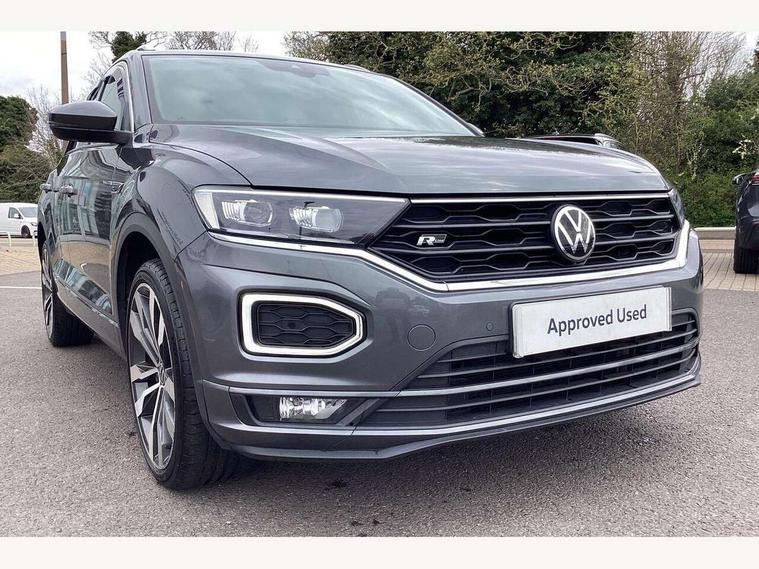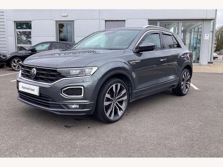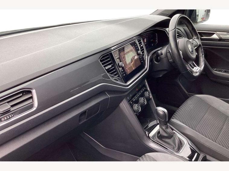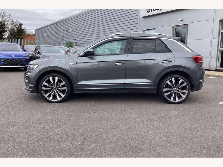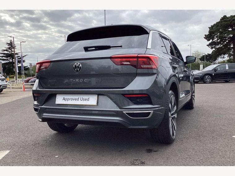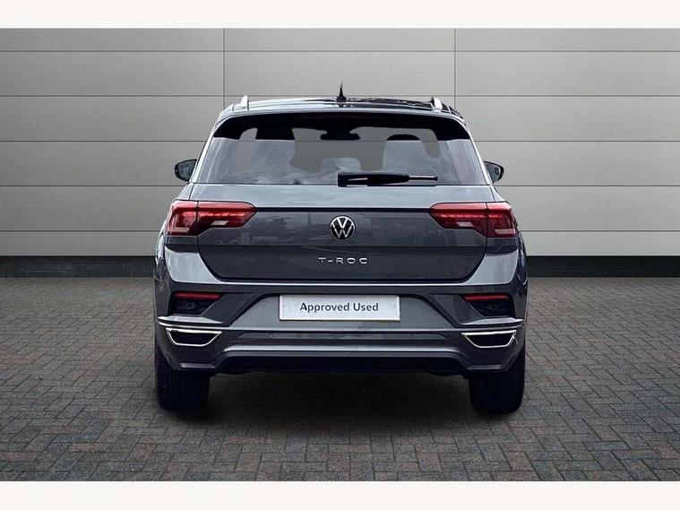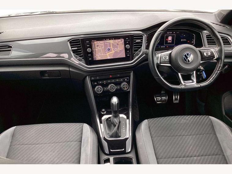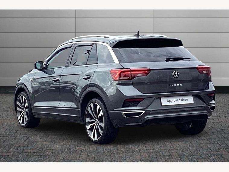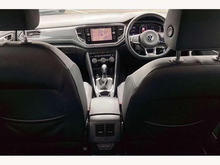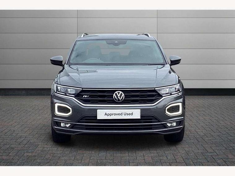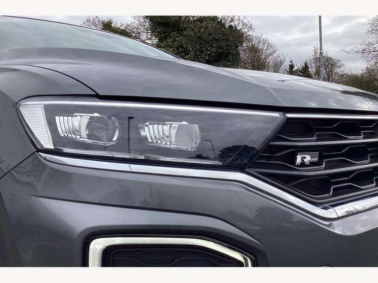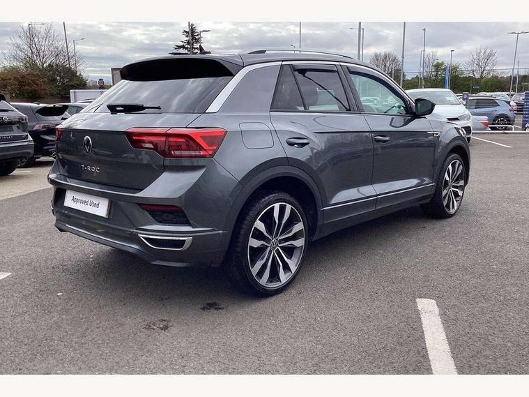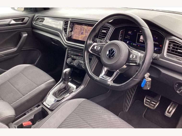 'Lights On' Reminder warning buzzer, Adaptive cruise control, Bluetooth telephone and audio connection for compatible devices, Car information display, Digital Cockpit Pro - Active info display, Driver alert system with audible and visual fatigue detection system, Driver tips and journey analysis, Dusk sensor, Emergency call service, Lane assist with warning text instrument cluster, Modified key software - reduce switch off time for key status change to Long no motion, Multifunction camera, Multifunction computer with visual gear change recommendation for fuel consumption, Navigation system discover media including streaming and internet, Service interval indicator, Think blue trainer driver tips and journey analysis, Traffic sign recognition, Voice activation, Warning sound and light for front seatbelts unfastened, Wireless app connect for apple carPlay, Battery regeneration during braking, Misfuel prevention device for diesel engine, Rear shock absorption for sports version, Start/stop function with battery regeneration, DAB Digital radio, Disk brakes in front, Diversity antenna for FM reception, Music playback - MP3, WMA and AAC files, Premium USB cable in choice of either Apple or Android smartphone compatibility, SD card slot, Simultaneous pairing of 2 compatible mobile devices, SMS functionality - read, compose and send SMS messages using touch-screen display, Storage compartment with longitudinal and height adjustable in armrest and two rear air vents, Three route options - Fast, Short, Eco, Title and cover art display, USB-C Interface and USB charging socket, Auto dimming interior rear view mirror, Automatic coming/leaving home lighting function and daytime running lights, Automatic hazard lights activation under emergency braking, Black grained lower door protectors, Body colored door lower parts, Body colour door handles, Body colour rear roof spoiler, Chrome effect left and right trapezoid exhaust tailpipe fascia surround, Chrome plated moldings, Chrome plated radiator grille inserts, air vent surrounds and light switch surrounds, Chrome trim on upper and lower radiator grille, Dynamic headlight range control with self adjusting whilst driving, Electrically foldable, adjustable and heated door mirrors with puddle lights and reverse activated kerb-view adjustment on passenger's door mirror, External USB type C socket and charging sockets, Front and rear electric windows, Front fog lights with static cornering function, Front windscreen wiper with intermittent wipe and 4 position delay, Fully galvanised body, Heated rear window, Heated windscreen washer jets, High level 3rd brake light, LED darkened rear light clusters, LED headlamps with automatic range adjustment and unique signature LED separate daytime running lights, LED rear number plate lights, LED tail lamp rear comination lamps, Privacy glass, R-Line design body coloured bumpers, Rain sensor, Rear tinted glass from B-pillar backwards approx 65% tinted, Rear wash/wipe with intermittent wipe setting, Silver anodised roof rails, Volkswagen roundel, 12V socket in centre console storage area, 3 rear head restraints, 4 load lashing points in luggage compartment, Aluminium pedals, Black roof lining and sun visors, Branded points of interest, Carbon flag cloth upholstery, Climate control - 2 zone electronic air conditioning with automatic air recirculation and allergy filter, Door and side trim panel, Door and side trim panel in foam film, insert in leatherette, Drawer under drivers seat, Front + rear carpet mats, Front centre armrest, Front cupholders x 2, Front seat back storage pockets, Front sports seats with R-Line logo on seat backrest, Glovebox, Heated front seats, Height adjustable front seats, Height/reach adjust steering wheel, Instrument lighting, white adjustable panel illumination, Interior light delay, Interior light in footwell, Isofix easy fit child seat preparation for 2 outer rear seats, Leather gearshift knob, Leather multi function sport steering wheel with gear change selection via paddle shift on steering wheel, LED interior light with switch off delay/dimmer and 2 front/rear LED reading lights, Load through provision with single cup holder when folded down, Luggage compartment cover, removable, Luggage compartment lighting, R Line badge, Scuff plates in door apertures, Split folding rear seat backrests with centre armrest, Stainless steel pedals, Storage compartment in left and right luggage area, Storage compartment in rear doors, Storage compartments in driver and front passenger doors, Sunvisors with illuminated vanity mirrors, Unique R Line door sill protectors, White ambient lighting, R line styling pack - T-Roc, Winter pack - T-Roc, 3 rear three point seatbelts, ABS, Curtain airbags, Driver and front passenger safety-optimised head restraints, Drivers and front passengers airbags with passengers deactivation switch, Drivers seatbelt reminder, Electronic parking brake with auto hold, Electronic stability control (ESC) includes ASR, EDL, EDTC and trailer stabilisation function, Front assist with city emergency braking and pedestrian monitoring, Front seat side impact airbags, Hill start assist, Predictive pedestrian protection, Rigid safety cell with front and rear crumple zones, Single tone horn, Three point height adjust front seatbelts + pretensioners, Tyre pressure loss indicator, Ventilated front and rear disc brakes, Volkswagen roadside assistance, Alarm with remote central locking and interior protection, Electronic engine immobiliser, Remote central locking with SAFELOCK, radio remote control with 2 remote control folding keys, Shadow grey decorative inserts in dash, centre console and door panel, 19" Suzuka alloy wheels with low rolling resistance tyres and anti wheel bolts,