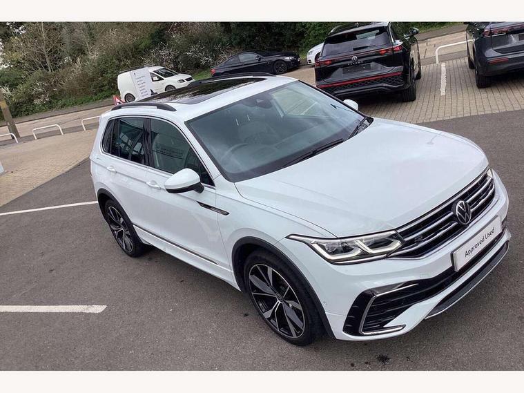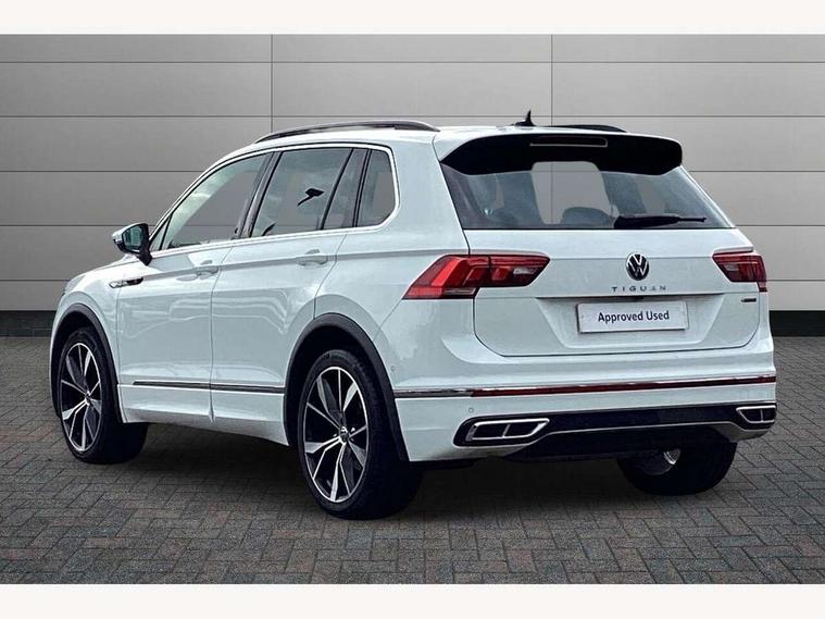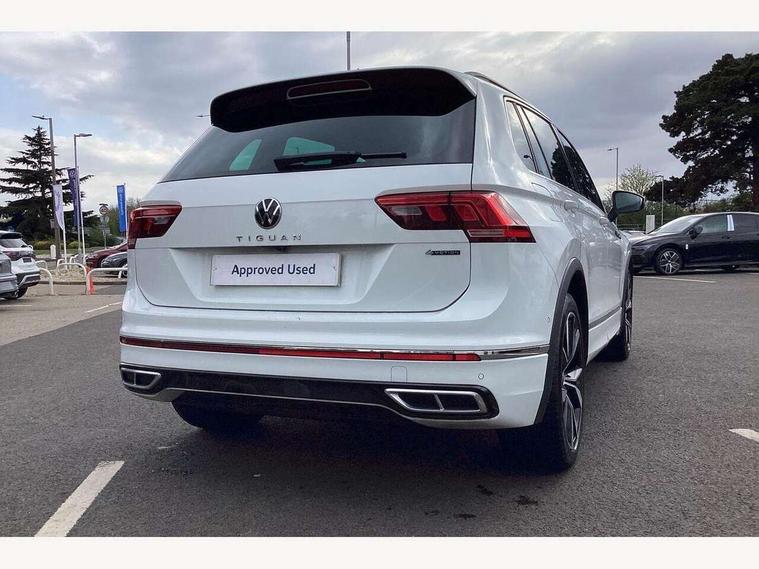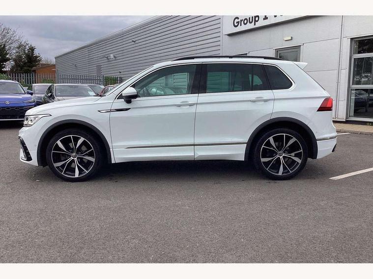 Adaptive cruise control ACC stop and go including speed limiter, App-Connect incl. App-Connect Wireless for Apple CarPlay and Android Auto, Bluetooth phone integration system, Distance control assist, Driver alert system, Driver profile selection, Dynamic road sign display, eCall emergency call system, Electromechanical speed sensitive power steering, Engine start/stop button, Lane keeping system Lane Assist, Lights on warning, Multifunction front facing camera, Outside temperature display, Premium multifunction display with multi colour display, Remote control boot opening, Rev counter, Revision / skills operating concept travel assistant, Service interval indicator, Speed limit display, Start/stop system with regenerative braking, Trip computer, Warning sound and light for doors and tailgate open, All wheel drive - 4Motion, Battery regeneration during braking, XDS electronic differential lock for improved traction and handling, 4 X 20 watt output, 8 Speakers, Diversity antenna for FM reception, Radio, SD card slot, Simultaneous pairing of 2 compatible mobile devices, SMS functionality - read, compose and send SMS messages using touch-screen display, Title and cover art display, USB C ports, Auto dimming interior rear view mirror, Automatic headlight control system, Body colour door handles, Chrome moldings on the side windows, Coming/leaving home lighting function, Dynamic headlight range control, Front and rear electric windows, Heated rear window, High level 3rd brake light, Laminated safety glass windshield, heat and sound insulating, LED headlamps with LED separate daytime running light and dynamic cornering light, LED rear combination lamps, LED rear number plate lights, License plate carrier in front and rear, Poor weather light and cornering light, R Line body kit, R Line side sills, Rain sensor windscreen wipers, Rear exhaust tailpipe, Rear fog lamp, Rear side wing doors, Rear spoiler in R style, Rear windscreen washer and wiper with interval delay, Side and rear windows in heat insulating glass, Trailer Stability Programme, Unique R Line badging, Windscreen wipers/ intermittent wipe + 4 position delay, 12V outlet in center console rear and in luggage compartment, 12V outlet in front and tray, 2 cup holders in front, 2 LED front reading lights, 2 LED rear reading lights, 3 bench rear seats in 2nd row, 3 rear headrests, 4 load lashing points, 40:20:40 split folding rear seats, Air Care Climatronic 3 zone automatic climate control with enhanced air filter and controls in the rear, Backrest release for left front seat, Black headlining, Brushed stainless steel pedals and footrest, Carpet mats in front and rear with decorative stitching in Gray, Climate control unit rear with touch function, Door and side trim panel in foam film, insert in leatherette, Front centre armrest, Front footwell illumination, Front seats head restraints (x-adjustment), Height adjustable front seats, Height/reach adjust steering wheel, Instrument lighting white adjustable panel illumination, Interior light with delay, Isofix Preparation 2 Rear child seats, Leather gear knob, Lockable cooled glovebox, Luggage compartment lighting, Luggage net, Rear bench seat asymetrically split folding, longitudinally movable and folding with load-through hatch and center armrest, Remote unlocking for rear seat backrest, Removable luggage cover, Removable rear headrests, Safety optimised front head restraints, Single front passenger seat, Sliding/reclining rear seats, Standard rear seat release, Storage compartment in driver's door, Storage compartment in passenger's door, Storage compartment in rear doors, Storage compartments in luggage area left and right, Storage tray on dashboard, Sun visors with illuminated vanity mirrors, Top front comfort seats, Variable boot floor, height adjustable and removable, Driver assistance pack plus - Tiguan DSG, 3 point seat belt for centre rear seats, 3 point seat belts with seat belt pretensioners for the outer rear seats, Active bonnet, Curtain airbags for front and rear passengers, Driver/Front Passenger airbags, Drivers knee airbag, Electronic parking brake with auto hold, Electronic Stability Control with driver steering recommendation, ABS, ASR, EDL, EDTC and trailer stabilization, Front assist with autonomous emergency braking (for Adaptive Cruise Control ACC up to 130 mph), Front disc brakes, Front passenger airbag deactivation, Front side airbags, Height adjustable front 3 point seatbelts + pretensioners, Hill hold control, Manual child proof rear door locks, Pedestrian monitoring system, Power assisted brakes, Proactive passenger protection system in combination with front assist, Rear disc brakes, Rigid safety cell with front and rear crumple zones, Two tone horn, Warning sound and light for front seat belts if unfastened, Anti theft alarm system with interior monitoring, backup horn and towing protection, Anti theft wheel bolts, Electronic engine immobiliser, Tool kit,