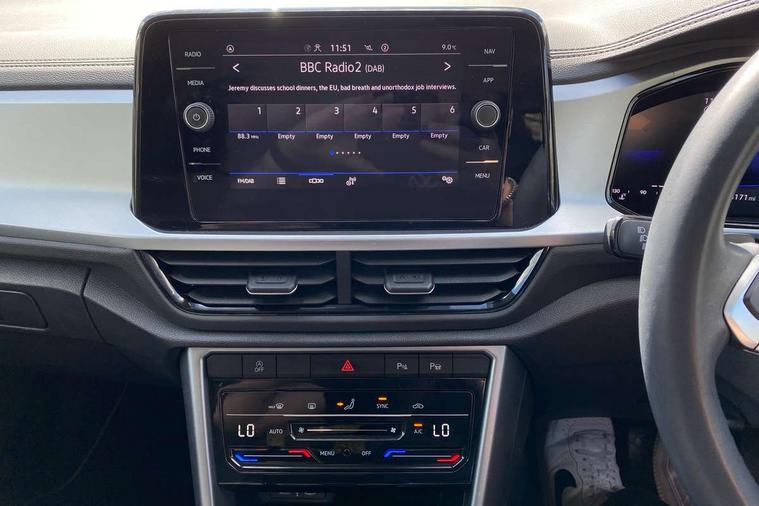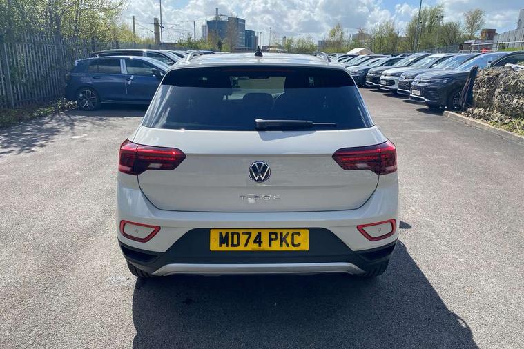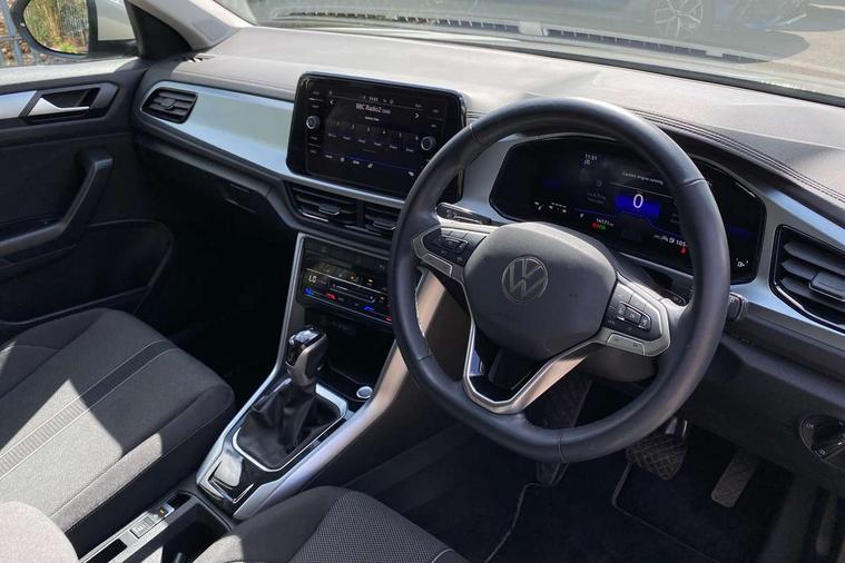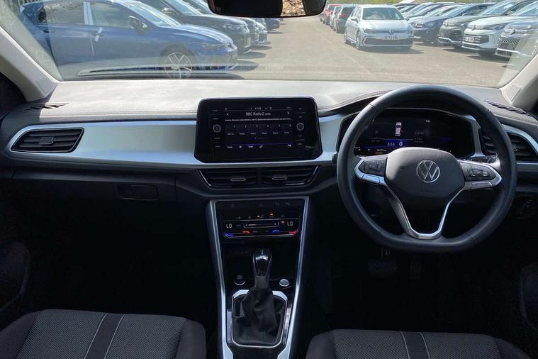 Advanced driver attention and drowsiness monitor, Dynamic road sign display, Emergency call service, Lane keeping system Lane Assist, Mobile phone interface, Modified key software - reduce switch off time for key status change to Long no motion, Online services, Park assist including front and rear parking sensors, Power assisted speed sensitive steering, Rear view camera, Service interval indicator, Tailgate/trunk lid release from outside, Think blue trainer driver tips and journey analysis, Warning sound and light for front seatbelts unfastened, Wireless app connect, Battery regeneration during braking, Front shock absorption, Rear shock absorption chassis with increased ride height, Start/stop function with battery regeneration, DAB Digital radio, Diversity antenna for FM reception, Front and rear 6 speakers, Music playback - MP3, WMA and AAC files, Premium USB cable in choice of either Apple or Android smartphone compatibility, SD card slot, Simultaneous pairing of 2 compatible mobile devices, Title and cover art display, We Connect and We Connect Plus functionality, Auto dimming interior rear view mirror, Automatic hazard lights activation under emergency braking, Automatic headlight control with LED separate daytime running lights with coming/leaving home function, Black roof rails, Body coloured bumpers and radiator grille with chrome trim and front fog lamps with chrome bezel, Body coloured exterior mirror housings and door handles, Electrically adjustable and heated door mirrors, Extended roof spoiler, Exterior mirrors aspherical on driver side, convex on front passenger side, External USB type C socket and charging sockets, Front windscreen wiper with intermittent wipe and 4 position delay, Heated rear window, LED 3rd brake light, LED rear combination lamps, LED rear number plate lights, Power windows with comfort operation and circuit breaker, Privacy glass for rear side windows and rear window, Rain sensor, Rear exhaust tailpipe, Rear fog light on one side and reversing lights on both sides, Rear side wing doors, Rear wash/wipe with intermittent wipe setting, Remote electrically foldable door mirrors, puddle lights and reverse activated passenger's door mirror, 12V power socket in centre console, 3 rear head restraints, 3 seat bench in 2nd row, 4 load lashing points in luggage compartment, Air care climatronic air conditoning system with active combination filter and 2-zone temperature control, Black stitching for floor mats, Ceramique roof liner, Cloth upholstery, Door and side trim panel in cloth, Drawer under drivers seat, Driver/front passenger seat height adjustment, Front centre armrest, Front comfort sports seats, Front cupholders x 2, Front reading light, Front seat back storage pockets, Glove compartment door with light, Instrument lighting, white adjustable panel illumination, Interior ambient lighting and surround lighting, Interior light delay, Isofix child seat preparation, Leather gearshift handle, Load-through provision with cup holder when folded down ('Unsplit rear seat bench, split folding backrest, with centre armrest), Luggage compartment lighting, Lumbar support for driver's and front passengers seat, Non-folding front passenger seat backrest, Single front passenger seat, Storage compartment in left and right luggage area, Storage compartment in rear doors, Storage compartments in driver and front passenger doors, Sunvisors with illuminated vanity mirrors, Variable boot floor, height adjustable and removable, Driver assistance pack without proactive passenger protection - T-Roc Life/Match, 3 point height adj front seatbelts + pretensioners, 3 point seatbelts in outer rear with ECE label, ABS, Child locks on rear doors, City emergency braking and pedestrian monitoring, Driver and front passenger airbag with front passenger airbag deactivation, Driver and front passenger safety-optimised head restraints, Drivers seatbelt reminder, Electronic parking brake, Electronic Stability Control (ESC) inc EDL (Electronic Differential Lock) and ASR (Traction Control), Front and rear passengers curtain airbag system including front side airbags, Front disc brakes, Hill start assist, Predictive pedestrian protection, Rear disc brakes, Two tone horn, Tyre pressure loss indicator, Volkswagen roadside assistance, Alarm with interior protection, Keyless locking and starting system keyless access with safelock, Pewter matt decorative inserts for intrument panel, centre console and door panels at the front, Trims for alloy wheels,