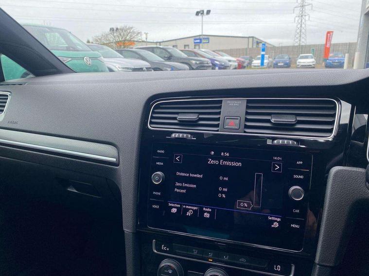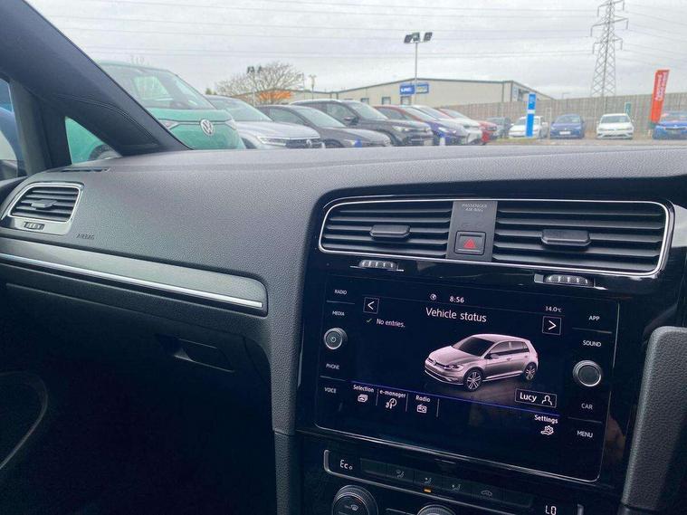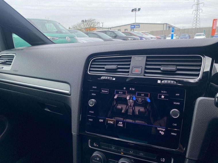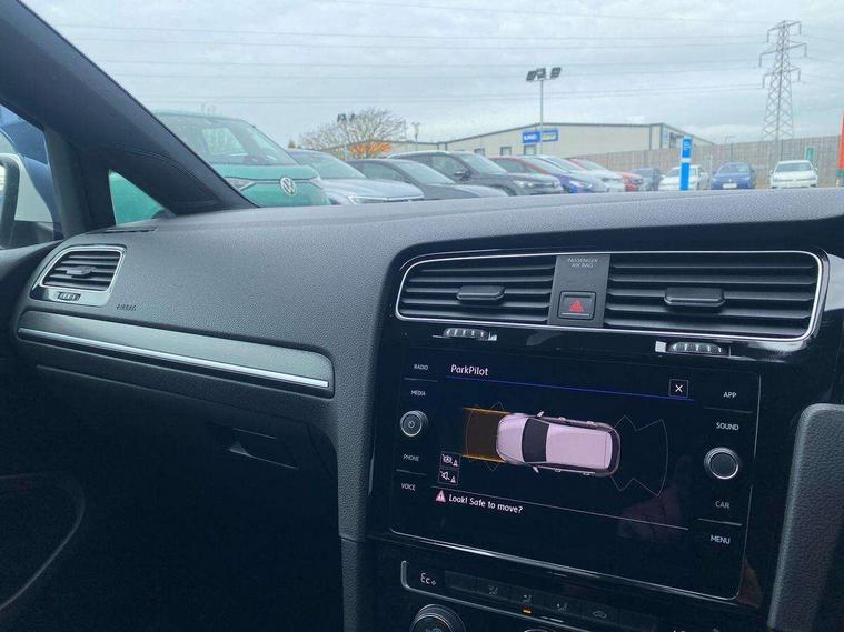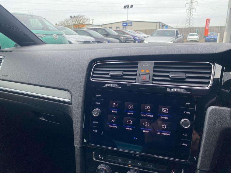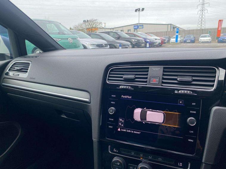 'Lights On' Reminder warning buzzer, 8" colour touch screen, ACC - Adaptive cruise control with front assist, forward collision warning, distance monitoring, city emergency brake and speed limiter, App-Connect, Bluetooth hands free telephone connection, Brake pad wear indicator warning light, Driver alert system, Driver profile selection, Exterior temperature gauge, Front assistant collision mitigation, Instrument cluster in white, Multifunction computer, PAS - speed related, Power assisted speed sensitive electro-mechanical steering, Rev counter, Stop/start system, Trip and service interval display, Ultrasonic front and rear optical and audible parking sensors, Warning buzzer and light for front seatbelts unfastened, Battery regeneration during braking, XDS electronic differential lock, CD/MP3/WMA, USB and SD card reader, aux-in, Composition media system, DAB Digital radio receiver, 3D-LED tinted rear light clusters with indicator sweep function, Automatic coming/leaving home lighting function and rain sensor, Automatic dimming rear view mirror/rain sensor, Automatic headlights, Black front air intake and radiator grille with chrome insert, Black rear diffuser, Body colour bumpers, Body colour door handles, Body colour door mirrors with integrated indicators, Chrome grille surround, Electric front windows, Electric rear windows, Electrically adjustable and heated door mirrors, Halogen headlights range adjustable via infotainment system with LED daytime running lights, Heated rear windscreen, High level 3rd brake light incorporating LED Technology, LED rear lights, Rain sensor, Rear number plate lights incorporating LED technology, Rear window aerial, Rear window wash/wipe with intermittent wipe, Reflectors in all doors, Side skirts, Tailgate with integrated rear roof spoiler, Twin exhaust tailpipe, Windscreen wipers/ intermittent wipe + 4 position delay, 12V socket in luggage compartment, 3 rear headrests, 60/40 split folding rear seat backrest, Air conditioning - 2 zone electronic climate control, Aluminium/leather gear knob, Bag hook in luggage compartment, Black headlining, Boot lashing points, Cooled glovebox, Courtesy light delay, Cover for storage compartment in centre, Driver/front passenger seat height adjustment, Dust/pollen filter, Front + rear carpet mats, Front centre armrest with storage compartment and two rear air vents, Front seat back storage pockets, Grab handles front x 2, rear x 2 with integrated coat hooks, Height/reach adjust steering wheel, Illuminated vanity mirrors, Instrument lighting white adjustable panel illumination, Isofix preparation for 2 rear child seats, Load through provision with rear centre armrest and cupholders x2, Luggage compartment cover, Luggage compartment light, Multifunction leather steering wheel with blue stitching, Multifunction leather steering wheel with leather trimmed gear knob including paddle shift, Overhead storage box, Stainless steel pedals, Storage box in luggage compartment, Storage compartments in doors, Storage compartments in front doors, Storage compartments in rear doors, Sun visors, Three spoke multi-function leather trimmed steering wheel and gearknob, Three spoke steering wheel, Ambient lighting pack - Golf, Mirror pack - Golf, 3 rear three point seatbelts, Anti-lock braking system (ABS), Automatic post collision braking system, Blue brake callipers, Child locks on rear doors, Driver/Passenger optimised head restraints, Drivers and Front Passengers airbags with front passengers airbag deactivation switch, Drivers knee airbag, Electronic stability control (ESC) including Electronic differential lock (EDL) and ASR (Traction control) with deactivation via infotainment system, Front and rear curtain airbags, Front seat side impact airbags, Hydraulic Brake Assist (HBA), Pre crash preventive occupant protection, Three point height adjustable front seatbelts with tensioners, Tyre pressure loss indicator, Alarm with interior protection, Electronic engine immobiliser, Remote central locking with 2 remote folding keys, Honeycomb black decorative inserts, Piano black centre console, 17" Rio de Janeiro alloy wheels with anti theft wheel bolts, Tyre repair kit,