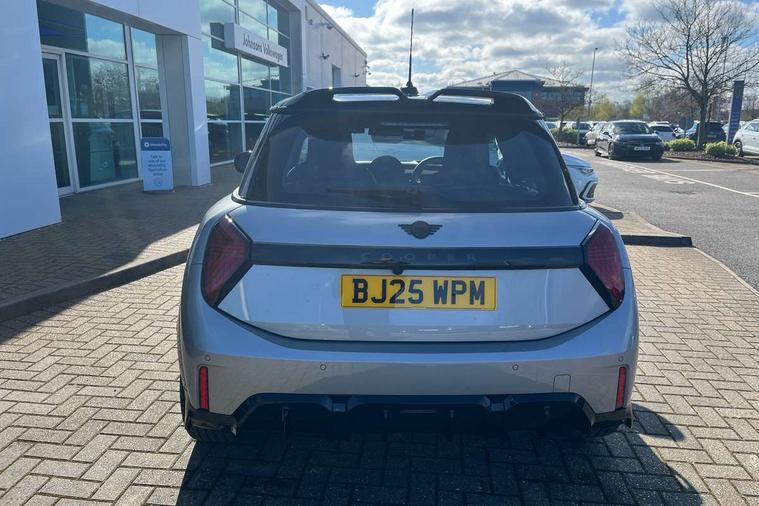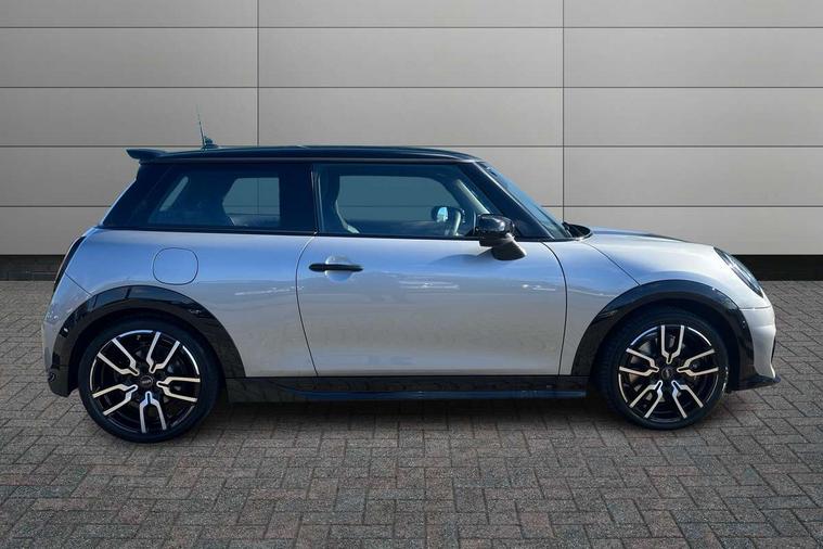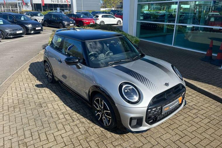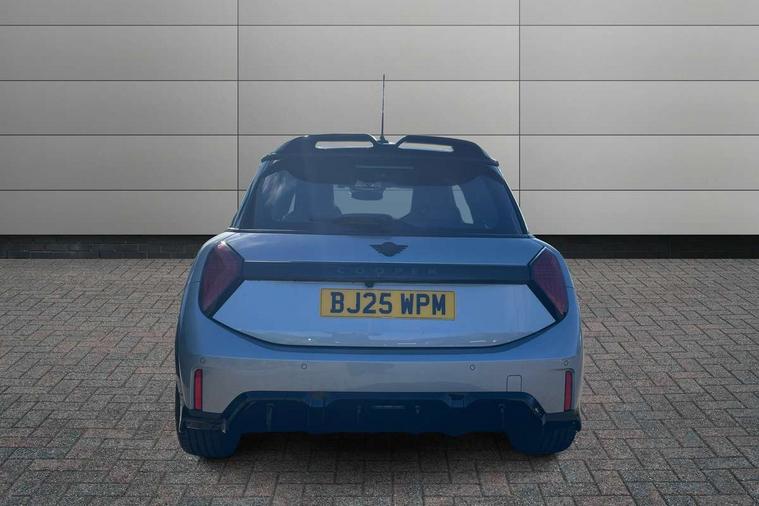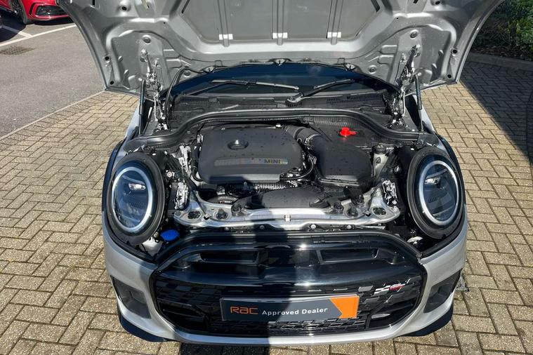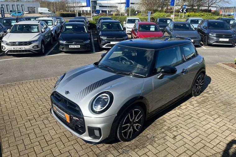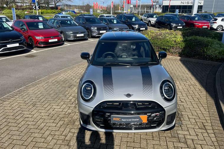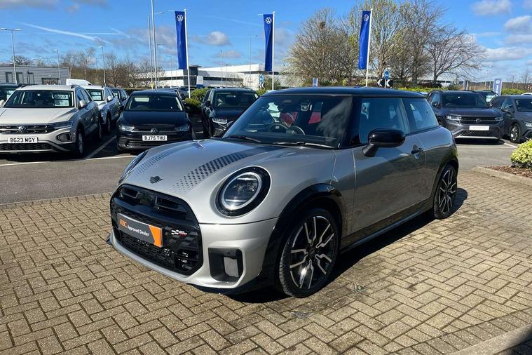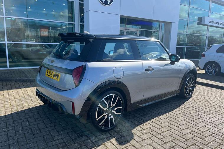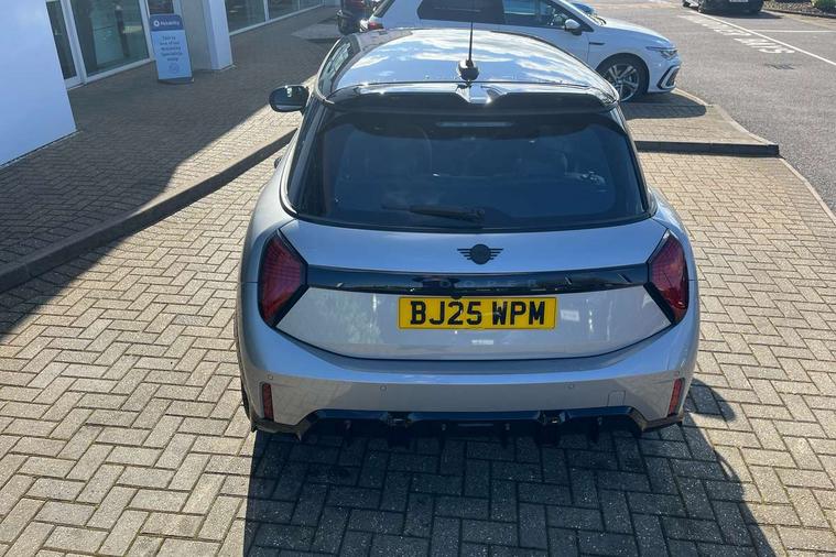 Central toggle bar, Circular OLED Screen, Compatible mobile phone bluetooth with audio streaming, Cruise control, Digital instrument cluster, Electro-mechanical speed dependant steering assistance, Emergency call service, MINI Experience Modes, Mini navigation system, On board computer, Service interval indicator, Tailgate, 7 speed steptronic transmission with double clutch, Adaptive suspension, DAB Digital radio, Personal eSim, Auto headlights, Electric adjustable heated door mirrors, Electric front windows, Front and rear apron, Heated rear window, Heated windscreen washer jets, High gloss black wheel arches, High gloss hexagonal patterned grille surround, JCW body kit, LED 3rd brake light, LED daytime running lights, LED Headlights, LED indicator lights, LED rear lights, Rain sensor window wipers, Rear fog lights, Rear roof spoiler with airblades, Rear window wiper, 2 seat bench in second row, 2 zone automatic air conditioning, 60/40 rear seat bench, Ambient lighting, Black lower band in high gloss, Cupholders, Dark headliner, Front and rear head restraints, Front compact armrest, Front floor mats, Heated steering wheel, Height adjustable passenger seat, Lidded storage box in Black/Red knit, Luggage compartment lighting, Partially perforated vescin steering wheel with red accent, black/red decorative strap, Single front passenger seat, Steering wheel paddle shift, Sunvisors with vanity mirrors, Vescin/Cord combination JCW upholstery includes dash knit in black with red accents, Driving assistant pack - Cooper Hatchback, Park assistant pack - Cooper Hatchback, 3 point seatbelts on all four seats, 6 Airbags - front, side, head and seat belt tensioners, Anti-lock braking system (ABS), Brake caliper in Black with JCW badge, DSC - Dynamic Stability Control, Electronic parking brake, Front and rear disc brakes, Front ISOFIX (iSize), Front passenger airbag deactivation, JCW Sport Brakes, Traction control, Tyre pressure monitoring system, Alarm, Immobiliser, Remote central locking, Black/Red decorative dash strap, Tyre repair kit,