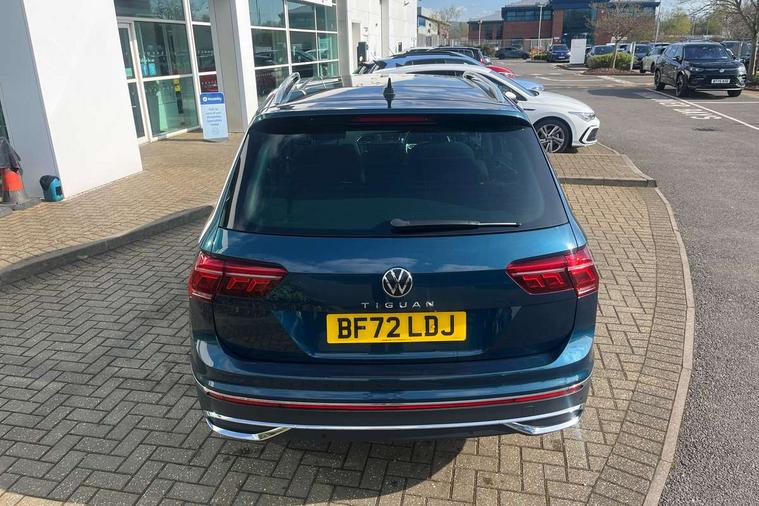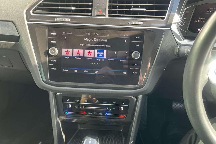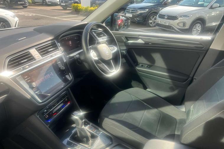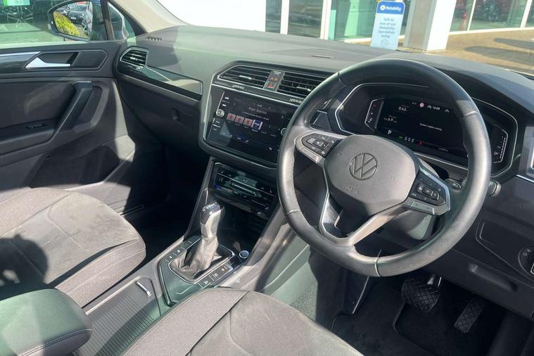 Adaptive cruise control ACC stop and go including speed limiter, App-Connect incl. App-Connect Wireless for Apple CarPlay and Android Auto, Bluetooth phone integration system, Distance control assist, Driver alert system, Driver profile selection, Dynamic road sign display, eCall emergency call system, Electromechanical speed sensitive power steering, Engine start/stop button, Lane keeping system Lane Assist, Lights on warning, Motorised electric tailgate operated via key fob, drivers door and foot movement under tailgate, Multifunction front facing camera, Outside temperature display, Premium multifunction display with multi colour display, Remote control boot opening, Rev counter, Revision / skills operating concept travel assistant, Service interval indicator, Speed limit display, Start/stop system with regenerative braking, Tailgate/trunk lid unlocking from outside, Trip computer, Warning sound and light for doors and tailgate open, Battery regeneration during braking, XDS electronic differential lock for improved traction and handling, 4 X 20 watt output, 8 Speakers, Diversity antenna for FM reception, Radio, SD card slot, Simultaneous pairing of 2 compatible mobile devices, SMS functionality - read, compose and send SMS messages using touch-screen display, Title and cover art display, USB C ports, Aluminium door sill protectors, Auto dimming interior rear view mirror, Automatic headlight control system, Body colour door handles, Body coloured bumpers, Body coloured door mirrors with integrated indicators, Coming/leaving home lighting function, Dynamic headlight range control, Front and rear electric windows, Heated rear window, High level 3rd brake light, IQ light-Adv high beam, Dynamic light assist for LED matrix headlamp+LED separate DRL+DCL, dark red rear LED tech, Poor weather light+ cornering light, Laminated safety glass windshield, heat and sound insulating, LED rear number plate lights, Poor weather light and cornering light, Privacy glass for rear side windows and rear window, Rain sensor windscreen wipers, Rear exhaust tailpipe, Rear fog lamp, Rear side wing doors, Rear windscreen washer and wiper with interval delay, Side and rear windows in heat insulating glass, Tilting and sliding panoramic sunroof with rear panoramic sunroof, Trailer Stability Programme, Windscreen wipers/ intermittent wipe + 4 position delay, 12V outlet in center console rear and in luggage compartment, 12V outlet in front and tray, 2 cup holders in front, 2 LED front reading lights, 2 LED rear reading lights, 3 bench rear seats in 2nd row, 3 rear headrests, 4 load lashing points, 40:20:40 split folding rear seats, Air Care Climatronic 3 zone automatic climate control with enhanced air filter and controls in the rear, Backrest release for left front seat, Climate control unit rear with touch function, Door and side trim panel in foam film and woven fabric, Front centre armrest, Front footwell illumination, Front seats head restraints (x-adjustment), Height adjustable front seats, Height/reach adjust steering wheel, Instrument lighting white adjustable panel illumination, Interior light with delay, Isofix Preparation 2 Rear child seats, Leather gear knob, Lockable cooled glovebox, Luggage compartment lighting, Luggage net, Rear bench seat asymetrically split folding, longitudinally movable and folding with load-through hatch and center armrest, Remote unlocking for rear seat backrest, Removable luggage cover, Removable rear headrests, Safety optimised front head restraints, Single front passenger seat, Sliding/reclining rear seats, Standard rear seat release, Storage compartment in driver's door, Storage compartment in passenger's door, Storage compartment in rear doors, Storage compartments in luggage area left and right, Storage tray on dashboard, Sun visors with illuminated vanity mirrors, Top front comfort seats, Variable boot floor, height adjustable and removable, Easy open and close pack with safelock - Tiguan, 3 point seat belt for centre rear seats, 3 point seat belts with seat belt pretensioners for the outer rear seats, Active bonnet, Curtain airbags for front and rear passengers, Driver/Front Passenger airbags, Drivers knee airbag, Electronic parking brake with auto hold, Electronic Stability Control with driver steering recommendation, ABS, ASR, EDL, EDTC and trailer stabilization, Front assist with autonomous emergency braking (for Adaptive Cruise Control ACC up to 130 mph), Front disc brakes, Front passenger airbag deactivation, Front side airbags, Height adjustable front 3 point seatbelts + pretensioners, Hill hold control, Manual child proof rear door locks, Pedestrian monitoring system, Power assisted brakes, Proactive passenger protection system in combination with front assist, Rear disc brakes, Rigid safety cell with front and rear crumple zones, Two tone horn, Warning sound and light for front seat belts if unfastened, Anti theft alarm system with interior monitoring, backup horn and towing protection, Anti theft wheel bolts, Central locking system with safelock radio remote control and 2 remote control folding keys, Electronic engine immobiliser, Tool kit,