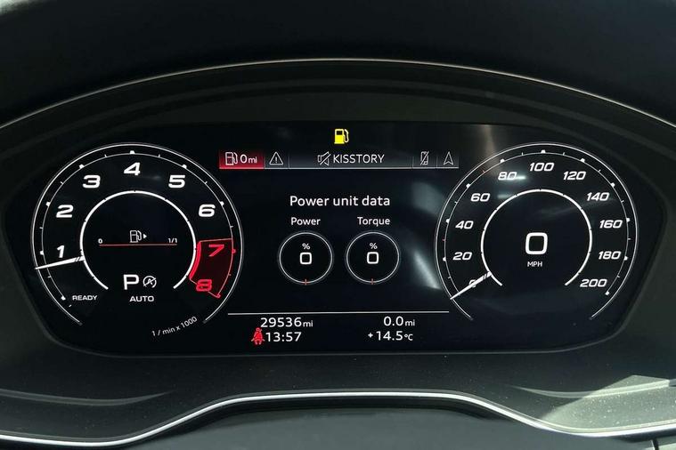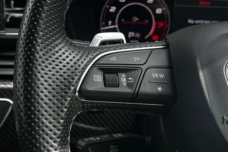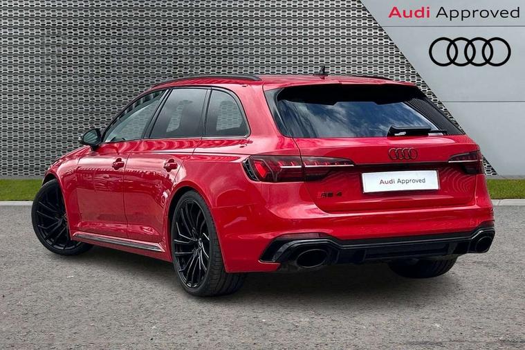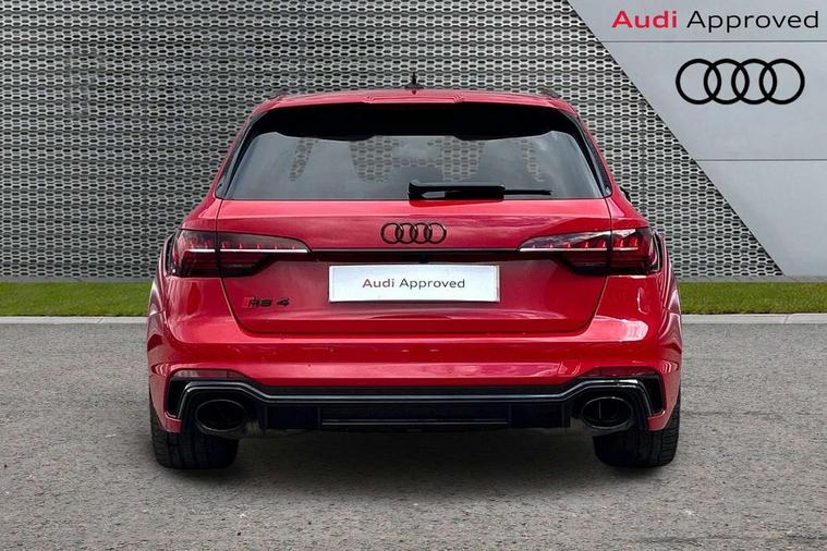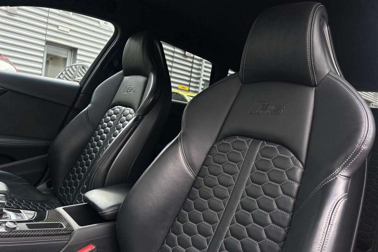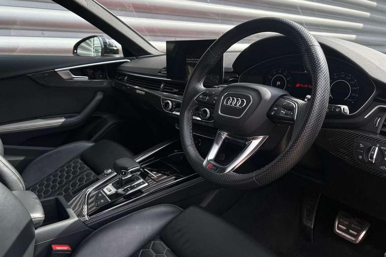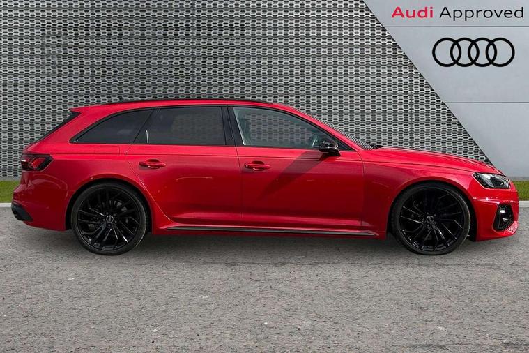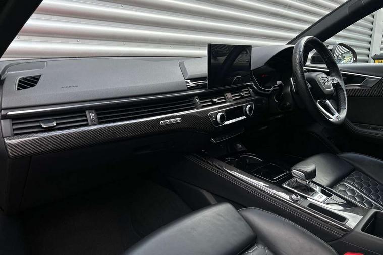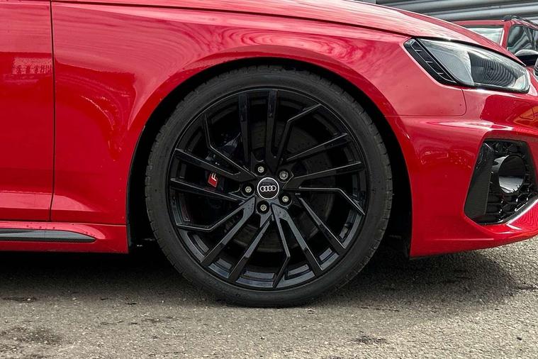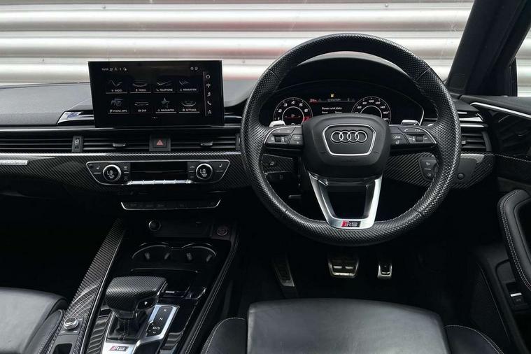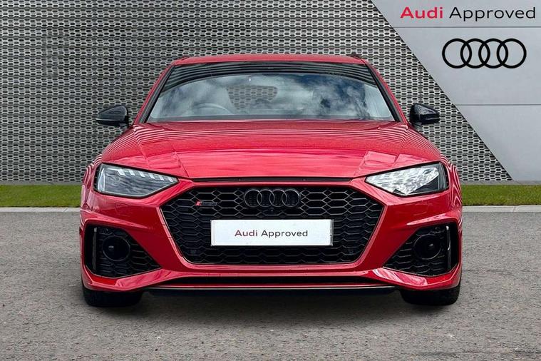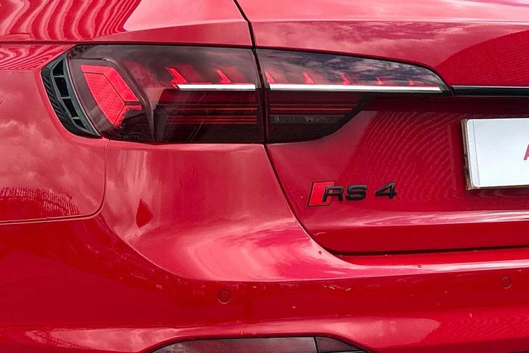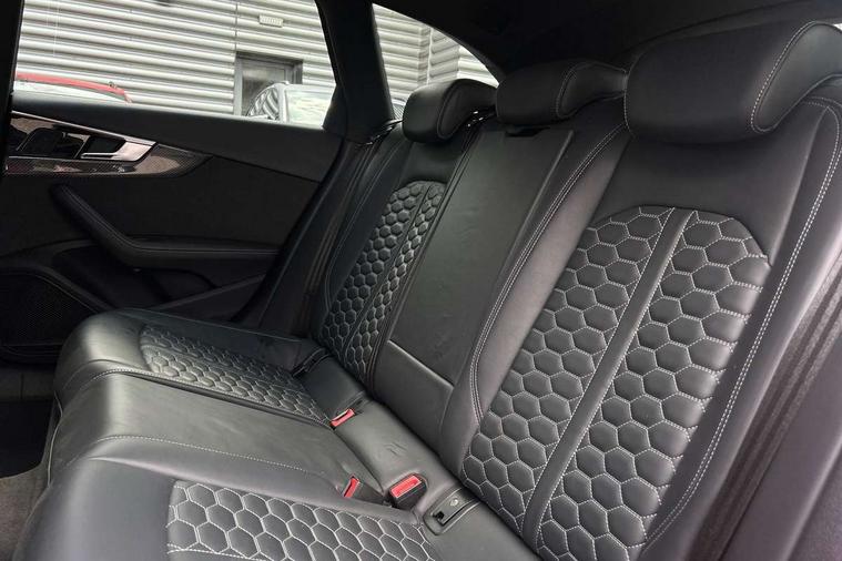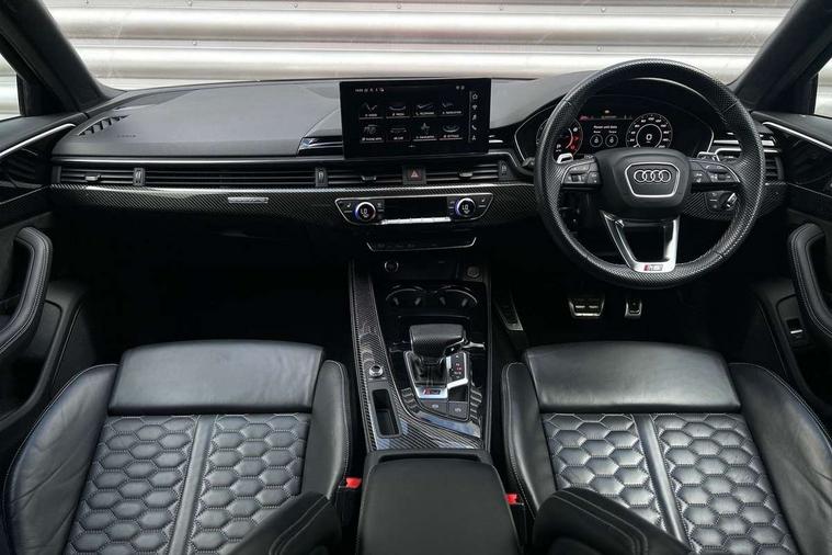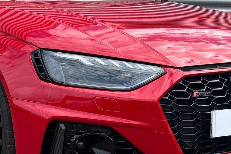 7" Colour driver information system, Amazon alexa Integration, Audi connect safety and service (e-call), Audi drive select, Audi side assist, Audi smartphone interface, Audi virtual cockpit with RS specific display, Automatic start-stop system with coasting functionality and efficiency programme, Bluetooth interface, Electromechanical power steering, Email, calendar and text messages displayed via MMI, MMI Navigation plus with MMI touch includes 10.1" high resolution colour MMI display, 3D map, Power opening/closing tailgate, Service interval indicator, Voice control system, 58 Litre fuel tank, Quattro sports differential, 2 USB charging ports, Audi sound system, DAB digital radio module, 3rd brake light, Acoustic windscreen, Audi Beam uses LEDs to project the RS logo onto ground as you exit your RS4, Audi matrix LED headlights with LED rear lights + dynamic front and rear indicators, Audi rings and lettering glossy black, Auto dimming rear view mirror, Automatic headlights + automatic windscreen wipers, Black roof rails, Blue tinted glass, Body colour door handles, Electric front windows, Electric rear windows, Electrically folding auto dimming/adjustable/heated door mirrors with memory function, LED side indicators and kerb view function for passenger side, Flared front and rear wheel arches, Front bumper with enlarged air inlets, Headlight range control, High beam assistant, High gloss black door mirror housing, High gloss black triangular aperture at rear door, Honeycomb design grille with quattro logo, Lateral air inlets next to front headlights, LED daytime running lights, LED indicators in door mirrors, Privacy glass with rear acoustic glazing, Rain and light sensors, Rear side wing doors, Rear wiper, Roof spoiler, RS 4 badges on grille and rear, RS4 dual branch chrome tailpipes with left and right oval pipes, 3 seat bench in 2nd row, 3 spoke multifunction plus leather steering wheel with heating and RS badging, 40/20/40 split folding rear seats with rear centre armrest, Black cloth headlining, Deluxe 3 zone electronic climate control, Electric load area cover, Electrically adjustable front seats, Fine nappa leather with contrast honey comb stitching + super sports seats with pneumatic massage function, Front centre armrest, Front headrests, Front/rear floor mats, Heated front seats, Height and reach adjustable steering wheel with full size airbag, Illuminated door sill trims with RS4 logo, ISOFIX child seat mounting and top tether, Leather door armrests and knee pad, Luggage compartment carpet, Perforated leather gear lever knob with contrast stitching, Rear headrests, Retractable load area cover, Single front passenger seat, Stainless steel pedals, Sunvisors with vanity mirrors, Carbon black styling pack - RS4, LED Interior light pack - RS4, Non Smokers pack, 3 point seatbelts on all rear seats, Adaptive driver and front passenger airbags, Electromechanical parking brake, Electronic stabilisation control including ABS, ASR and EDL, Enhanced braking system, Front head airbags, Front seatbelt pretensioners + load limiters, Front side airbags, Hill hold assist, Manual child lock in rear doors, Multi-Collision braking, Pop-up bonnet for pedestrian protection, Pre sense city, Rear side airbags, Seatbelt monitoring, Traction control, Tyre pressure warning, Variable restraint system, Warning triangle and first aid kit, Anti theft alarm, Anti-theft wheel bolts, Immobiliser, Keyless Go, Remote central locking, Remote control key with RS emblem, Carbon twill inlays, 20" 5 segment spoke evo design glossy black sport alloy wheels, Tool kit, Tyre repair kit,