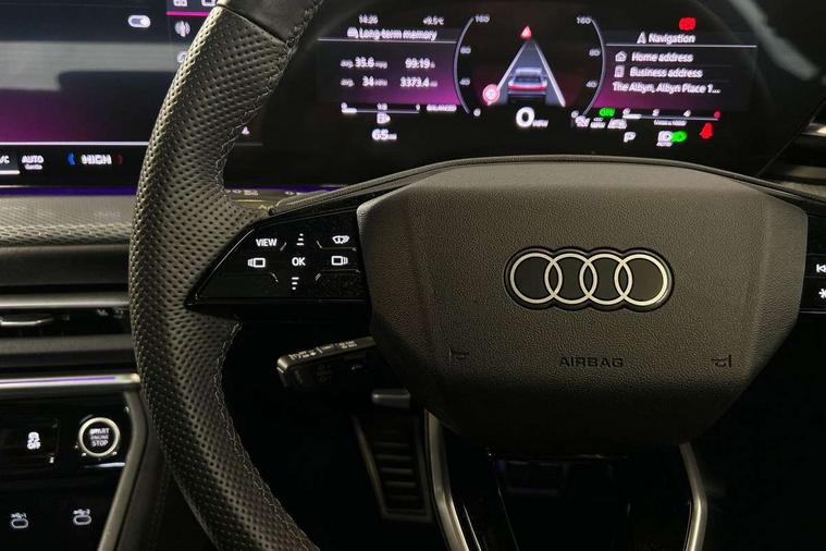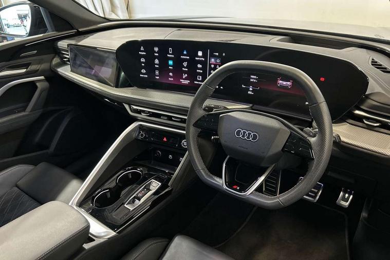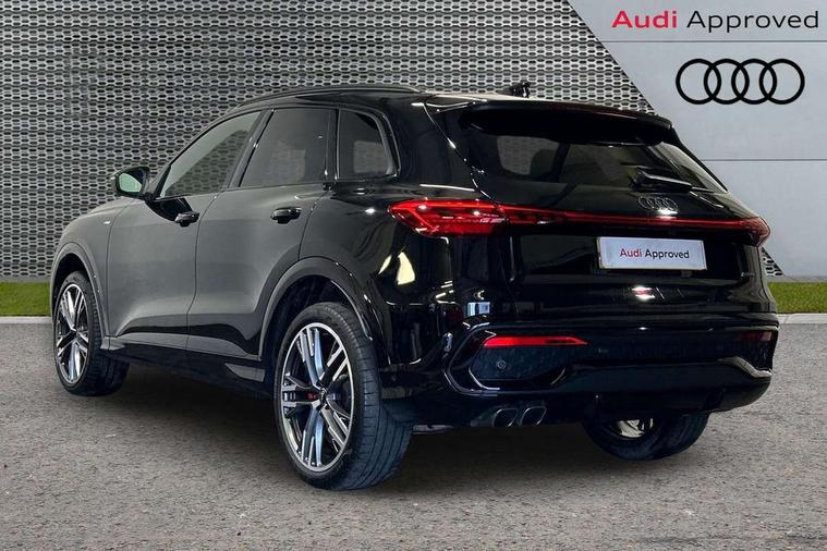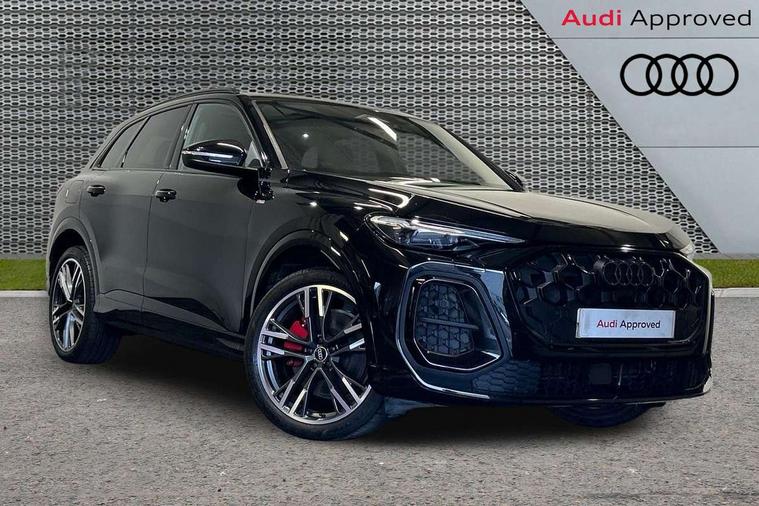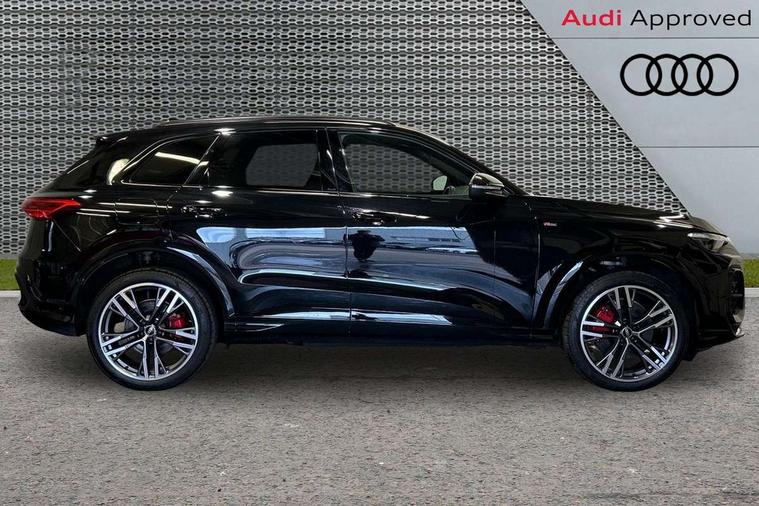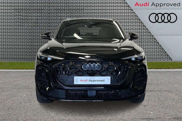 Adaptive cruise control, Advanced driver attention alert, Audi application store, Audi connect emergency call and service, Audi drive select, Audi smartphone interface, Audi virtual cockpit plus with 11.9" OLED colour display, Camera based traffic sign recognition, Fatigue monitor, Front cross traffic intersection assist, Lane change assistant with exit warning system, rear cross traffic alert and rear turn assist, Lane departure warning with emergency assist, MMI 10.9" front passenger touch display, MMI navigation plus with high resolution 14.5" OLED touchscreen colour display, Park assist plus, Parking system plus with 360 display, PAS, Reversing camera, Swerve assist and turn assist, Top view camera, Traffic sign based speed limiter, 2 USB-C ports in both the front and rear, Audi sound system impressive sound with 10 loudspeakers including centre speaker and subwoofer, 6-channel amplifier with a total output of 180 watts, DAB Digital radio, Smartphone compartment with wireless charging, Active digital light signatures - Six additional combinations of active daytime running light signature, Auto dimming rear view mirror, Black roof rails, Coming/leaving home lighting function, Electrically adjustable heated and folding + automatically dimming exterior mirrors, Exhaust tailpipes in dark chrome, Front and rear electric windows, Front door sill trims with aluminium inlays, illuminated with 'S' logo, Full body paint finish, Grill frame, inlay and front air inlets in matt anthracite chrome, Headlight cleaning system, Heated rear window, High beam assist, High gloss window surrounds, LED rear lights pro incl. dynamic rear indicators and illuminated light strip with animated coming and leaving home function, Logo projection light in exterior mirrors, Matrix LED headlights, Memory function for door mirrors, Privacy glass, Projection third brake light for rear window in LED, Radiator grille in phantom black, Rear and side windows with heat insulating glass, Rear honeycombe grille in matt black with inlay in matt anthracite chrome, Rear side wing doors, Rear wash/wipe, S Line badge on the front wings, Towbar preparation, Windscreen with acoustic glazing, 3 rear head restraints, 3 seat bench in 2nd row, 3 spoke leather steering wheel with multi-function buttons with touch control, flattened on top and bottom, with S badging and contrast stitching, 4 way electric lumbar support for driver and front passenger, 40:20:40 split folding rear seat bench with centre armrest and cup holders, Comfort centre armrest front, Deluxe 3 zone electronic climate control, Dinamica microfiber/leather upholstery, Electrically adjustable front seats with memory function for driver's side, Front and rear floor mats, Front sport seats with integrated head restraints, Headlining in black cloth, Heated front seats, i-Size child seat mounting on the front passenger side and outer rear seats, i-Size and top tether on the outer rear seats, Interior trim in aluminium look, Luggage compartment lid, electrically opening and closing, Manual steering column adjustment, Single front passenger seat, Softwrap in Dinamica, Stainless steel pedals and footrest, Steering wheel grips in perforated leather and shift paddles, Ambient lighting package plus - Q5, Black styling package plus - Q5, Storage and luggage compartment pack - Q5, 3x3 point rear seatbelts, ABS, Acoustic vehicle alerting system, Convenience key with safelock, Driver and front passenger airbag with passenger airbag deactivation, Electric child safety locks, First aid kit with warning triangle and high visibility vests, Front emergency brake assist, Front side airbags with head airbag system and front interaction airbag, Hill hold assist, Occupant detection in rear seat area, Proactive passenger protection system for front, sides and rear, Red brake calipers, Side airbags in front and rear with head airbag system and front interaction airbag, Tyre pressure loss indicator, Anti theft alarm, Anti-theft wheel bolts, Remote control key with SAFELOCK and keyless go, Accent surfaces and control buttons in gloss black, Black dashboard with contrast stitching, Steel grey seat stitching, Upper and lower interior elements in dinamica microfiber, Tyre repair kit,