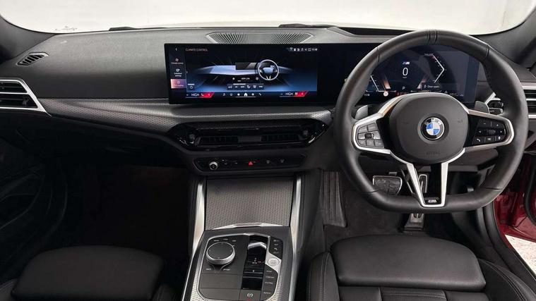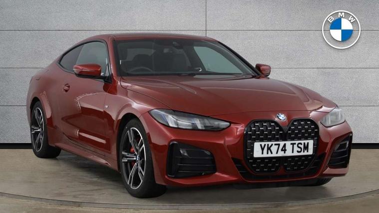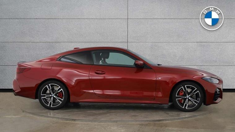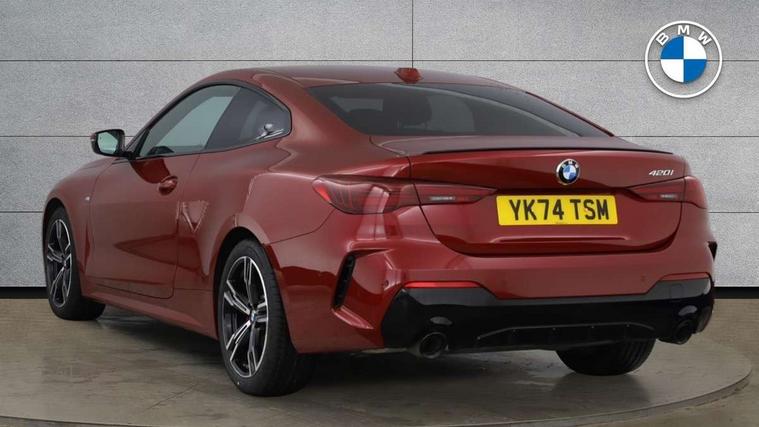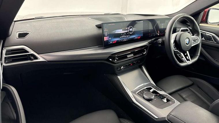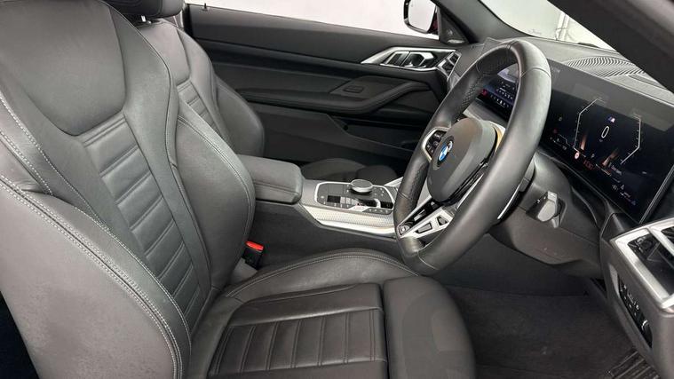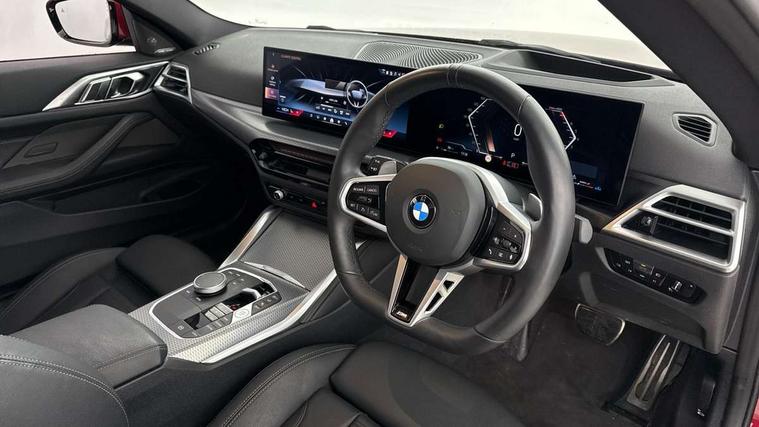 Active guard plus, Attentiveness assist, Auto start-stop, Bluetooth hands free facility with USB audio interface with audio streaming, BMW ConnectedDrive online services, BMW iDrive controller on centre console, BMW Live Cockpit Plus Nav-12.3" instrument&14.9" control Widescreen curved display/Intelligent Voice Assist/iDrive touch/Access 3rd party app/4G LTE, BMW service history, BMW Teleservices, Brake pad wear indicator in front and rear, Check Control warning system for monitoring of lights and door/luggage compartment open warning, Condition based service, Electric power steering with Servotronic steering optimised at all speed ranges, Gearshift time display in manual mode, Instrument cluster with speedometer with mph readout, tachometer, fuel gauge and oil temperature gauge, Integrated owners handbook, Language version English, Oil sensor for level and grade, warning by check control system, On board computer - average speed, fuel consumption, outside temp display with acoustic warning, clock/date, service interval, odometer/trip meter, Optimum shift indicator, Run flat indicator, Shifting point display, Variable sport steering, 8 speed automatic steptronic transmission with gearshift paddles, Balanced 50/50 weight distribution, Double joint spring strut front axle, Double VANOS, Drive performance control - ECO PRO, comfort and sport modes, High precision injection, Low centre of gravity, Petrol Particulate Filter, Stroke dependent dampers, VALVETRONIC engine management, 1x USB type A with data transfer and 1.5 Amp charging function in the centre console, 1x USB type C with 3 Amp charging function in the front centre armrest, DAB tuner, Electronic service booklet, Personal eSim, Acoustic glazing, Automatic headlight beam throw control with load dependent regulating reaction, dynamic compensation of braking dive and acceleration squat, Automatic windscreen wipers and automatic headlight, Automatically dimming electrochromatic rear view mirror, BMW emblem on engine compartment lid and tailgate, BMW radiator grille with mesh grille, end face of the nuggets in aluminium matt and frame in chrome matt, Body colour fuel filler flap, Body colour roof fin, Bonnet and tailgate badge, Brushed aluminium inserts in the front door sill finishers with BMW designation, Door sill strips, Dynamic brake lights, Electric windows - front and rear, with open/close fingertip control, anti trap facility and comfort closing function all round, Exterior mirrors - electrically folding with anti-dazzle, Fading support, Follow me home headlights, Front and rear bumper system, Front apron plastic in body colour, Green tinted heat protection glazing, High gloss shadow line exterior trim, Illuminated bow type door handles in body colour drivers side with door lock, Interior rear view electrochromatic mirror with automatic anti dazzle function, LED 3rd brake light, LED daytime running lights, LED front fog lights, LED front indicators, Licence plate panel integrated into front bumper and tailgate, Lightweight engineering, Low and high beam headlights in Bi-LED, M designation on front side panels, left and right, M rear boot spoiler, One piece front bumper cover including towing eye cover in body colour, Preparation for high beam assistant, Rear boot, Reversing light, Side frame trim strip black matt, Two part LED tailights in L-shape with components in smoked glass, brake light, LED turn indicator and rear fog light, Visible exhaust tailpipe finisher, Visible VIN plate, Welcome lights in interior and door handle area, Widened track and increased camber values for max transverse dynamics, agility and steering precision, Window recess finisher strip in matt black, Windscreen wipers with integrated heated washing jets, 12V power socket in front centre console, 2 front cupholder in centre console with clamping elements and matt black inlay, 2 Rear seat headrests, 2 seat bench in second row, 2 zone automatic air conditioning, 3 spoke flat bottom M sport leather multifunction steering wheel, 4 pieces lashing eyelets in luggage compartment, 40:20:40 split folding rear seat and rear centre armrest with two cupholders, Anthracite headlining, Armrest integrated in front and rear door trim + front centre console armrest, Battery in luggage compartment, BMW ID, Extended storage - Luggage compartment partition net on left side trim panel, Bag hook on both sides of the luggage compartment, Four grab handles integrated in roof lining, Front and rear door pockets, Front and rear reading lights, Front footwell lights, Heated driver and front passenger seats, Height adjustable front headrests, Height adjustable mechanically and infinitely variable steering column, Illuminated armrest storage compartment, Illuminated glove compartment with separate small compartment, Luggage compartment light, Make-up mirror lights, Single front passenger seat, Storage compartment in rear centre console, Sunvisors with illuminated vanity mirrors and ticket pocket, Through load system, Toolkit located in luggage compartment, Velour front floor mats, Ambient lighting pack - 4 Series, Connected professional package - 4 Series, M sport exterior styling pack - 4 Series, Park assist pack - 4 Series, 2 x 3-point rear seatbelts, Battery safety cut-off, BMW emergency call, Brake energy regeneration, Braking pre-tensioning, Child seat ISOFIX attachment for the two outer rear seats, Coasting in idle in ECO PRO mode, Cornering brake control (CBC), Crash sensor activating of airbags, Unlocking doors, hazard warning lights, interior light, safety battery terminal, Driver and front passenger side airbags, integrated in the door side seat backrest bolsters for all seat variants, Driver/Front Passenger airbags, Dry braking, Dynamic brake control, Dynamic stability control + (DSC+) - Anti-lock Braking System (ABS) with brake assist and cornering brake control + Automatic Stability Control (ASC), Dynamic Traction Control - DTC, Electric parking brake including automati