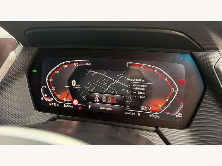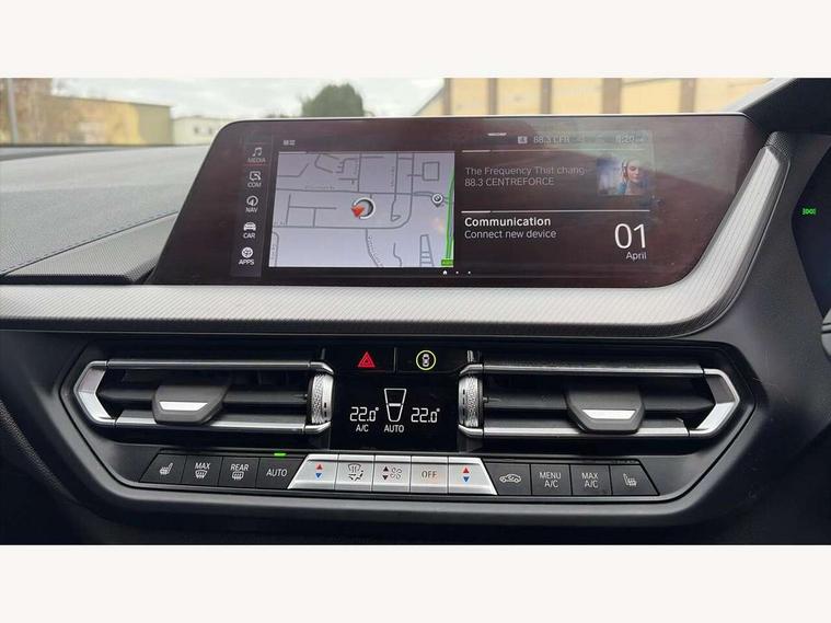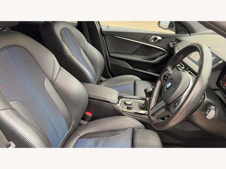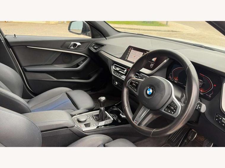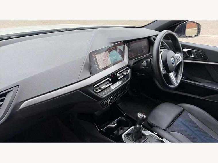 Active guard plus, Attentiveness assist, BMW ConnectedDrive online services, BMW Teleservices, Check Control warning system for monitoring of lights and door/luggage compartment open warning, Cruise control with speed limiter, Eco pro mode, Front axle single joint with specific axle kinematics to minimise drive influences on steering + provide increased rigidity agile driving behaviour, Integrated owners handbook, Lane departure warning system, Oil sensor for level and grade, On board computer, Optimum shift indicator, Personal Profile, Pull away assistant, Rigidly mounted rear subframe - Multi link construction with separate spring / damper configuration and excellent driving characteristics, Speed limit Info including no-overtaking indicator, Aluminium lightweight construction, Anti roll bar front and rear, Balancer shaft, Double VANOS twin scroll turbocharging system, Drive Performance Control, Electronic differential lock, High precision injection, M sport suspension, Petrol Particulate Filter, Twin tube gas filled shock absorbers with degressive characteristic curve, VALVETRONIC engine management, DAB Digital radio, Auto dimming rear view mirror, Automatic headlight beam throw control, Automatic windscreen wipers and automatic headlight, Body colour door handles, Body colour mirror caps, Body colour roof trims, Chrome 'M' logo side designation, Chrome exhaust twin tailpipes round 90mm in left, Chrome kidney grille frame with Satin Aluminium struts, Direction indicator side lights in exterior mirrors, Electrically adjustable exterior mirror with mirror adjustment switch on drivers armrest and aspheric on driver side, convex on passenger side, Fading support, Folding side mirrors with auto dimming/folding wing mirrors with auto dimming, Follow me home headlights, Front and rear bumper system with replaceable deformation elements, Front and rear electric windows with open and close fingertip control, anti trap facility and comfort closing, Front door sill finishers in black plastic with M designation in metallic look, Green tinted heat protection glazing, High gloss shadowline window frame, Recess cover mirror frames and B/C pillar embelisher trim, High level third brake light, Integrated front windscreen with washer jets, LED daytime running lights, LED eyebrow turn indicators, LED front fog lights, Lightweight engineering, Matt black air guide grilles, Matt black wheel arch trim, Model designation on electric bootlid, Nearside reverse light in rear light cluster, Preparation for high beam assistant, Rear fog lights, Rear side wing doors, Rear window wiper, Shark fin antenna, Trailer stabilisation logic, Visible VIN plate, Welcome lighting, 12V power socket in front centre console with blanking plug, 3 rear seat head restraints, 3 seat bench in 2nd row, 3 spoke sports leather steering wheel in black leather with black stitching and decorative finisher in pearl chrome, specific M badge + leather knob, Anthracite headlining, Black boot net with lashing eyes, Cargo function on 2nd seat row, Child seat ISOFIX attachment for two outer rear seats and front passenger seat with anchorage points, Conditioned based service, Driver and front passenger backrest net on rear, Driver and front passenger seat heating, Driver side folding compartment in instrument panel, Folding rear clothes hook, Four grab handles integrated in roof lining, Front and rear door pockets with bottle holders, Front and rear side armrest integrated into door trim, Front armrest, Front sports seats, Gearshift lever with M designation, Glove compartment, Height adjustable front head restraints, Luggage compartment for bag hooks on left and right, foldable luggage compartment liner and four lashing eyelets, Manual adjust steering wheel, Multi-function controls for steering wheel, Single front passenger seat, Storage compartment in centre console, Storage compartment in luggage compartment, Stowage of the parcel shelf in luggage compartment trim, Sun visors with vanity mirrors and insert tab, Two front centre console cupholders, Two zone automatic air conditioning, Type C two USB ports in rear centre console, Velour floor mats, Additional interior lighting pack - 1 Series, BMW live cockpit professional pack- 1 Series, Connected pack professional - 1 Series, Interior lights pack - 1 Series, M Sport exterior styling aerodynamics pack - 1 Series, 2 tone horn, 3 point seatbelts on all seats, front pyrotechnic belt tensioners, stopper and belt force limiters, rear coded belt buckles, Airbags - Front driver/passenger, front and rear curtain head protection, front side, manual deactivation of front passenger airbag, Anti lock braking system (ABS) with brake assist, BMW emergency call, Brake drying, Braking readiness, Child proof locking system in rear door, City braking function, Comfort modes, Cornering brake control, Crash sensor activating of airbags, Unlocking doors, hazard warning lights, interior light, safety battery terminal, Driver and front passenger seat belt security check, Dynamic stability control + (DSC+), Dynamic Traction Control - DTC, Electrically operated hand brake, Front and rear disc brakes, Seatbelt warning, Side impact protection, Tyre pressure monitoring system, Warning triangle and first aid kit, Central locking switch for all doors, fuel filler cap and luggage compartment, Deadlocking function system to all doors, Drive away locking system on all doors and luggage compartment with de-activated in iDrive settings, Locking wheel bolts, Remote control with integrated key with High-gloss Black inlay and M designation and 1 button for open/ close lock, window, open luggage compartment, Start/stop button illuminated in centre console with keyless engine start and auto start stop deactivation button, Thatcham Cat.1 alarm and immobiliser, Wheel slip limitation close to the actuator (ARB), Contrast stitching on instrument panel, 18" Burnished M double spoke bi-colour alloy wheels finished in orbit grey - style 819M