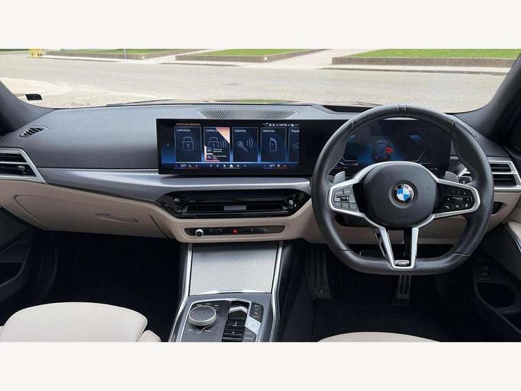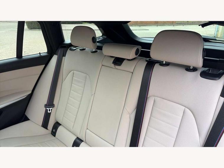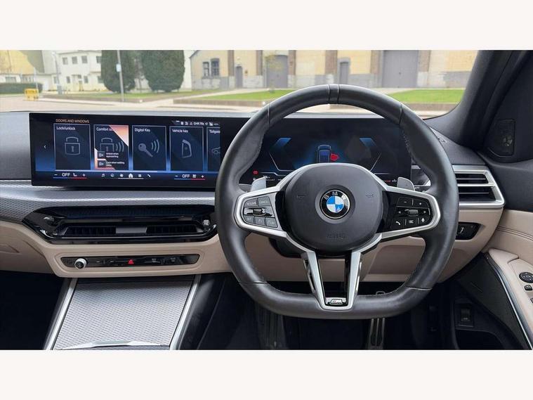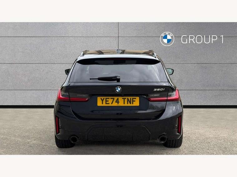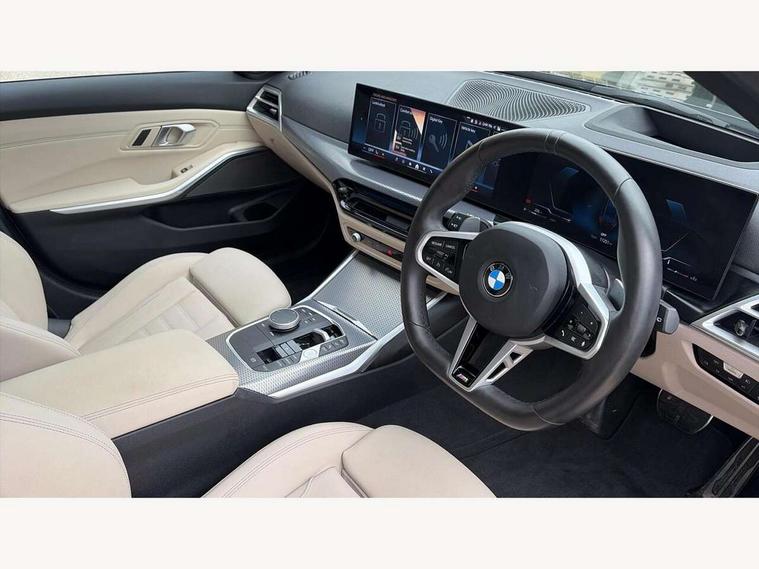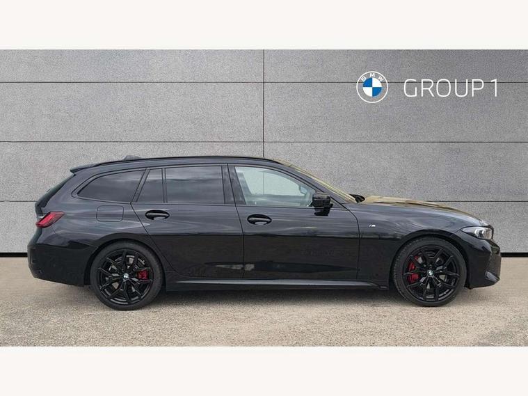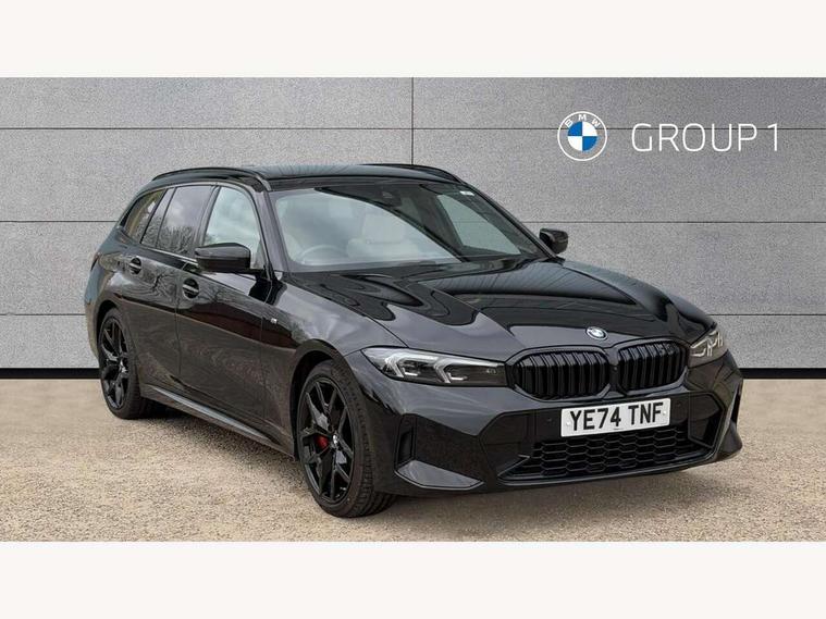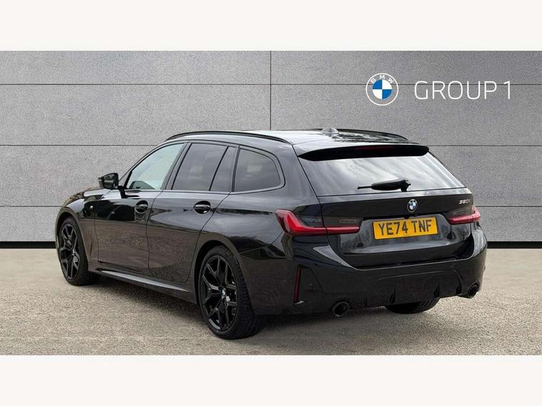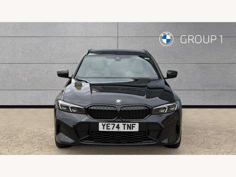 Active guard plus, Attentiveness assist, Automatic Start/stop button, Bluetooth Wi-Fi interface, BMW iDrive, BMW Teleservices, ConnectedDrive Services - last state call, Electric bootlid, Live cockpit plus with Navigation + 12.3" instrument display + 14.9" display, Intelligent voice assist, 2 USB, 4G LTE connect, Oil sensor for level and grade, Personal e-SIM, Shifting point display, Variable sport steering, Double joint spring strut front axle, Electronic differential lock control (EDLC), Fuel tank breather system, Sport automatic transmission with steering-wheel mounted gearshift paddles and launch control, DAB tuner, 3rd brake light, Auto dimming rear view mirror, Automatic headlight beam throw control with load dependent regulating reaction, dynamic compensation of braking dive and acceleration squat, Bi-LED Low and high beam headlights, BMW emblem, engine compartment lid and tailgate, Body colour roof fin, Door sill strips, Electric windows - front and rear, with open/close fingertip control, anti-trap facility and comfort closing, Fading support, Follow me home headlight function, Front and rear bumper system with replaceable deformation elements, Front apron plastic in body colour, Fuel filler flap - right rear in body colour, Heat protection glazing on front windows and windscreen, Heated washer jets, High gloss chrome kidney frame with high gloss black kidney struts, High gloss shadow line roof rails, LED daytime running lights, LED rear lights, LED turn indicator, Licence plate panel integrated into front bumper and tailgate, M high gloss shadow line exterior trim, Matt black B-pillar finsher, Matt black window recess cover, One piece front bumper cover including towing eye cover in body colour, Rain sensor with automatic headlight activation, Rear side wing doors, Rear wiper, Reversing lights, Side frame decorative moulding black matt, Trailer stabilisation logic, Visible exhaust tailpipe finisher, Welcome lights in interior and door handle area, 12V power socket in front storage compartment, 2 front cupholder in centre console with clamping elements and matt black inlay, 3 seat bench in 2nd row, 3 spoke M Sport multifunction flat bottom leather steering wheel, 3 zone automatic air conditioning, 40:20:40 split folding rear seat with loading system, Anthracite headlining, Armrest integrated in front and rear door trim + front centre console armrest, BMW ID, Cruise control operation in steering wheel, Driving experience mode switch, Folding rear centre armrest with 2 cupholders, Front and rear headrests, Front and rear velour floor mats, Front footwell lighting, Front reading light, Heated front seats, Height adjustable mechanically and infinitely variable steering column, Illuminated armrest storage compartment, Illuminated glove compartment, Illuminated luggage compartment, Lashing eyelets in luggage compartment, Single front passenger seat, Sunvisors with illuminated vanity mirrors and ticket pocket, Toolkit located in luggage compartment, Connected pack professional - 3 Series Saloon/Touring, Interior and exterior mirror pack - 3 Series Touring/Saloon, M sport exterior styling pack - 3 Series Saloon/Touring, Parking assistant pack - 3 Series, 3x3 point rear seatbelts, BMW emergency call, Child locks on rear doors, Crash sensor activating of airbags, Unlocking doors, hazard warning lights, interior light, safety battery terminal, Drive-off assistant, Driver and front passenger with seat occupancy detection for driver's and passenger side, Driver and passenger side airbags, body protection at side and airbags deploy from seat backrests, Dry braking, Dynamic brake control, Dynamic stability control + (DSC+) - Anti-lock Braking System (ABS) with brake assist and cornering brake control + Automatic Stability Control (ASC), Dynamic Traction Control - DTC, Electric parking brake including automatic hold function and automatic release of the parking brake when driving off, Front airbag deactivation, Front airbags for driver and front passenger, Head airbags in 1st and 2nd row, head protection at side, curtain airbags open from headliner above 1st and 2nd row, Plastic fuel tank, Side impact protection, Tyre pressure sensors, Ventilated front and rear disc brakes, Warning triangle and first aid kit, Alarm system, Centre lock switch, Closing system with central locking, Electronic vehicle immobiliser, Locking wheel bolts,