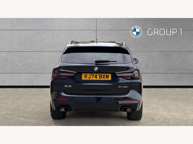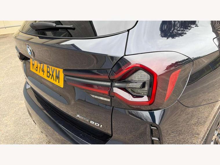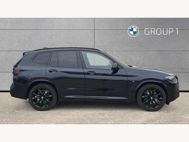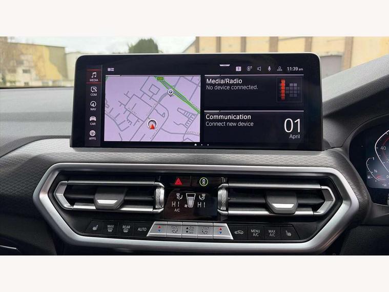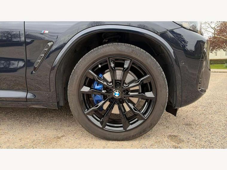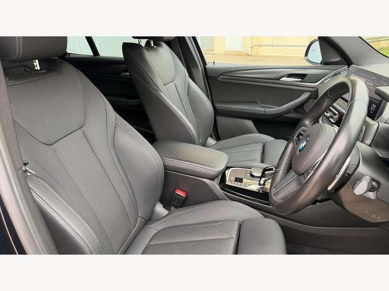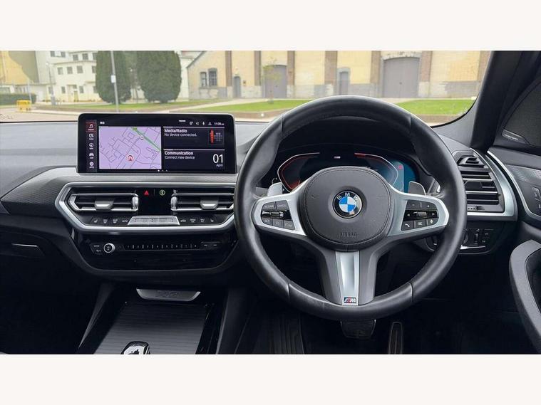 Active Guard, Attentiveness assist, BMW Live Cockpit Professional nav system including 12.3" instrument display + 12.3 high resolution control display, BMW Online services, BMW Teleservices, Brake pad wear indicator in front and rear, Check Control warning system for monitoring of lights and door/luggage compartment open warning, Condition based service - BMW service history, electronic service booklet, integrated owner's handbook, Connected drive services, Electric boot lid, Front/rear Parking distance control, iDrive touch controller with 8 favourite buttons, Instrument cluster with speedometer with mph readout, tachometer, fuel gauge and oil temperature gauge, Lights on warning by audio warning signal when ignition is switched off, Oil sensor for level and grade, warning by check control system, On board computer - average speed+fuel consumption, service interval, clock/date, odometer/trip meter, outside temperature display and ice warning, Optimum shift indicator, Personal Profile - automatic lock when driving away selectable, Run flat indicator, Stop/start system, Variable sports power steering with drive performance control Sport+ mode, Automatic transmission with gearshift paddles, Incorrect fuelling protection, M sport suspension, Multi-link rear suspension, BMW professional radio/CD/MP3, DAB tuner, Acoustic glazing, Automatic windscreen wipers and automatic headlight, Black finish on B pillars, Body colour door handles, Body colour electric adjust heated aspherical door mirrors, Body colour roof mouldings, Body coloured bumpers, Direction indicator, side repeaters, integrated in exterior mirrors, Dynamic brake lights, Exhaust tailpipes - dual, round, split left and right with chrome finisher, Fingertip control / anti-trap function on electric window, Folding wing mirrors with auto dimming, Follow me home headlights, Front and rear bumper system with replaceable deformation elements, Front and rear electric windows, Gloss chrome tailpipes finishers, Green tinted heat insulating glass, Heated windscreen washer jets, High beam assistant, High gloss black shadow line roof rails, High gloss shadowline exterior trim in decorative moulding side frame/recess cover/guide rail/B, C pillars/mirror frame and triangle with mirror base, High level 3rd brake light incorporating LED Technology, Interior rear view electrochromatic mirror with automatic anti dazzle function, LED tail lights, Lightweight engineering, M aerodynamic bodystyling, M Sport entry door sill strips, Model designation, Rain sensor, Rear side wing doors, Rear wing door, Rear wiper, Shark fin antenna, Side exterior M designation badges, Visible VIN plate, Welcome lighting, Windscreen wipers with adjustable interval, 12V power point in luggage area, 12V power socket in front centre console, 2 x USB Type C ports for charging and data transmission (front centre console) and 2 x USB Type C ports for charging (rear centre console), 3 rear headrests, 3 seat bench in 2nd row, 3 zone automatic air conditioning, 4 lashing points to secure luggage, 40:20:40 split folding rear seat with loading system, Ambient lighting, Anthracite headlining, Automatic interior light when door is opened/ignition switched off or via remote key, Floor mats in velour, Foldable storage floor with compartment, Four grab handles integrated in roof lining, Front and rear bottle holders integrated into door trim storage compartments, Front and rear side armrests integrated into door trim, Front centre armrest with storage compartment, Front footwell lights, Front head restraints, Front passenger seat, Front sports seats, Front/rear courtesy lights with soft on/off dimming, Front/rear reading lights, Heated front seats, Isofix rear child seat preparation, Leather gear knob, Lockable glove compartment, Luggage area underfloor compartment, Luggage compartment lighting, M sport leather steering wheel, Multifunction steering wheel, Parcel shelf removeable and storable under boot floor, Reach and rake adjustable steering column, Rear centre armrest with 2 cupholders, Removable / retractable luggage cover, Slope adjustable rear seats, Storage compartment in rear centre console and front/rear door trims, Sun visors with vanity mirrors and ticket pocket, Toolkit located in luggage compartment, Two front cupholders with removable oddments tray/lid, Connected pro pack - X3, ADB - Automatic Differential Brake, Anti-lock braking system (ABS) with brake assist, Automatic Stability Control (ASC), Battery safety cut-off, BMW emergency call, Brake drying, Brake energy regeneration, Braking pre-tensioning, Child locks on rear doors, Cornering brake control (CBC), Crash Sensor - activation of central locking release, hazard warning light and interior lighting, Deactivation of fuel pump in the event of a crash, Driver and front passenger front and side airbags with passenger deactivation and ITS front and rear head airbags, Driver and front passenger knee airbag, DSC+, Dynamic brake control, Dynamic Traction Control - DTC, Electromechanical parking brake, Hill descent control, Hill start assist, Seatbelt security check for front seats, Side impact protection, Three point seatbelts to all seats with front and outer rear pyrotechnic belt tensioners and seat belt force limiters, Two tone horn, Tyre pressure sensor, Ventilated front and rear disc brakes, Warning triangle and first aid kit, Central locking switch for all doors, fuel filler cap and luggage compartment, Electronic engine immobiliser, Locking wheel nuts, Remote control including two integrated key - one button for open/close all lockable content, windows and separate button for open luggage compartment, Remote control Thatcham category 1 alarm, Start/stop button with Comfort Go keyless engine start and auto Start/stop deactivation button, Low rolling resistance tyres,