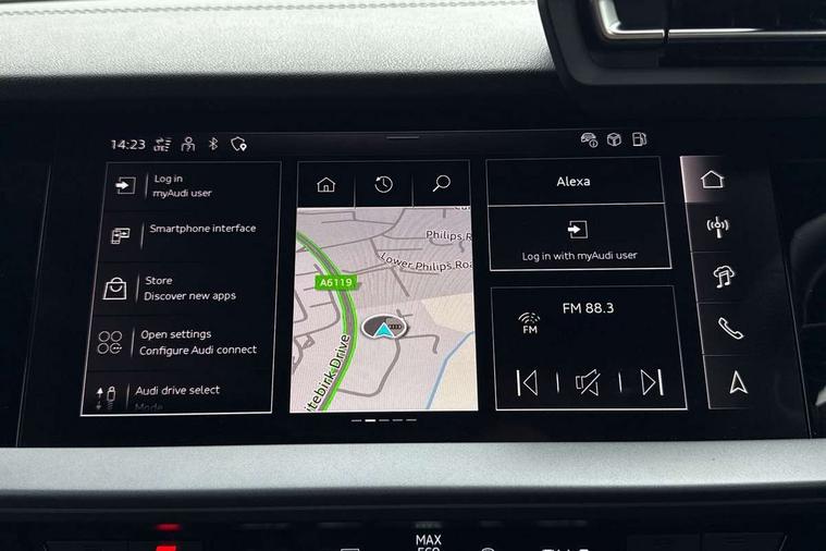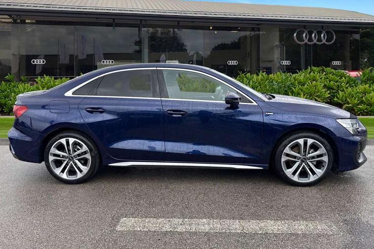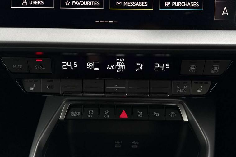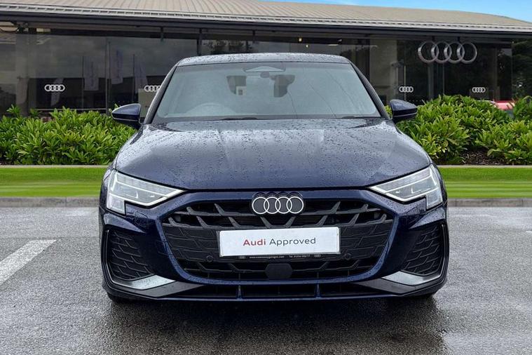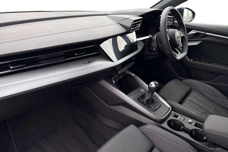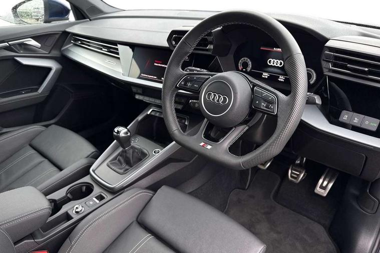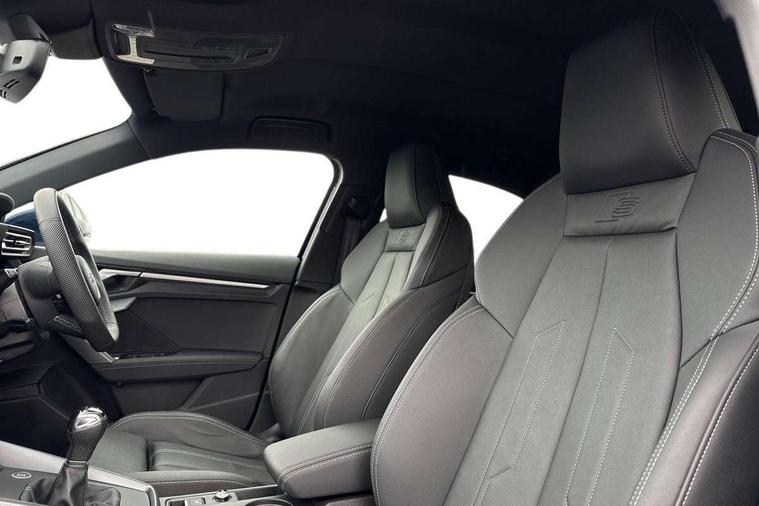 Adaptive cruise control (ACC), Adjustable speed limiter, Audi drive select (Auto, Comfort, Dynamic, Efficiency and Individual), Audi virtual cockpit plus - 12.3" full HD resolution dynamic digital instrument cluster, Automatic start/stop system with recuperation, Bluetooth interface, Camera based traffic sign recognition, Collision avoidance assistant, Driver attention and fatigue detection, e-Call (emergency call), Electromechanical power speed sensitive steering, Intersection assist, Lane departure warning system, MMI Navigation Plus with high resolution 10.1" colour touch screen display, Park Assist with parking system Plus, Reversing camera, Service indicator, Smartphone interface with app store includes wireless Apple carplay, Android auto and Amazon alexa integration, Trip computer, Voice control system with natural language interaction, Sports suspension, Audi Phonebox light with wireless charging, Audi sound system - 10 loudspeakers including centre loudspeaker and subwoofer, DAB Digital radio, USB ports with charging function in the rear, Acoustic glass windscreen, All weather light, Aluminium window trim, Auto dimming frameless rear view mirror, Automatic dynamic range control, Body colour exterior mirrors, Chrome exhaust tailpipes, Dipped beam, main beam, position light and turning light, Electrically adjustable/heated/folding/auto dimming door mirrors with integrated LED indications + kerb view function for passenger side, Exterior model badging, Front and rear side air inlets in grained matt black with dark liquid chrome frame, Front electric windows, Front radiator grill in high gloss dark chrome, Heat insulating glass windscreen, Illuminated door sills with aluminium inserts at the front with S logo, Intersection light, LED 3rd brake light, LED brake lights, LED daytime running x3, LED headlights with LED rear lights and dynamic rear indicators, LED rear number plate lights, LED reverse light, LED tail lights, Light and rain sensors, Manoeuvring light, Motorway light, Privacy glass - dark tinted rear window, rear door and side windows, Rear boot, Rear diffuser and grill in grained matt black with inlay in dark liquid chrome, Rear electric windows, Rear side wing doors, S line bumpers, Side S line emblems on front wings, Side sill trim in dark liquid chrome, Static cornering light, 12V socket and storage compartment in front centre console, 3 seat bench in 2nd row, 3 spoke flat bottomed multi-function leather sport steering wheel, 3-zone deluxe automatic air conditioning, 4 way electrically adjustable lumbar support for driver and front passenger, 40/20/40 split folding rear seat bench, Black cloth headlining, Black front and rear floor mats, Front and rear centre armrest in artificial leather with contrasting stitching on armrests and instrument panel, Front and rear headrests, Heated front seats, Height and reach adjustable steering wheel, i-Size child seat mounting on the front passenger side and outer rear seats, i-Size and top tether on the outer rear seats, Manual boot compartment lid, Manually adjustable front seats, Rear centre armrest with cupholder, S badging on the steering wheel, Seat side bolsters, Single front passenger seat, Stainless steel pedals and front footrest in black, Twin leather upholstery with front sports seats S embossed logo, Aluminium interior elements pack - A3, Multi-coloured LED interior lighting package with Multi-coloured contour lighting of instrument panel - A3, 3x3 point rear seat belts, Driver and front passenger airbag with passenger airbag deactivation, Electronic Stabilisation Control (ESC) including ABS, ASR and EDL, First aid kit with warning triangle and 2 safety vests, Front side airbags with head airbags and interaction airbag, Hill hold assist, Pre-sense front with pedestrian and cyclist detection, Seatbelt monitoring, Tyre pressure loss indicator, Anti theft alarm, Anti-theft wheel bolts, Electronically operated child locks, Immobiliser, Black dashboard, Inlay in dark aluminium spectrum,