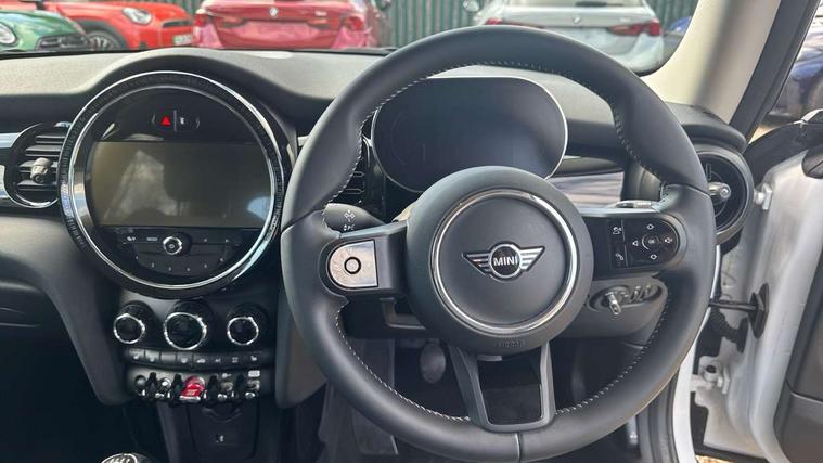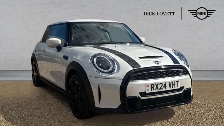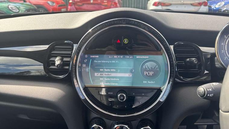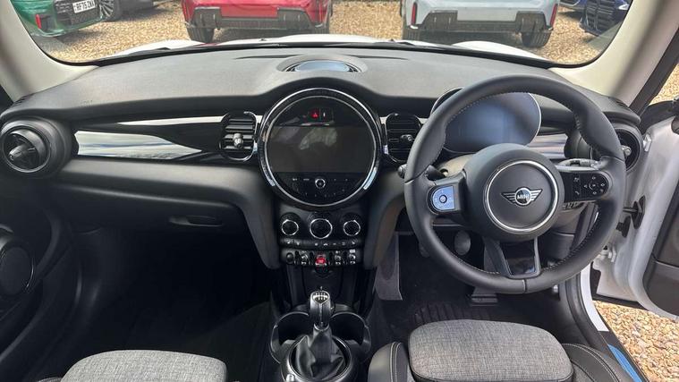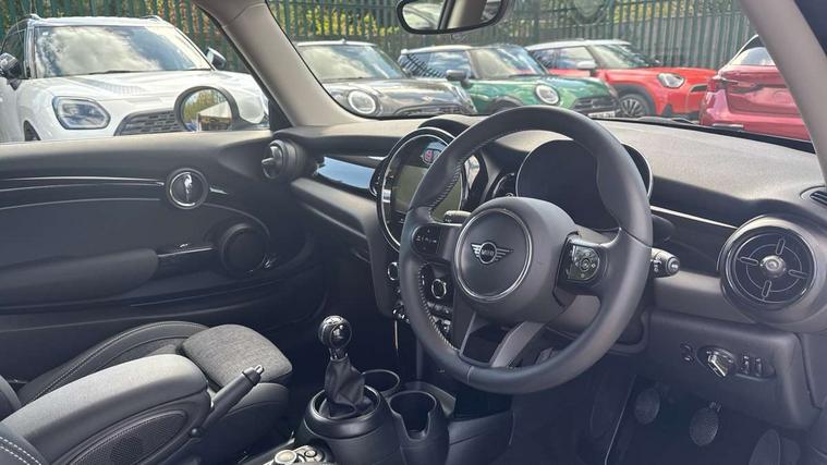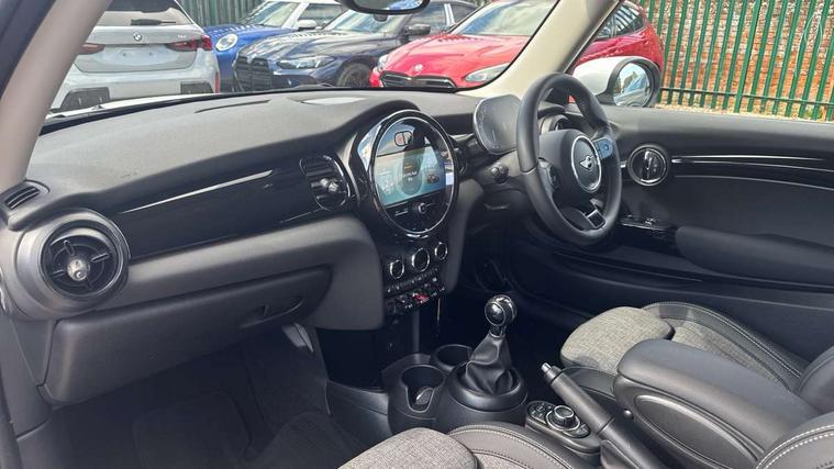 Automatic start/stop function with brake energy recuperation, Compatible mobile phone bluetooth with audio streaming, Electro-mechanical speed dependant steering assistance, Instrument cluster, MINI Driving Modes - centre toggle switch to control driving setting (sport, mid and green), Mini E-call, MINI TeleServices, On board computer, Service interval indicator, Double Vanos system, Fully variable valve control, Gear change indicator display, High precision injection, Performance Control, 6.5" touchscreen with LED ring, FM tuner and DAB digital radio, Automatic headlight activation switch, Bonnet scoop, Chrome border honeycomb structure radiator grille with S badge, Chrome plated fuel cap, Dynamic brake lights, Electric front+rear windows, Heated rear window, Heated windscreen washer jets, LED headlight with closed ring and daytime driving lights, Metal door sill strips with Cooper S imprint, Model logo Cooper S on right of tailgate, Rain sensor window wipers, Rear fog lights, Rear LED lights with union jack design, Rear window wiper, Side scuttle panel with integrated indicator, Sun/heat protection glass, Two central exhaust tailpipes with chrome finisher, White indicator lenses, 12V Accessory socket in centre console, 4 lashing eyes in luggage compartment, 60/40 split folding rear seat, Carbon Black colour line, knee roll and door armrests, Chrome interior highlights, Colour line - Carbon black, Cupholders, Front and rear head restraints, Front and rear isofix with front passenger airbag deactivation, Glove compartment, Height and length steering column adjustment, Interior lighting with 12 basic colours selectable via toggle switch in roof, Leather gearshift lever and handbrake gaiters, LED reading lights, vanity mirror lights, front foot well light and spotlight on front seats, Manual air conditioning, Mechanical seat adjustment, driver seat height adjust, forward/back and front seats backrest, Mini logo projection on floor from drivers exterior mirror, Multifunction steering wheel, Satellite grey headlining, Storage compartments in doors, Storage pocket on back of front seats, Sunvisors with vanity mirrors, 3 point seatbelts on all four seats, 6 Airbags - front, side, head and seat belt tensioners, Anti-lock braking system (ABS), DSC - Dynamic Stability Control, Front and rear disc brakes, Hill start assist, Two tone horn, Tyre pressure monitoring system, Alarm system with tilt sensor, monitoring doors, bonnet interior and tailgate, Electronic vehicle immobiliser, Start/stop toggle with keyless go, Tool kit, Tyre repair kit,