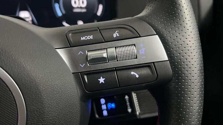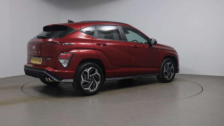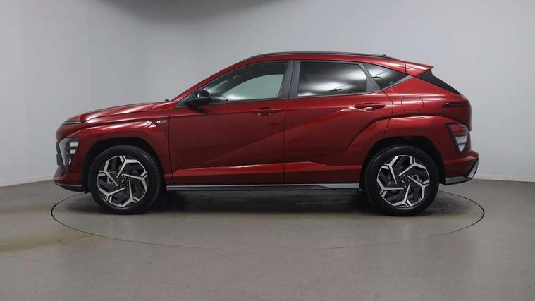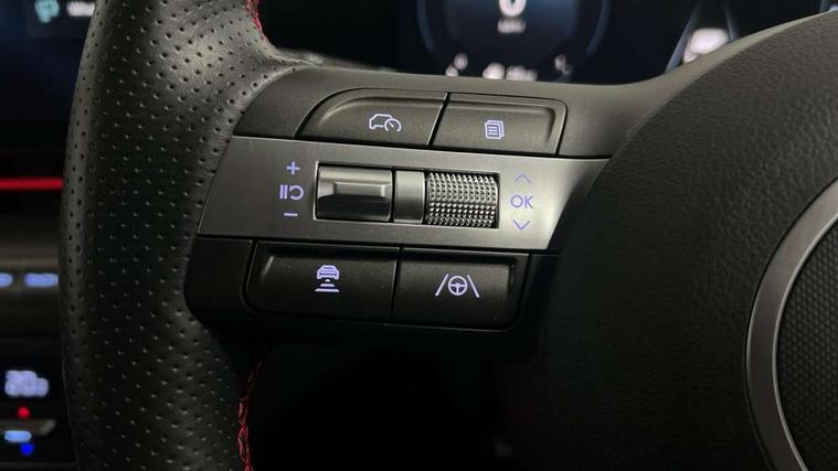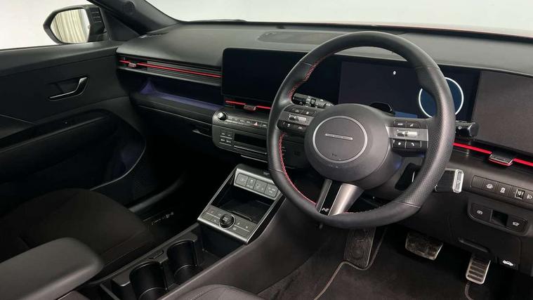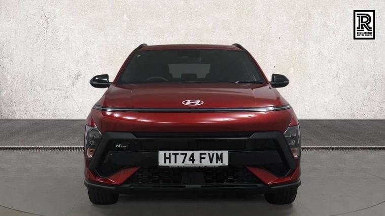 12.3" touchscreen centre console display satellite navigation with bluelink, live services and mapcare, Bluetooth connectivity with voice recognition, Driver status monitor (DSM), Driver supervision instrument cluster with 12.3" LCD display, eCall emergency call system, Feature on demand - Enabled, Forward collision avoidance assist (FCA 1.5) - Car, pededstrian, cycle and junction turning, Front parking sensor, HDA - Highway Drive Assist Level 1.5, Height adjustable power tailgate, Intelligent speed limit assist, Lane follow assist, Lane keep assist, Leading vehicle departure alert (LVDA), Parking system with rear camera and guidance system, PAS, Rear parking sensor, Roadside assistance, Smart cruise control with stop and go functionality, Wireless phone charging pad, Wireless Smartphone Integration includes Apple CarPlay and Android auto, 2 front USB C and 2 rear USB C charging points, DAB Digital radio, Speakers - Front, rear and tweeters, Steering wheel audio, phone and cruise controls, Auto dimming rear view mirror, Automatic headlights with dusk sensor, Automatic windscreen wipers with rain sensor, Body colour exterior door handles, Body coloured wheel arch inserts, Door mirror LED indicator lights, Electric front windows with anti-trap mechanism and one touch control, Electric rear windows, Electrically adjustable and heated door mirrors, Full LED MFR headlights, Gloss black door mirrors, LED daytime running lights, LED upper and lower rear lights, Power folding door mirrors, Privacy glass - Rear windows and tailgate, Rear roof spoiler with integrated LED brake light, Rear side wing doors, Rear wiper, Roof rails, Solar glass with front door glass and windscreen, Tinted glass in front and rear doors, Windscreen auto defog function, 12V power outlet in front console, 2 zone climate control, 3 seat bench in 2nd row, 40/20/40 split folding rear seat, Adjustable head restraints, Aluminium pedals, Ambient lighting, Driver and passenger front seat pockets, Driver's seat lumbar support, Driver/passenger manual seat height adjustment, Driver/passenger sunvisors and illuminated vanity mirrors, Floor mats, Heated front seats, Heated rear seats, Heated steering wheel, Height/reach adjustable steering column, LED centre interior light, LED front interior light, Luggage compartment LED lighting, Luggage shelf, Metal paint effect interior door handles, N Line cloth upholstery, Rear centre armrest with cupholders, Shift by wire SBW, Single front passenger seat, Vertical adjustment rear head restraints, N Line exterior design pack - Kona, Trailer wiring package - Kona, Airbag - front, front side, curtain and centre front airbag, Anti-lock brake system (ABS), Childproof rear door locks, Downhill brake control, Electric parking brake, Electronic stability control, Fixed 3 point for second row centre passenger seatbelt, Hill start assist control (HAC), Rear seat alert, Tyre pressure monitoring system, Alarm/immobiliser, Rear occupant alert, Remote central locking, Smart key with keyless entry and start/stop button, Five year annual vehicle health checks, Temporary mobility kit (TMK),