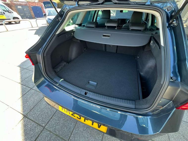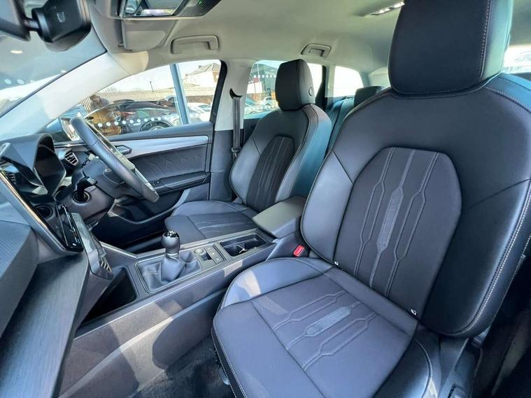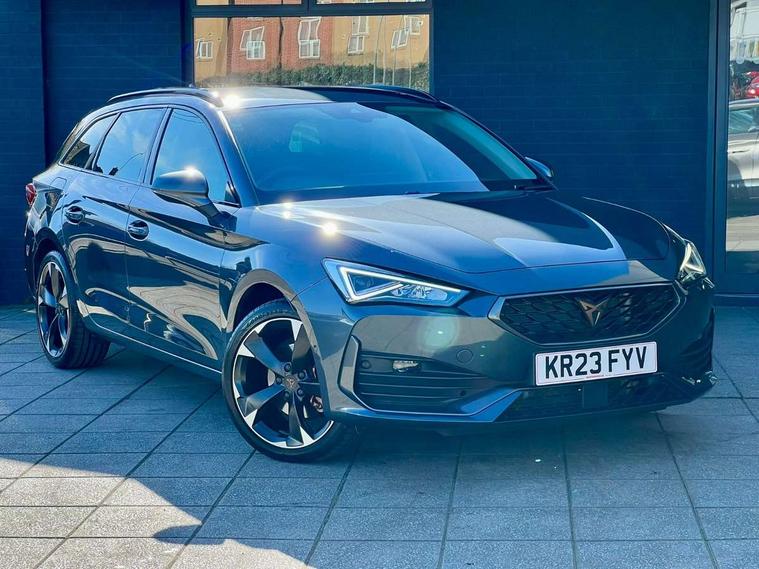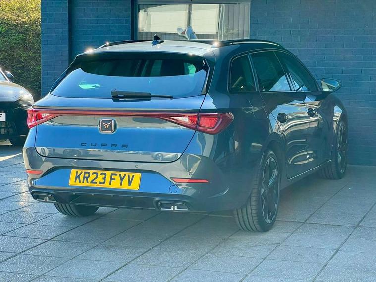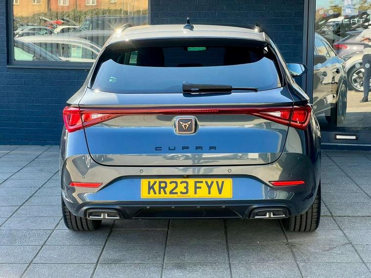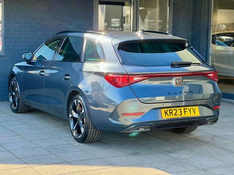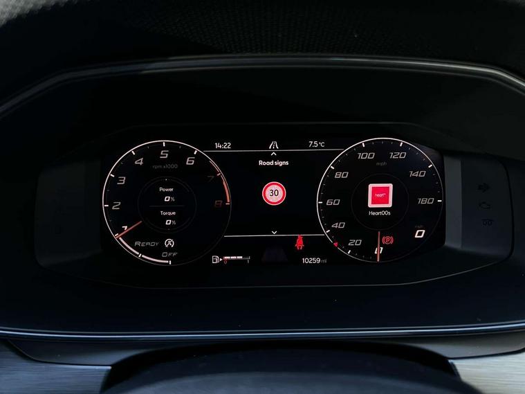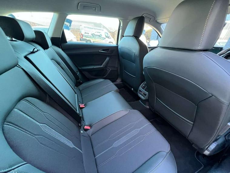 Chrome and copper interior detailing, Media system plus with navigation pack - Leon Cupra, Safety and driving pack (M) - Cupra leon, 18" Machined sport black and silver alloy wheels with 92Y tyres, Anti theft alarm system with interior monitoring in cab, backup horn and towing protection, KESSY Advanced - Keyless start, keyless entry, Locking wheel bolts, 7 speakers, Auxiliary input socket, 3 point seatbelts on all rear seats, ABS, Brake control system - ESC and brake booster, Child proof door locks, Cupra black brake calipers, Driver and front passenger airbags with front passenger airbag de-activation, front side and curtain airbags, Electronic parking brake, Extended safety system - seat belt tensioner, window closure and hazard lights, Hill hold control, Rear disc brakes, Seat belt reminder for front and rear seats, Tiredness recognition system, Tyre pressure monitoring system, Auto dimming rear view mirror, Body colour door handles, Body coloured bumpers, Cupra sports bumpers, Dark tinted rear windows, Electric front/rear windows, Electrically adjustable, heated and folding door mirrors, LED front fog lamps with cornering function, LED headlights with dynamic turn signals, tail lights, rear fog lights with rear coast to coast lighting, Rain sensing wipers, Rear diffuser with twin exhaust pipe on each side, Rear side wing doors, Rear wash/wipe, Separate daytime running light with automatic headlight control and coming home feature, Third brake light, 12v power supply in centre console, 12v socket in loadspace, 3 seat bench in 2nd row, 5 headrests, 60/40 split rear bench seat with armrest, Ambient lighting with glovebox, footwell and single monocolour, Cupra Leather flat bottomed, perforated steering wheel and gearshift paddles, Driver/passenger manual seat height adjustment, Front and rear reading lights X 4, Front centre armrest, Front seats manual lumbar adjustment, Grey headlining, Height/reach adjust steering wheel, Illuminated interior front door sills, ISOFIX points in outer rear seats with top tether anchorage points, Jack and tool kit, PVC/Cloth upholstery with copper stitching, Single front passenger seat, Sliding boot cover, Sports seats, Storage pockets on rear of front seats, Sunvisors with illuminated mirror, Three zone climate control, CUPRA drive profile selection with 4 modes (Comfort/Cupra/Sport/Individual), throttle response and gearshift mode, Digital cockpit, E-call, Electro mechanical speed sensitive power steering, Four x USB Type C ports, Front assist with forward collision warning braking reaction to vehicles, pedestrians and cyclists, Full link smartphone integration with Mirror Link, wireless Apple CarPlay and wired Google Android Auto, Lane assist, Lockable tailgate, Park assist (inc front/rear parking sensors), Rear view camera, RPM, trip computer, outside temp gauge, instrument light brightness, low fuel warning light, lights on reminder, gearshift indicator, Service interval indicator, Start/stop system with regenerative braking, Wireless phone charger, Sports suspension,