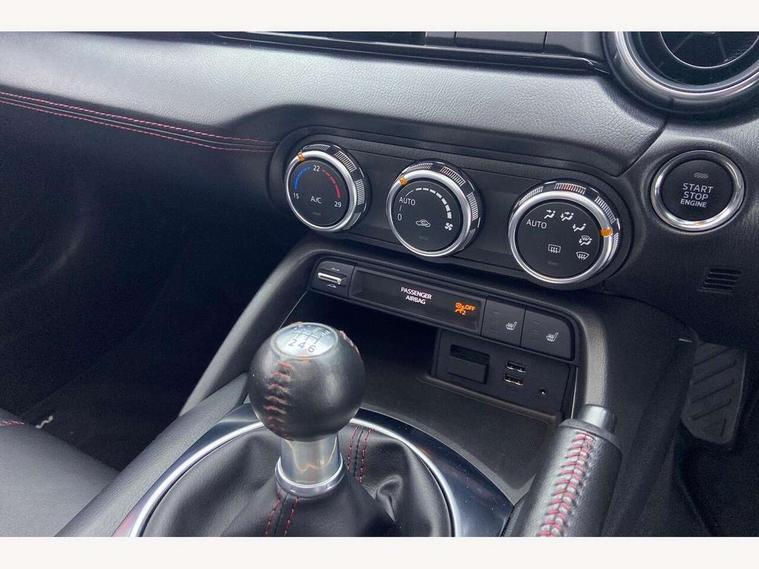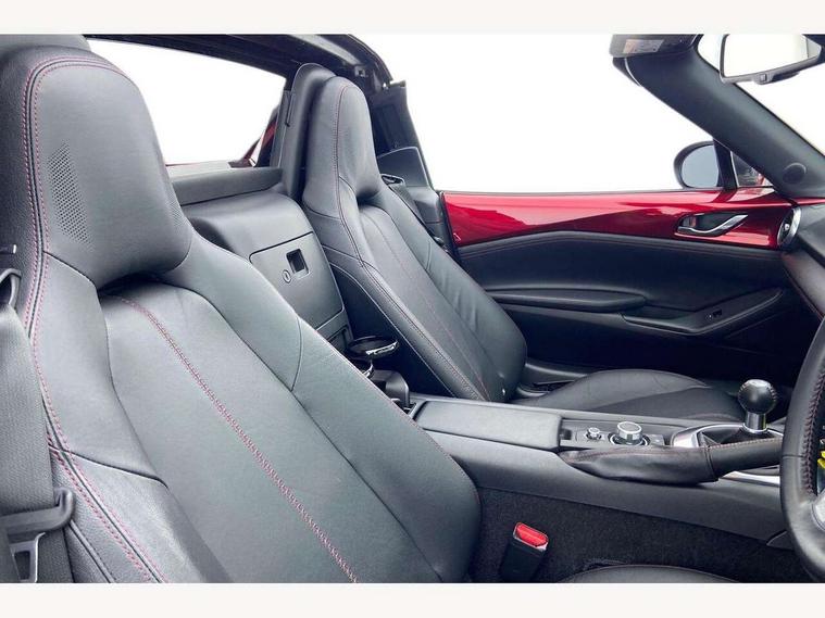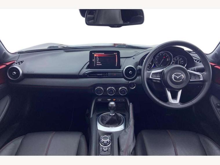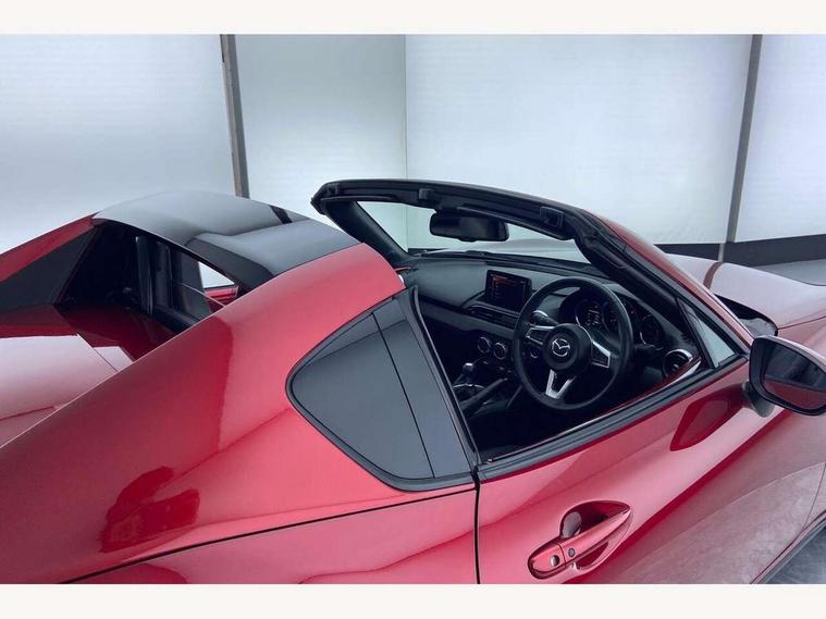 7" touchscreen with multimedia commander, Aha and stitcher app, Analogue speedometer, Cruise control + speed limiter, Driver alert system, Electronic odometer, Engine start/stop button, Hands free phone preparation, Lane departure warning system, PAS, Rear parking sensor, Remote boot release, Satellite navigation system, Tachometer, Traffic sign recognition, Trip computer, Water temperature gauge, I-ELOOP, i-stop, 2 USB/aux input socket, Premium Bose sound system with 9 speakers with 2 in each front headrest, AM/FM/DAB radio and single CD/MP3, Steering wheel audio and Bluetooth controls, Adaptive front lighting system, Auto dimming rear view mirror, Automatic headlamp levelling, Body colour bumpers, Body coloured electric/heated door mirrors, Coming/leaving home lighting function, Dual exhaust pipes, Dusk sensitive headlamps, Electric front windows/one touch facility, Electrically operated body colour retractable hard top with heated rear glass window, High mounted rear brake light with Black coloured cover, LED daytime running lights, LED Headlights, Piano Black fashion bars, Rain sensing front wipers, 12V socket, Body coloured inner door trims, Centre console storage box, Chrome Air conditioning dials, Climate control air conditioning, Coin Box, Cupholders, Driver/ passenger seat manual slide, recline and tilt adjustment, Driver/passenger sunvisors with ticket holders + vanity mirrors, Front centre armrest, Front head restraints, Gear shift indicator, Heated front seats, in 3 heat levels, ISOFIX front passenger seat child seat compliance, Leather gear knob, Leather handbrake lever, Leather steering wheel, Lockable rear storage box, Sports seats, Tilt/telescopic steering column, Windblocker, 3 point ELR front seatbelts with pretensioners, ABS+Electronic Brake force Distribution, Deployable Hood System (DHS), DSTC-Dynamic Stability and Traction Control, Dual front airbags, Fasten seatbelt reminder, Hill hold assist, Manual passenger airbag deactivation function, Passenger airbag deactivate switch, Rear smart city brake support, Side airbags, Smart City Brake Support - SCBS, Tyre pressure monitor, Deadlock, Remote central door locking, Smart keyless entry, Thatcham category 1 alarm + immobiliser, Black vinyl leather dashboard panel, Chrome air vent surrounds, Chrome meter rings, 16" Bright finish alloy wheels, Tyre puncture repair kit,