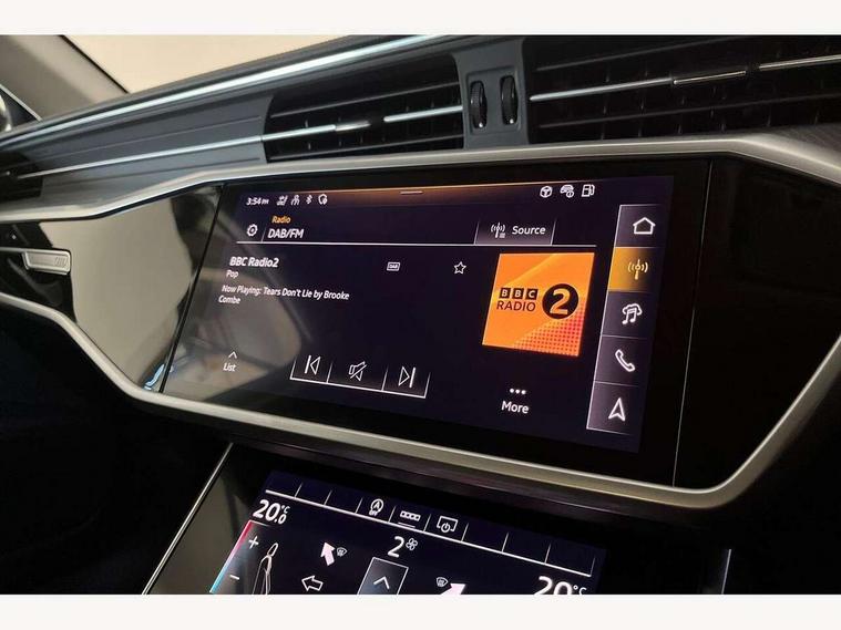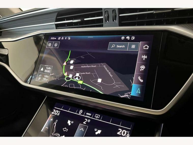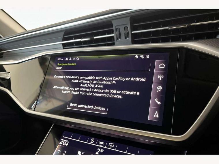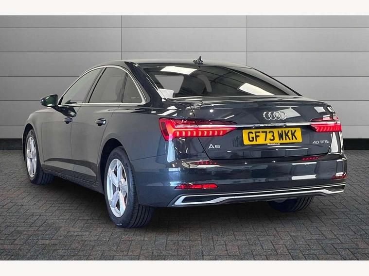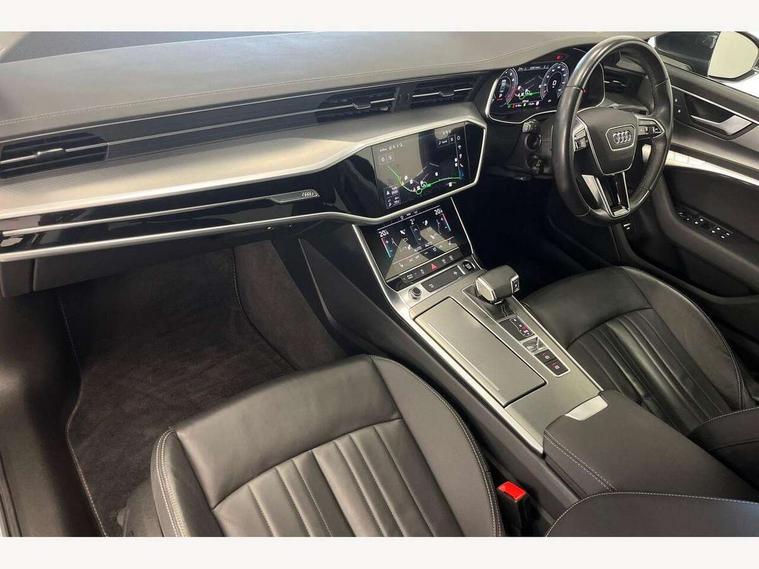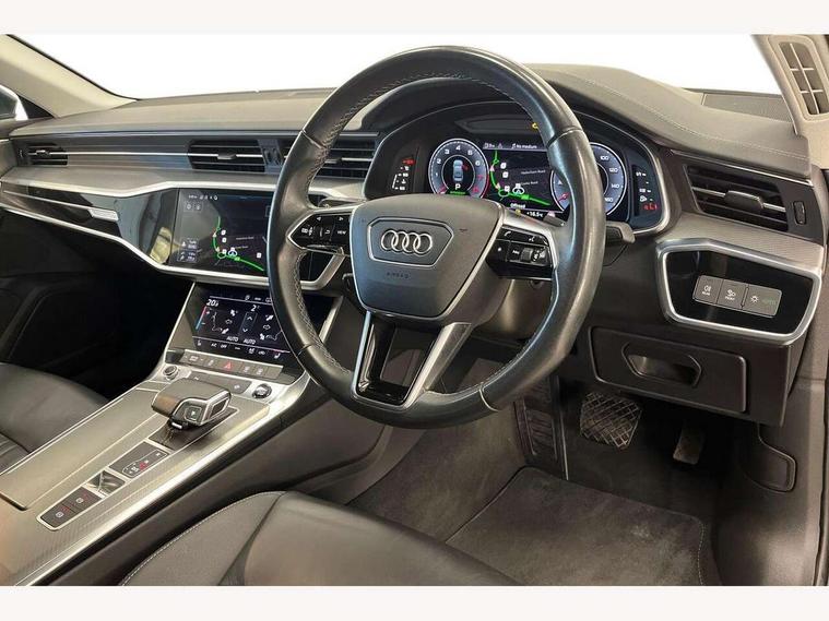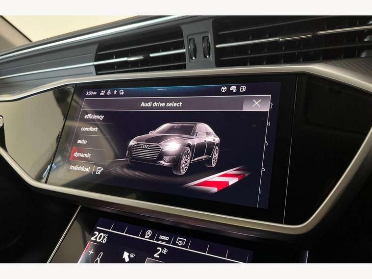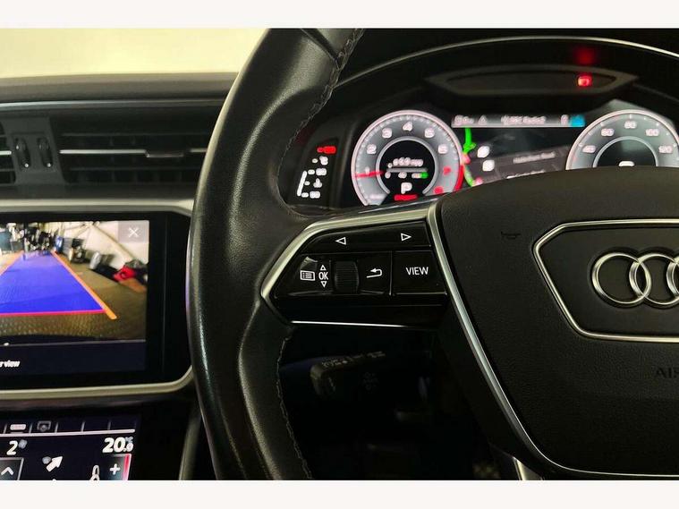 Audi connect safety and service (e-call), Audi connect with Amazon Alexa Integration, Audi drive select, Audi parking system plus - acoustic and visual park assist system for front and rear, Audi virtual cockpit, Automatic start/stop system with coasting functionality, Bluetooth interface, Camera based traffic sign recognition, Cruise control + speed limiter, Electric boot lid release, Lane departure warning system, MMI navigation plus with 10.1" and 8.6" touch screens, Progressive steering, Rear view camera, Service interval indicator, Smartphone interface includes wireless Apple carplay/Android Auto, Voice control system, Standard suspension, Audi front music interface, Audi sound system, Auxiliary input socket, DAB Digital radio, USB connection, Body coloured door mirrors, Daytime running lights, Electric front/rear windows, Electrically adjustable heated and folding + automatically dimming exterior mirrors with memory function, Frameless auto dimming interior rear view mirror, Front intermittent wipers, Heat insulating darkened glass in side and rear windows, Heat insulating glass in windshield, LED rear lights with dynamic indicators, LED third brake light, Matrix LED headlights, Matt black rear diffuser with diffuser strip and tailpipes in chrome, Matt black side air intake grille with inlay in matt aluminium, Privacy glass, Radiator grille in anthracite black matt, single frame in chrome and horizontal struts in matt aluminium silver, Rain and light sensors, Rear boot, Rear side wing doors, 2 zone deluxe electronic climate control, 3 spoke high multi-function leather steering wheel with shift paddles, 40/20/40 split folding 3 rear seat bench in 3 parts with rear centre armrest, Audi phone box light, Door sill trims with aluminium inlay, Electrically adjustable front seats including seat height, fore/aft position, backrest angle and 4-way lumbar with memory for driver's seat, Front and rear floor mats, Front centre armrest, Front head restraints, Heated front seats, Height/reach adjust steering wheel, Illuminated sun visors with vanity mirrors, Leather gear knob, Lunar silver cloth headlining, Rear headrests, Single front passenger seat, Tool kit and car jack, Twin leather upholstery, LED Interior Ambient Lighting Pack - A6, Non smoking pack - A6, 3 point seatbelts on all seats, Airbags - Front side, front and rear including head, Audi pre-sense front, EBD - Electronic brakeforce distribution, Electromechanical parking brake, Electronic Stability Control (ESC) including ABS, ASR and EDL, Extended pedestrian protection measures, ISOFIX child seat mounting for front passenger seat and ISOFIX child seat mounting with Top Tether for outer rear seats, Manual child proof rear door locks, Seatbelt monitoring, Tyre pressure warning light, Warning triangle and first aid kit, Anti theft alarm with tow away protection, Anti-theft wheel bolts and wheel loosening detection, Immobiliser, Keyless Go, Remote central locking, Aluminium fragment inlay, 18" 5 arm design cast aluminium alloy wheels,