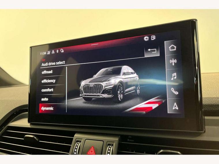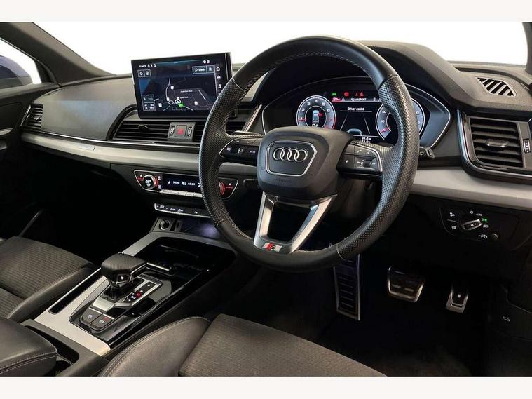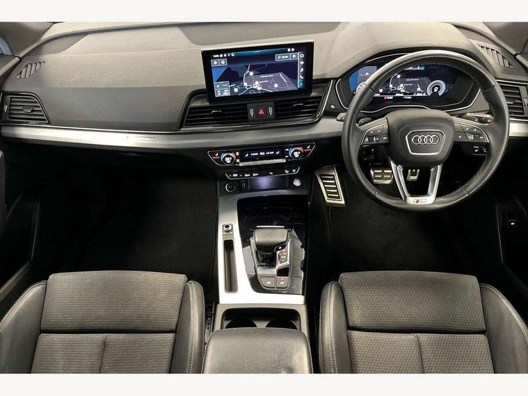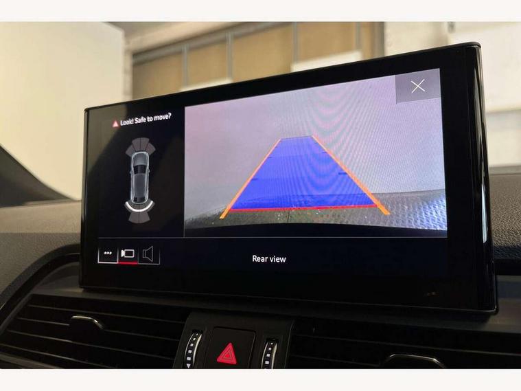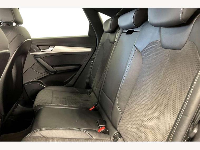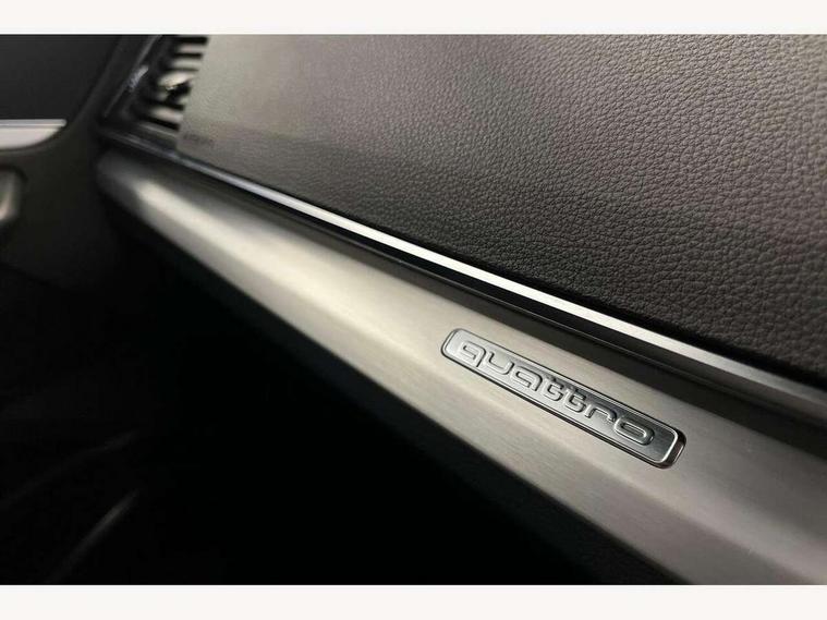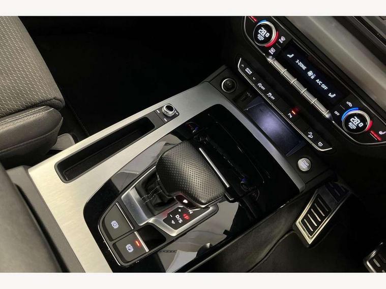Audi connect safety and service (e-call), Audi connect with Amazon Alexa Integration, Audi drive select, Audi virtual cockpit plus with 12.3" screen and three different layout designs, Audi wireless smartphone interface, Automatic start-stop system with coasting functionality and efficiency programme, Bluetooth interface, Electro - mechanical power assisted steering, MMI navigation plus with 10.1" touch screen, Power tailgate, Reversing camera, Service interval indicator, Voice control system with Audi hotword activation "Hey Audi", Quattro on demand, S line sports suspension, 2 x USB charging port with aux input socket, DAB Digital radio, Acoustic windscreen, Aluminium roof rails, Audi matrix LED headlights with dynamic front and rear indicators, Auto dimming door mirrors, Auto dimming rear view mirror, Automatic headlights and windscreen wipers, Body colour door mirrors, Body colour rear diffuser with matt aluminium silver surrounds, Body colour underbody protection, Chrome plated exhaust trims, Daytime running lights, Door sills in Selenite silver, Electric adjustable/heated/folding door mirrors, Front air inlet surrounds in aluminium, Front and rear electric windows, Front radiator grille in honeycomb design, Headlight washers, High level LED brake light, Lower bumpers painted in contrast Manhattan grey, Rear chrome trim strip below lights, Rear privacy glass and rear side windows, Rear side wing doors, Rear wiper, Roof bars, S Line badges on the front wings, S Line front and rear bumpers, S Line rear spoiler, S Line side skirts, 3 rear headrests, 40:20:40 split folding 3 rear bench seat in 2nd row with rear centre armrest, Black cloth headlining, Comfort front centre armrest, Contrast stitching on seats, steering wheel and gear lever gaiter, Deluxe 3 zone electronic climate control, Front head restraints, Front/rear floor mats, Gear lever in black leather, Heated front seats, Height/reach adjustable steering column, Illuminated door sill trims with S logo, ISOFIX child seat mounting and top tether, Manual seat adjustment with 4-way electric lumbar support, Removable luggage compartment floor, Single front passenger seat, Stainless steel pedals, Sunvisors with vanity mirrors, Trunk roller cover, High gloss pack - Q5, LED interior light pack - Q5, 3 point seatbelts on all seats, 6 airbags - Driver, front passenger, curtain and side airbags, Electrically operated child locks on rear doors, Electromechanical parking brake, Electronic stabilisation control including ABS, ASR and EDL, Front passenger airbag deactivation, Hill descent control, Hill hold assist, Multi collision brake assist, Pop-up bonnet for pedestrian protection, Pre sense city, Seat belt force limiter, Seatbelt monitoring, Tyre pressure warning, Warning triangle and first aid kit, Anti theft alarm, Anti-theft wheel bolts, Keyless Go access/ignition system, Remote central locking, Matt brushed aluminium inlays,
