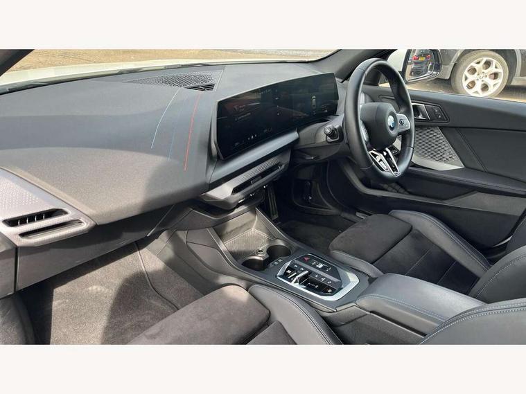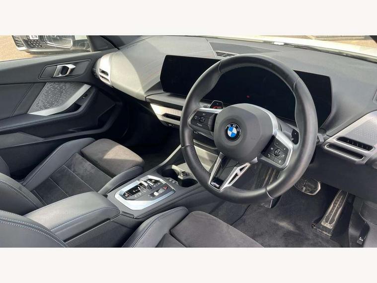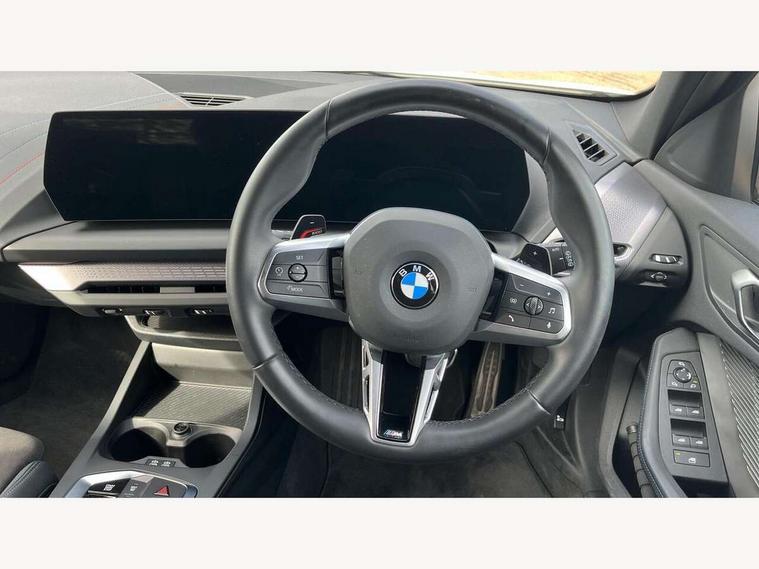Active guard plus, Attentiveness assist, Bluetooth / WiFi interface for wireless connection of mobile terminal devices and audio streaming, BMW ConnectedDrive online services, BMW Live cockpit plus, BMW Teleservices, Check Control warning system for monitoring of lights and door/luggage compartment open warning, Cruise control with speed limiter, Eco pro mode, Electric power steering with Servotronic steering optimised at all speed ranges, Front and rear parking sensors, Front axle single joint with specific axle kinematics to minimise drive influences on steering + provide increased rigidity agile driving behaviour, Integrated owners handbook, Lane departure warning system, Oil sensor for level and grade, On board computer, Optimum shift indicator, Park assist including reversing assistant, lateral parking aid and reversing assist camera, Personal Profile, Pull away assistant, Rigidly mounted rear subframe - Multi link construction with separate spring / damper configuration and excellent driving characteristics, Speed limit Info including no-overtaking indicator, Speedometer, 49 litre fuel tank, Aluminium lightweight construction, Anti roll bar front and rear, Balancer shaft, Double VANOS twin scroll turbocharging system, Drive Performance Control, Electronic differential lock, High precision injection, M Adaptive suspension, Petrol Particulate Filter, Twin tube gas filled shock absorbers with degressive characteristic curve, VALVETRONIC engine management, DAB Digital radio, Auto dimming rear view mirror, Automatic headlight beam throw control, Automatic windscreen wipers and automatic headlight, Body colour door handles, Body colour mirror caps, Body colour roof trims, Chrome 'M' logo side designation, Chrome exhaust twin tailpipes round 90mm in left, Chrome kidney grille frame with Satin Aluminium struts, Direction indicator side lights in exterior mirrors, Electrically adjustable exterior mirror with mirror adjustment switch on drivers armrest and aspheric on driver side, convex on passenger side, Fading support, Folding side mirrors with auto dimming/folding wing mirrors with auto dimming, Follow me home headlights, Front and rear bumper system with replaceable deformation elements, Front and rear electric windows with open and close fingertip control, anti trap facility and comfort closing, Front door sill finishers in black plastic with M designation in metallic look, Green tinted heat protection glazing, High gloss shadowline window frame, Recess cover mirror frames and B/C pillar embelisher trim, High level third brake light, Integrated front windscreen with washer jets, LED daytime running lights, LED eyebrow turn indicators, LED front fog lights, LED Headlights, Lightweight engineering, Matt black air guide grilles, Matt black wheel arch trim, Nearside reverse light in rear light cluster, Preparation for high beam assistant, Rear fog lights, Rear side wing doors, Rear window wiper, Shark fin antenna, Trailer stabilisation logic, Visible VIN plate, Welcome lighting, 12V power socket in front centre console with blanking plug, 3 rear seat head restraints, 3 seat bench in 2nd row, 3 spoke sports leather steering wheel with black leather and stitching, pearl chrome decorative finish, specific M Badge, Anthracite headlining, Black boot net with lashing eyes, Cargo function on 2nd seat row, Child seat ISOFIX attachment for two outer rear seats and front passenger seat with anchorage points, Conditioned based service, Driver and front passenger backrest net on rear, Driver and front passenger seat heating, Driver side folding compartment in instrument panel, Folding rear clothes hook, Four grab handles integrated in roof lining, Front and rear door pockets with bottle holders, Front and rear side armrest integrated into door trim, Front armrest, Glove compartment, Height adjustable front head restraints, Luggage compartment for bag hooks on left and right, foldable luggage compartment liner and four lashing eyelets, Manual adjust steering wheel, Multi-function controls for steering wheel, Rear seat backrest with manual 60:40 split folding with 3 top tether clips integrated on rear of seat panels, Single front passenger seat, Storage compartment in centre console, Storage compartment in luggage compartment, Stowage of the parcel shelf in luggage compartment trim, Sun visors with vanity mirrors and insert tab, Two front centre console cupholders, Type C two USB ports in rear centre console, Velour floor mats, Connected pack professional - 1 Series, Interior lights pack - 1 Series, M Sport exterior styling aerodynamics pack - 1 Series, 2 tone horn, 3 point seatbelts on all seats, front pyrotechnic belt tensioners, stopper and belt force limiters, rear coded belt buckles, Airbags - Front driver/passenger, front and rear curtain head protection, front side, manual deactivation of front passenger airbag, Anti lock braking system (ABS) with brake assist, BMW emergency call, Brake drying, Braking readiness, Child proof locking system in rear door, Comfort modes, Cornering brake control, Crash sensor activating of airbags, Unlocking doors, hazard warning lights, interior light, safety battery terminal, Driver and front passenger seat belt security check, Dynamic stability control + (DSC+), Dynamic Traction Control - DTC, Electrically operated hand brake including automatic hold function, Front and rear disc brakes, Seatbelt warning, Side impact protection, Tyre pressure monitoring system, Warning triangle and first aid kit, Central locking switch for all doors, fuel filler cap and luggage compartment, Deadlocking function system to all doors, Drive away locking system on all doors and luggage compartment with de-activated in iDrive settings, Locking wheel bolts, Remote control with integrated key with High-gloss Black inlay and M designation and 1 button for open/ close lock, window, open luggage compartment, Start/stop button illuminated in centre console with keyless engine start and auto 