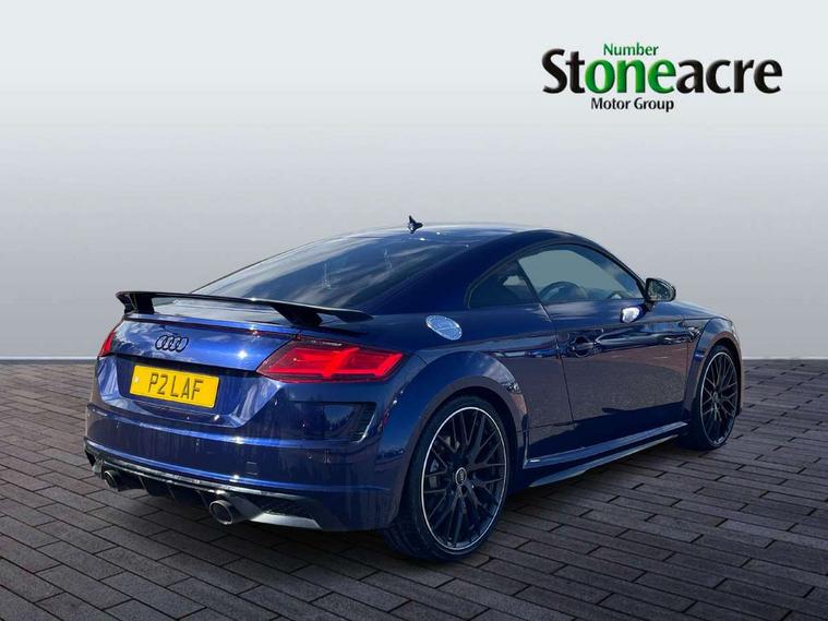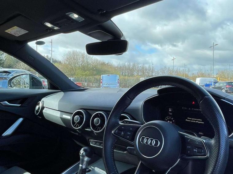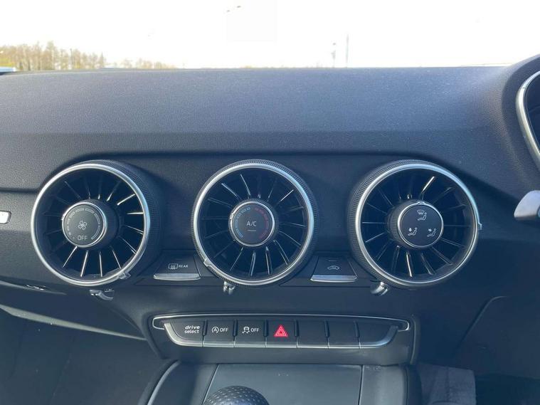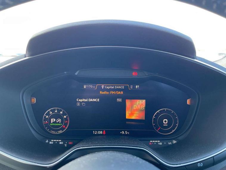 Audi drive select with 4 Pre configured modes, Audi smartphone interface, Audi virtual cockpit - 12.3" high-resolution LCD display with fully customisable instrument cluster, Cruise control + speed limiter, Emergency call service, MMI touch panel, Mobile phone preparation with bluetooth interface, Progressive power assisted steering, Service interval indicator, Start/Stop system with energy recuperation, TP memo, Sports suspension, AM/FM radio, Bluetooth audio streaming, DAB Digital radio, MMI Radio with CD player and SD/XC card slot, Auto dimming rear view mirror, Auto headlight range control, Black chrome tailpipe, Dark privacy glass from B-pillar backwards, Electric folding door mirrors, Electric front windows, Electrically adjustable and heated door mirrors with integrated LED side indicators, Front fog lights, Green tinted heat insulating glass, LED 3rd brake light, LED daytime running lights, LED headlights with LED rear lights + dynamic rear indicators, Light and rain sensors, Rear boot, Sunband for windscreen, 12V socket, 2 rear seats, 3 spoke flat bottomed high multi-function leather sport steering wheel with gearshift paddles, 4 way electric lumbar support for driver and front passenger, Black headlining, Contrasting silver stitching in steering wheel, Door sill trims, Extended aluminium look with stainless steel pedals, Front centre armrest, Front passenger seat, Front super sports seats, Heated front seats, Height/reach adjust steering wheel, Integrated head restraints, ISOFIX child seat mounting for front passenger seat with airbag deactivation, Manual adjustment of seat height, fore/aft position, seat angle, seat depth and backrest angle, Perforated leather gearknob in black, Rear head restraints, Rear top tether child seat ISOFIX attachment, Split folding rear seat, Black styling pack - TT, Non smoking pack - TT/TT RS, 3 point front seat belts, ABS, ASR traction control, Curtain airbags, Driver and front passenger airbag with front passenger airbag deactivation, EDL traction control, Electromechanical parking brake, ESP, First aid kit, Front side airbags, Head airbags, Hill hold assist, Seatbelt warning, Tyre pressure loss indicator, Warning triangle, Anti theft alarm, Anti theft wheel bolts, Immobiliser, Keyless Go, Remote central locking, Matt brushed aluminium inlays, Tool kit, Tyre repair kit,