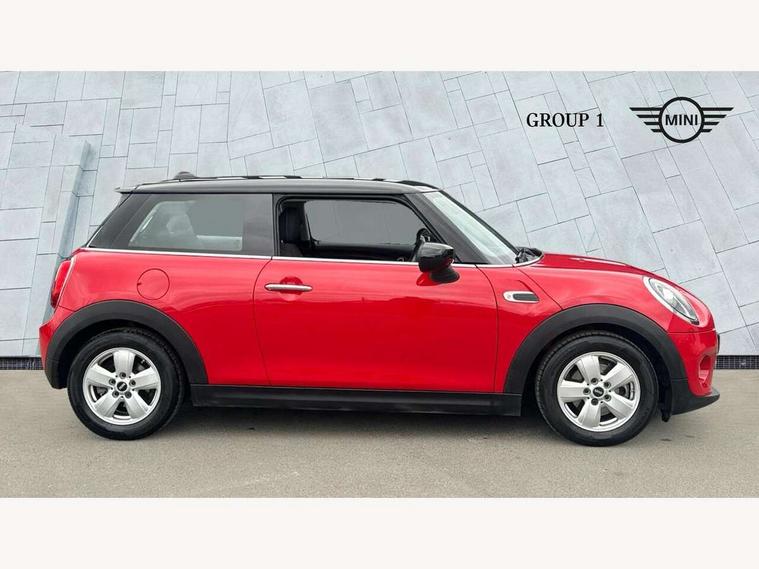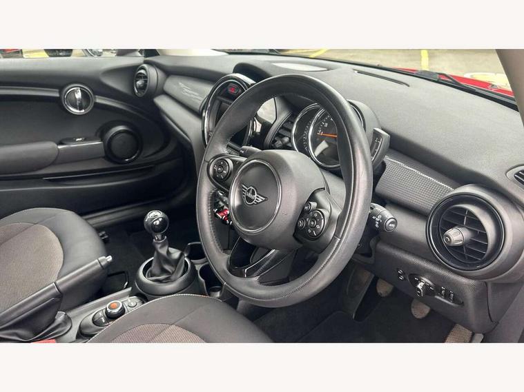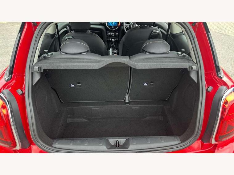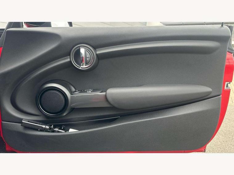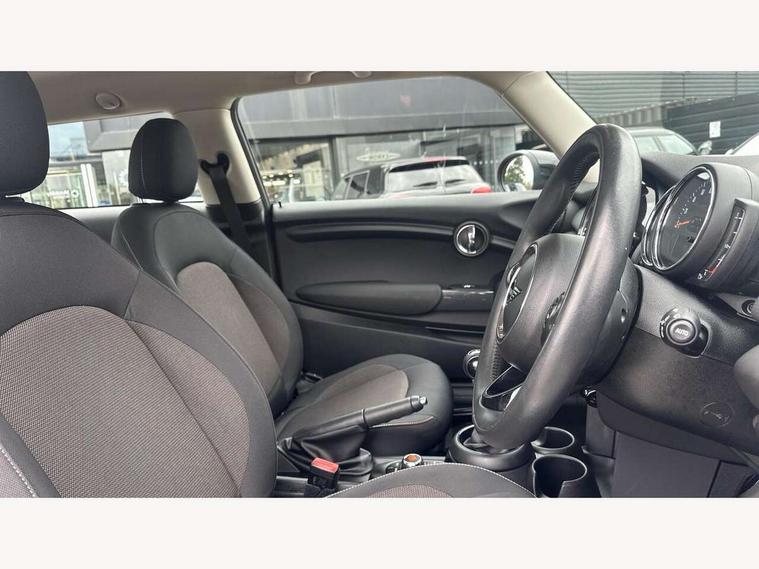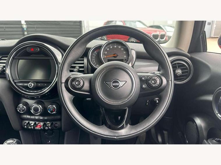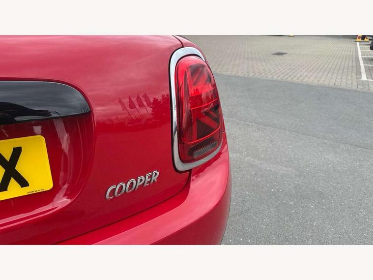 Automatic start/stop function with brake energy recuperation, Compatible mobile phone bluetooth with audio streaming, Electro-mechanical speed dependant steering assistance, Instrument cluster, Mini E-call, MINI TeleServices, On board computer, Service interval indicator, Double Vanos system, Fully variable valve control, High precision injection, 6.5" touchscreen with LED ring, FM tuner and DAB digital radio, Automatic headlight activation switch, Body colour fuel filler cap, Chrome border high gloss black slats radiator grille, Dynamic brake lights, Electric front+rear windows, Heated rear window, Heated windscreen washer jets, LED headlight with closed ring and daytime driving lights, Left exhaust tailpipe with chrome finisher, Metal door sill strips with MINI imprint, Model logo Cooper on right of tailgate, Rain sensor window wipers, Rear fog lights, Rear LED lights with union jack design, Rear window wiper, Side scuttle panel with integrated indicator, Sun/heat protection glass, White indicator lenses, 12V Accessory socket in centre console, 4 lashing eyes in luggage compartment, 60/40 split folding rear seat, Chrome interior highlights, Colour line - Carbon black, Cupholders, Front and rear head restraints, Front and rear isofix with front passenger airbag deactivation, Glove compartment, Height and length steering column adjustment, Interior lighting with 12 basic colours selectable via toggle switch in roof, Leather gearshift lever and handbrake gaiters, LED reading lights, vanity mirror lights, front foot well light and spotlight on front seats, Manual air conditioning, Mechanical seat adjustment, driver seat height adjust, forward/back and front seats backrest, Mini logo projection on floor from drivers exterior mirror, Multifunction steering wheel, Satellite grey headlining, Storage compartments in doors, Sunvisors with vanity mirrors, 3 point seatbelts on all four seats, 6 Airbags - front, side, head and seat belt tensioners, Anti-lock braking system (ABS), DSC - Dynamic Stability Control, Front and rear disc brakes, Hill start assist, Single tone fanfare horn, Tyre pressure monitoring system, Alarm system with tilt sensor, monitoring doors, bonnet interior and tailgate, Electronic vehicle immobiliser, Start/stop toggle with keyless go, Tool kit,