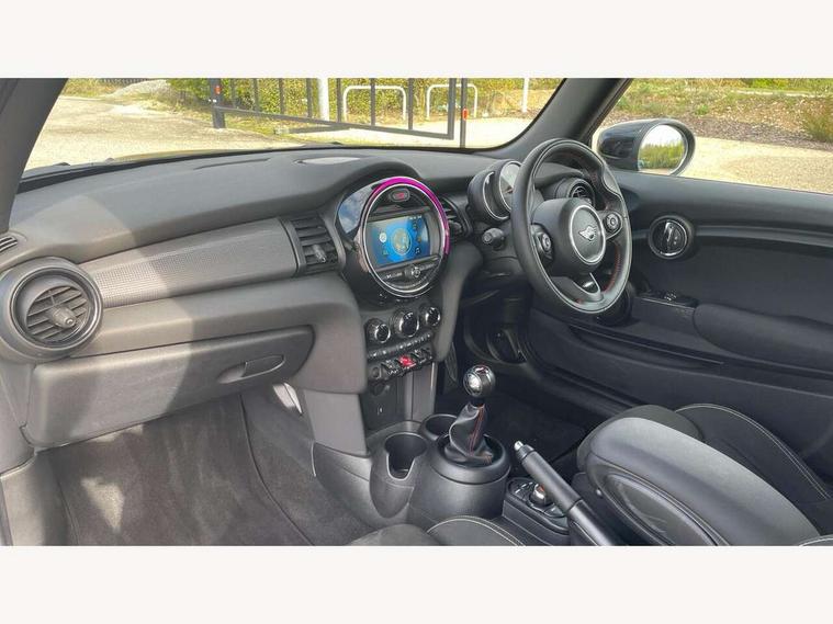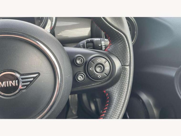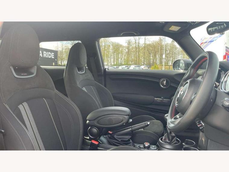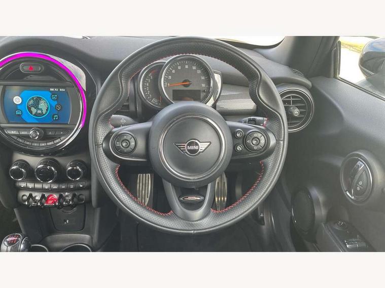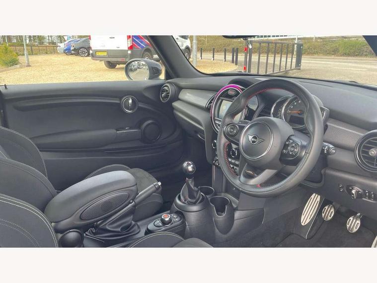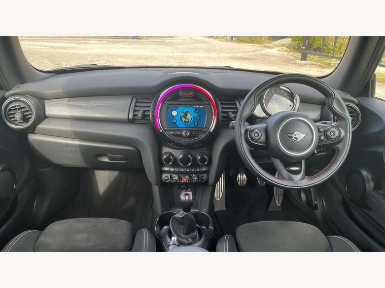 Automatic start/stop function with brake energy recuperation, Compatible mobile phone bluetooth with audio streaming, Electro-mechanical speed dependant steering assistance, Instrument cluster, Mini E-call, MINI TeleServices, On board computer, Service interval indicator, Double Vanos system, Fully variable valve control, High precision injection, Performance Control, 6.5" touchscreen with LED ring, FM tuner and DAB digital radio, Automatic headlight activation switch, Body colour fuel filler cap, Chrome border high gloss black slats radiator grille, Dynamic brake lights, Electric front+rear windows, Heated rear window, Heated windscreen washer jets, John Cooper Works - aerodynamic kit (front and rear apron, spoiler), front and rear sport bumpers and part-painted side sills with door sill finishers, John Cooper Works rear spoiler, LED headlight with closed ring and daytime driving lights, Left exhaust tailpipe with chrome finisher, Metal door sill strips with MINI imprint, Model logo Cooper on right of tailgate, Rain sensor window wipers, Rear fog lights, Rear LED lights with union jack design, Rear window wiper, Side scuttle panel with integrated indicator, Sun/heat protection glass, White indicator lenses, 12V Accessory socket in centre console, 4 lashing eyes in luggage compartment, 60/40 split folding rear seat, Anthracite headlining, Chrome interior highlights, Cupholders, Front and rear head restraints, Front and rear isofix with front passenger airbag deactivation, Glove compartment, Height and length steering column adjustment, Interior lighting with 12 basic colours selectable via toggle switch in roof, John Cooper Works leather steering wheel with contrasting stitching in Chilli Red with John Cooper Works logo, John Cooper Works Logo in seat, Leather gearshift lever and handbrake gaiters, LED reading lights, vanity mirror lights, front foot well light and spotlight on front seats, Manual air conditioning, Mechanical seat adjustment, driver seat height adjust, forward/back and front seats backrest, Mini logo projection on floor from drivers exterior mirror, Multifunction steering wheel, Storage compartments in doors, Sunvisors with vanity mirrors, 3 point seatbelts on all four seats, 6 Airbags - front, side, head and seat belt tensioners, Anti-lock braking system (ABS), DSC - Dynamic Stability Control, Front and rear disc brakes, Hill start assist, Single tone fanfare horn, Tyre pressure monitoring system, Alarm system with tilt sensor, monitoring doors, bonnet interior and tailgate, Electronic vehicle immobiliser, Start/stop toggle with keyless go, Tool kit,