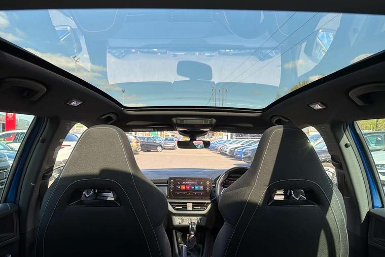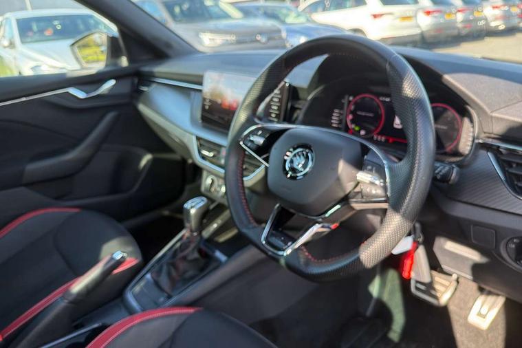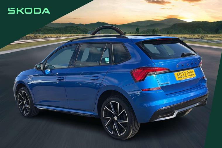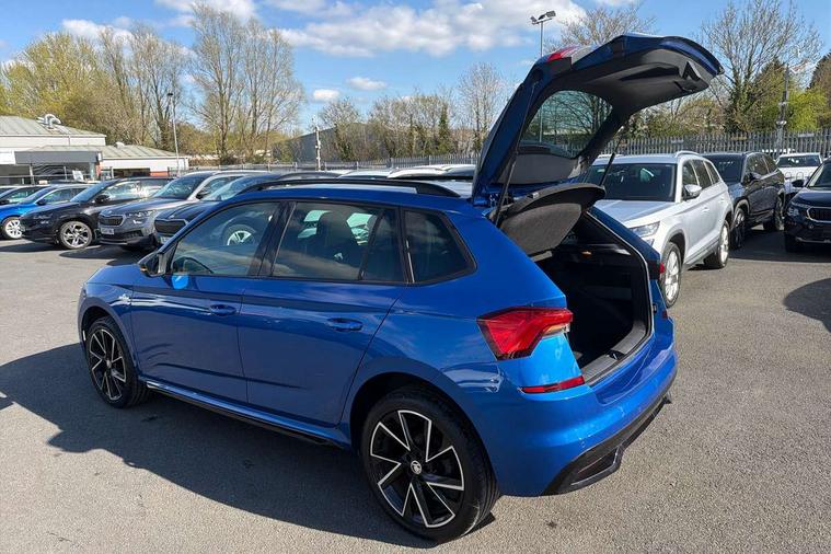 Amundsen satellite navigation with 9.2" touchscreen display, voice control, virtual cockpit and web radio, Bluetooth system, E-call, Front assist system, Gesture control, PAS, Service indicator, Speed limiter, Virtual cockpit with 10.25" display, Wireless SmartLink for apple car play, android auto and mirrorlink, 8 Speakers, Auxiliary input socket, DAB Digital radio, Black door mirrors, Black radiator grille, Black rear diffuser, Body colour bumpers, Body colour door handles, Body colour roof spoiler, Boot lettering in black, Chrome grille surround, Dimming rear view mirror with black surround, Electrically adjustable and heated door mirrors, Fixed panoramic sunroof with black roof rails, Front and rear electric windows, Front sport bumper, Full LED headlights with adaptive front light system, dynamic indicators, cornering function and fog lights, Headlight range control, Heated rear window, High functionality rear led lights with dynamic indicators, KAMIQ Door sills, Light sensors, Monte carlo plaque, Privacy glass, Rear fog lights, Rear side wing doors, Rear wiper, 12V Accessory socket in centre console, 3 seat bench in 2nd row, Aluminium pedals, Black ceiling for black/beige interior, Chrome inner door handles, Cloth upholstery, Front head restraints, Glove compartment with illumination, Ice scraper, Isofix child seat fittings on outer rear seats, ISOFIX on front passenger seat, Leather gear lever, Manual lumbar support for front seats, Rake/reach adjustable steering wheel, Reading lights, Single front passenger seat, Sports seats, Sun visors with illumination on front passenger, Textile floor mats, Third rear headrest, Top tether for front passenger seat, Umbrella in driver's door, 3x3 point rear seatbelts, Airbags - driver and front passenger, ESP, Front passenger airbag deactivation switch, Front side airbags with curtain airbags, Hill hold control, Manual parking brake, Manual rear child locks, One tone horn, Rear disc brakes, Seatbelt reminder for driver an co-driver, Traction control, Tyre pressure monitor, Anti-theft alarm system with interior monitoring, backup horn, towing protection and remote central locking with SAFE system, Anti-theft wheel bolts, Electronic engine immobilizer, Chrome air vent surrounds, 18" Vega alloy wheels in black,