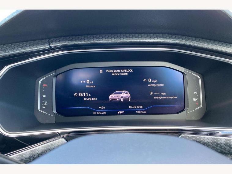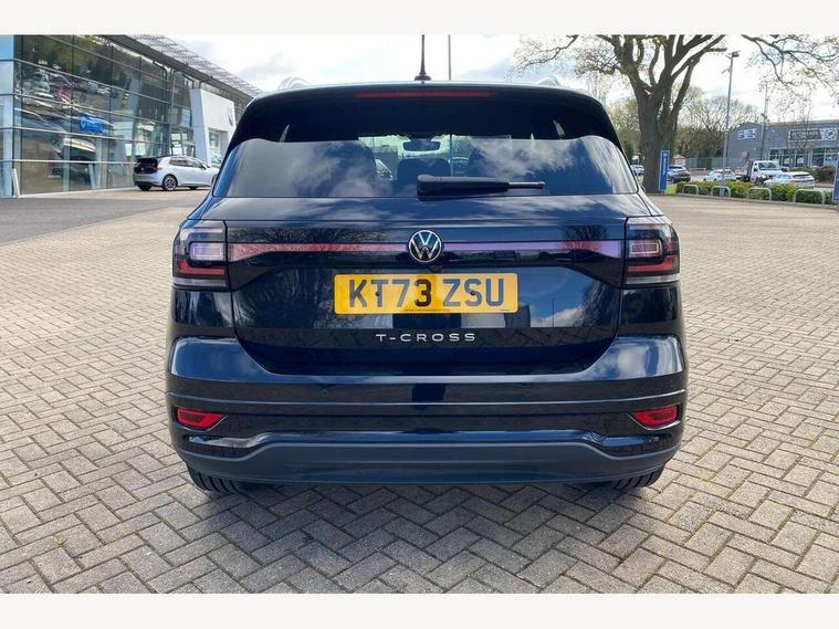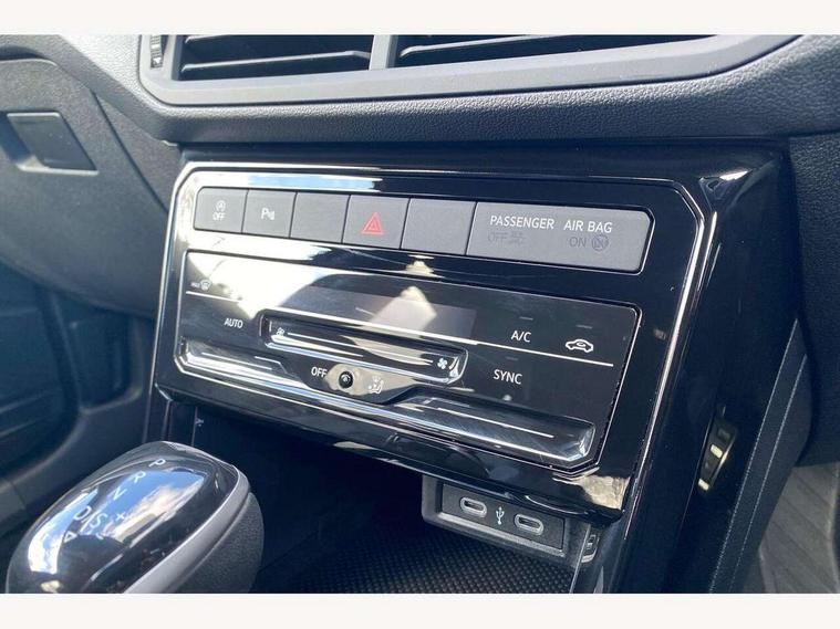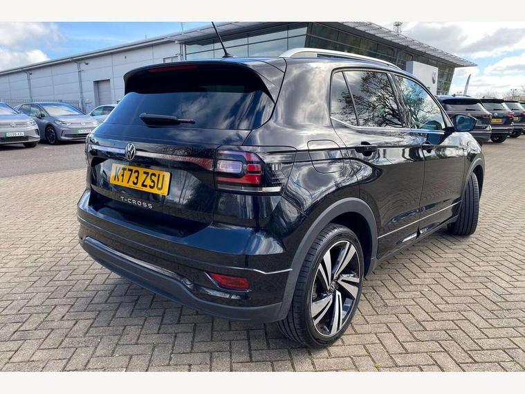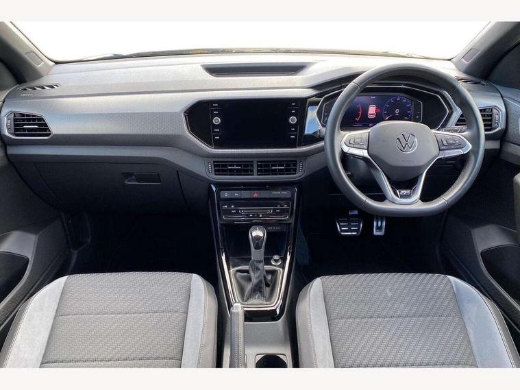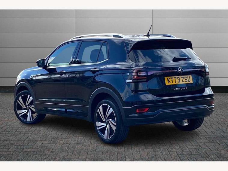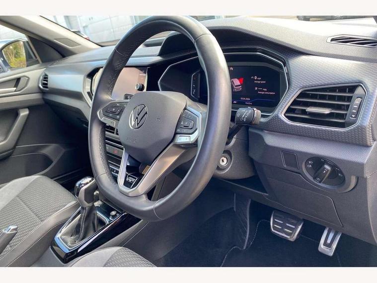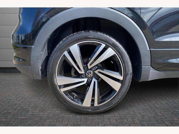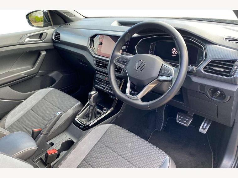 'Lights On' Reminder warning buzzer, 2D/3D map view, Active info display - 10.25" High resolution TFT dash display screen, Adaptive cruise control including front assist, forward collision warning, autonomous emergency braking, speed limiter, Blind spot monitoring, Bluetooth telephone and audio connection for compatible devices, Car information display, Driver alert system, eCall emergency call system, Lane assist, Low washer fluid warning light, Multifunction computer with visual gear change recommendation for fuel consumption, Operating permit alteration, Power assisted speed sensitive steering, Speed limit display, Speedo, rev counter, electronic odometer, trip, service interval display, exterior temperature and fuel gauge, Stop/start system, Tailgate, Warning sound and light for doors and tailgate open, Warning sound and light for front seatbelts unfastened, We connect plus preparation, Wireless Car net app connect with Apple CarPlay, combined functionality of Apple CarPlay/Android Auto and MirrorLink, Battery regeneration during braking, Misfuel prevention device, 2x USB connection with USB charging sockets and in rear centre console, DAB Digital radio receiver, Diversity antenna for FM reception, Multi device interface (MDI) with USB connection, Music playback - MP3, WMA and AAC files, Premium USB cable for Apple or Android smartphone compatibility, Simultaneous pairing of 2 compatible mobile devices, SMS Functionality, Three route options - Fast, Short, Eco, Title and cover art display, Automatic hazard lights activation under emergency braking, Body colour door handles, Body colour door mirrors with integrated indicators, Body colour rear roof spoiler, Body coloured bumpers, Dusk sensor + automatic driving lights, Electrically foldable, adjustable and heated door mirrors with reverse activated kerb view adjustment on passenger's side, Front and rear electric windows, Front fog lights with static cornering function, Galvanised body, Heated rear window, LED third brake light, Lower door sills and door pillars in black, Radiator grille with chrome trim and chrome bezel front fog lamp, Rear fog light on one side, reversing light on both sides, Rear lights incorporating LED technology, Rear side wing doors, Rear tinted glass 65% approx light absorbing from B pillar backwards, Rear window aerial, Rear windscreen washer and wiper with interval delay, Reflectors in all doors, Silver roof rails, Stainless steel door sill protection, Tailgate with integrated roof spoiler, Unique R Line badging, Windscreen wipers/ intermittent wipe + 4 position delay, 12V Accessory socket in centre console, 2 Front and rear reading lights incorporating LED technology, 2 Zone electronic climate control with automatic air recirculation, 3 rear head restraints and 3 rear three point seat belts with ECE label, 3 seat bench in 2nd row, 60/40 split folding rear seat backrest, Ambient lighting and sourround lighting, Black headlining, Branded points of interest, Brushed stainless steel pedals, Carbon flag cloth upholstery, Drawer under drivers seat, Driver and front passenger sunvisor with vanity mirror, Driver's sunvisor with ticket holder, Dust and pollen filter, Front and rear carpet mats with contrast stitching, Front centre armrest with storage compartment, Front footwell illumination, Front seat back storage pockets, Front seat R Line logo with rear seat backrest, Front sports seat with height and lumbar adjustment, Glovebox, Heating and fresh air system with 4 stage blower, Height/reach adjust steering wheel, Instrument lighting white adjustable panel illumination, Interior light with delay, Isofix child seat preparation for 2 rear child seats, Leather trimmed three spoke multifunction steering wheel with contrast stitching and aluminium inserts with R Line logo, Luggage compartment cover, Luggage compartment lighting, Moveable and foldable Rear bench seat, Scuff plates in door apertures, Steering wheel paddle shift, Storage compartment in drivers and front passengers door, R Line styling pack - T-cross, 3-point seat belts in front with electric tensioner + height adjustment, Anti-lock Braking System (ABS) with Hydraulic Brake Assist (HBA), Automatic post collision braking system, Driver and front passenger safety-optimised head restraints, Drivers and Front Passengers airbags with front passengers airbag deactivation switch, ESC with EDL, ASR, EDTC and trailer stabilisation function, Front and rear curtain airbags, Front seat side impact airbags, Hill start assist, Pre crash preventive occupant protection, Proactive passenger protection system in combination with front assist, Rear door child safety locks, Rigid safety cell with front and rear crumple zones, Single torn horn, Tyre pressure loss indicator, Volkswagen roadside assistance, Alarm with interior protection and deactivation via infotainment system, Child security locks in rear doors, Electronic engine immobiliser, Remote tailgate unlocking using key fob, Race decorative inserts in dash and doors, 18" Nevada black alloy wheels, Breakdown kit,