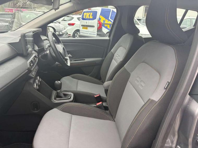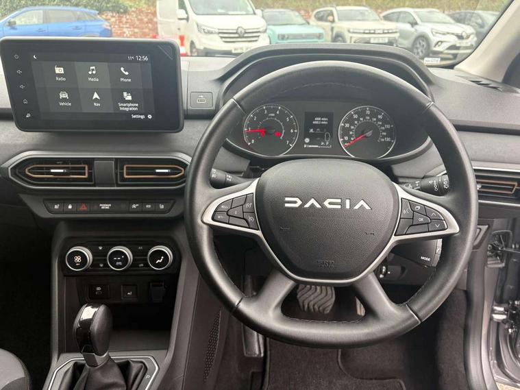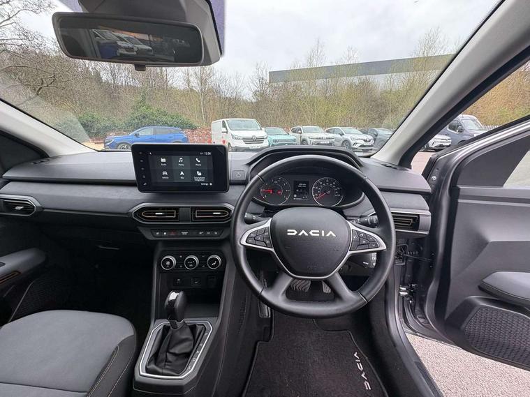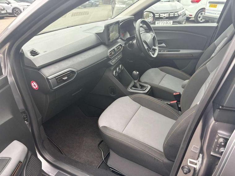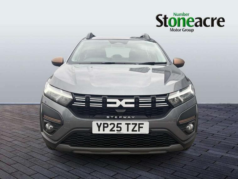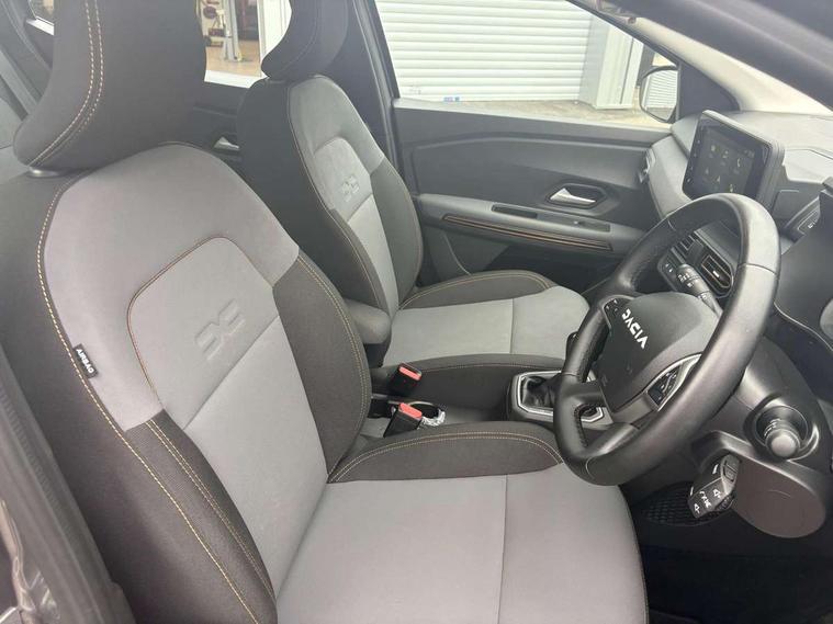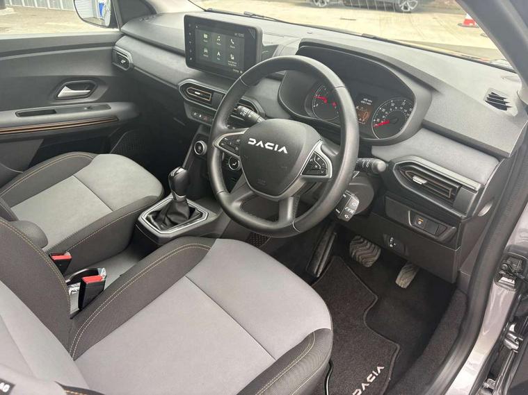 3.5" TFT instrument panel with on-board computer, Blind spot warning, Cruise control with speed limiter, Driver attention warning, eCall emergency call system, Eco mode, Electric power assisted steering, Emergency Stop Signal (ESS), Event data recoder, Extended grip switch, Front parking sensors, Lane departure warning, Lane keep assist, Rear parking sensors, Rescue code, Rev counter, Reversing camera, Stop/start system, Traffic sign recognition with speed alert/Intelligent speed assist (ISA), 8" MediaNav with DAB Radio + Smartphone replication + Bluetooth + 6 Speakers with Apple Carplay and Android Auto, USB connection for data transfer and charging, USB socket, USB-C plug, USB-C plug rear, 3 speed windscreen wipers, Auto lighting, Automatic wipers, Black radiator grille with white inserts stepway inscription, Body colour door handles, Body coloured bumpers, Copper Brown Dacia inscription on tail gate, Copper brown deco part on fog lamp area, Copper brown door mirrors, Copper brown stepway inscription on roof bars, Door sills in topographic pattern, Drivers one touch electric windows, Electrically adjustable and heated door mirrors, Front electric windows, Front fog lights, Heated rear window, High level third brake light, Lateral sticker with topographic pattern, LED automatic daytime running lights, LED Y-shape Dacia signature lighting, Megatith modular roof bars, Rear electric windows, Rear side wing doors, Rear wash/wipe, Shiny black shark antenna, Snorkel sticker with topographic pattern, Tinted windows, Topographic door protection decals and snorkel animation, 1/3 to 2/3 split folding rear seats, 12 volt front socket, 12 volt rear socket, 3 height adjustable rear headrests, 3 seat rear bench, Automatic air conditioning, Copper brown doors deco parts, Driver and passenger vanity mirror with cover, Fixed smartphone holder on dashboard, Fog grey animation on air vents, Fog grey interior door handles, Front and rear rubber mats with topographic pattern, Height adjustable drivers seat with armrest, Height adjustable front headrests, Height/depth adjustable steering wheel, High central armrest with console storage, Isofix points for child seats in both outer rear seats, Micro-cloud grey fabric on dashboard, MicroCloud fabric washable TEP upholstery, Single front passenger seat, Soft feel steering wheel, Steering wheel controls, 3x3 point rear seatbelts, ABS and Emergency brake assist, Advanced emergency braking system, Alcohol imoboliser predisposal, Automatic emergency braking system, Child locks on rear doors, Door open visual and audible warning, Driver airbag, EBD - Electronic brakeforce distribution, Electronic parking brake, ESC (Electronic Stability Control), ESP + Hill Start Assist, Front curtain airbags, Front seatbelt pretensioners, Front side airbags, Height adjustable front seatbelts, Passenger airbag, Seatbelt reminder for driver and front passenger, Side impact protection, Tyre pressure monitor, Automatic central locking, Immobiliser, Keyless entry, Remote central locking, Decopart on instrument panel and door with textile, 16" Mahalia black alloy wheels,