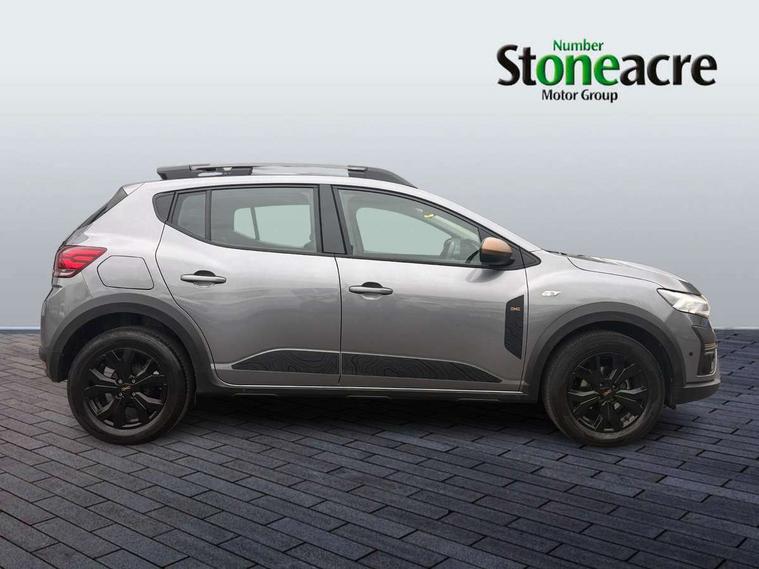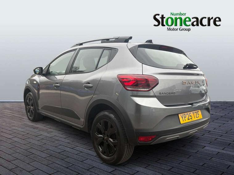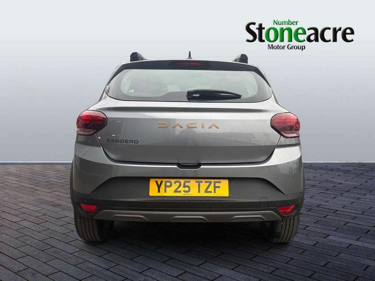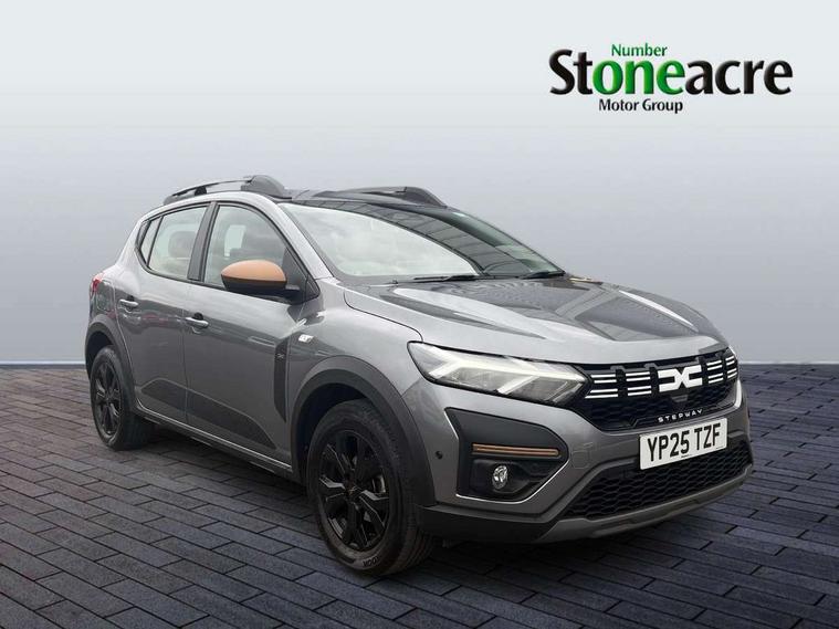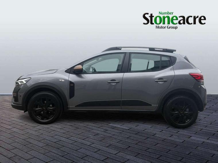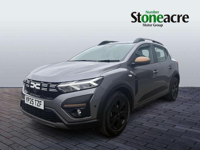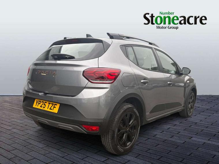 3.5" TFT instrument panel with on-board computer, Blind spot warning, Cruise control with speed limiter, Driver attention warning, eCall emergency call system, Eco mode, Electric power assisted steering, Emergency Stop Signal (ESS), Event data recoder, Extended grip switch, Front parking sensors, Lane departure warning, Lane keep assist, Rear parking sensors, Rescue code, Rev counter, Reversing camera, Stop/start system, Traffic sign recognition with speed alert/Intelligent speed assist (ISA), 8" MediaNav with DAB Radio + Smartphone replication + Bluetooth + 6 Speakers with Apple Carplay and Android Auto, USB connection for data transfer and charging, USB socket, USB-C plug, USB-C plug rear, 3 speed windscreen wipers, Auto lighting, Automatic wipers, Black radiator grille with white inserts stepway inscription, Body colour door handles, Body coloured bumpers, Copper Brown Dacia inscription on tail gate, Copper brown deco part on fog lamp area, Copper brown door mirrors, Copper brown stepway inscription on roof bars, Door sills in topographic pattern, Drivers one touch electric windows, Electrically adjustable and heated door mirrors, Front electric windows, Front fog lights, Heated rear window, High level third brake light, Lateral sticker with topographic pattern, LED automatic daytime running lights, LED Y-shape Dacia signature lighting, Megatith modular roof bars, Rear electric windows, Rear side wing doors, Rear wash/wipe, Shiny black shark antenna, Snorkel sticker with topographic pattern, Tinted windows, Topographic door protection decals and snorkel animation, 1/3 to 2/3 split folding rear seats, 12 volt front socket, 12 volt rear socket, 3 height adjustable rear headrests, 3 seat rear bench, Automatic air conditioning, Copper brown doors deco parts, Driver and passenger vanity mirror with cover, Fixed smartphone holder on dashboard, Fog grey animation on air vents, Fog grey interior door handles, Front and rear rubber mats with topographic pattern, Height adjustable drivers seat with armrest, Height adjustable front headrests, Height/depth adjustable steering wheel, High central armrest with console storage, Isofix points for child seats in both outer rear seats, Micro-cloud grey fabric on dashboard, MicroCloud fabric washable TEP upholstery, Single front passenger seat, Soft feel steering wheel, Steering wheel controls, 3x3 point rear seatbelts, ABS and Emergency brake assist, Advanced emergency braking system, Alcohol imoboliser predisposal, Automatic emergency braking system, Child locks on rear doors, Door open visual and audible warning, Driver airbag, EBD - Electronic brakeforce distribution, Electronic parking brake, ESC (Electronic Stability Control), ESP + Hill Start Assist, Front curtain airbags, Front seatbelt pretensioners, Front side airbags, Height adjustable front seatbelts, Passenger airbag, Seatbelt reminder for driver and front passenger, Side impact protection, Tyre pressure monitor, Automatic central locking, Immobiliser, Keyless entry, Remote central locking, Decopart on instrument panel and door with textile, 16" Mahalia black alloy wheels,