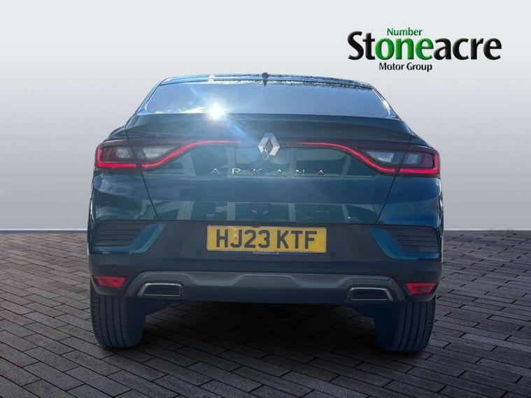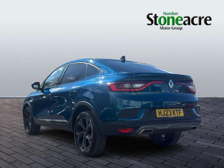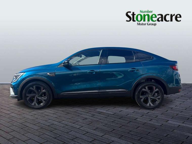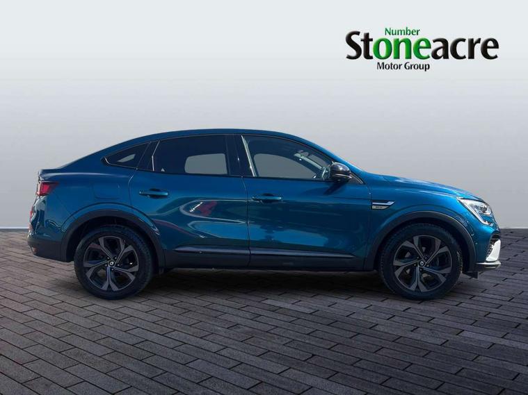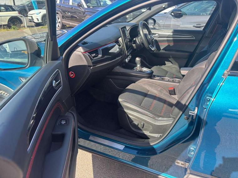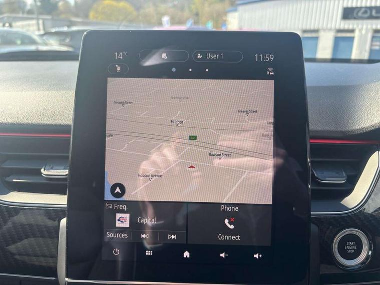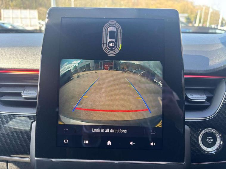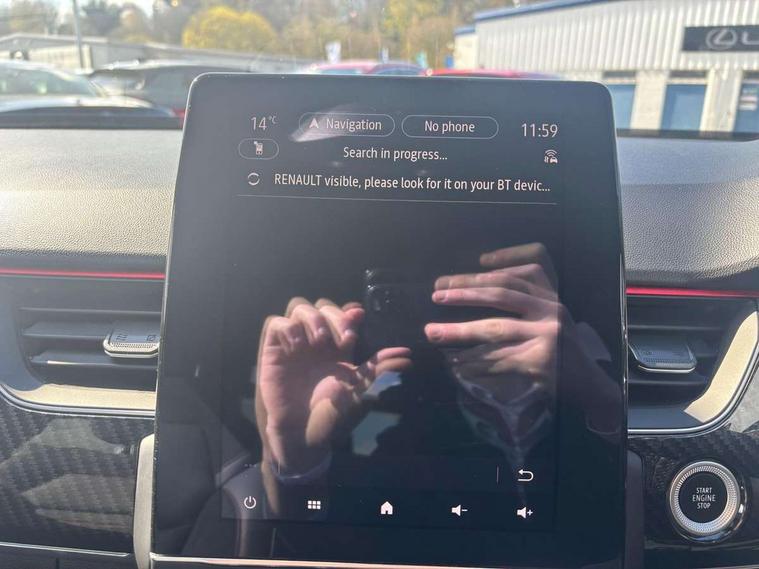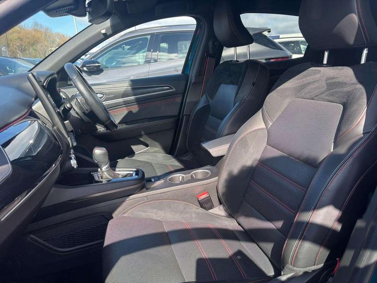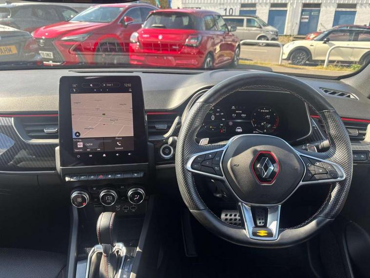 10" TFT Driver information display, Adaptive cruise control and speed limiter, Blind spot warning, Bluetooth system, EASY LINK 9.3" portrait touchscreen with navigation, Google search and traffic information, Eco mode, Front and rear parking sensors, Gear change indicator, Lane departure warning, Lane keep assist, Multi-sense - 3 driving modes and 8 ambient lighting, Rear cross traffic alert, Rear view camera, Renault automatic emergency assist, Smartphone integration compatible with Apple CarPlay and Android Auto, Traffic sign recognition with over speed warning, Trip computer, Variable assistance electric power steering, Wireless phone charger, Arkamys classic sound system with 6 speakers, DAB radio, USB port, 3rd brake light, Auto dimming rear view mirror, Automatic full LED headlights, Automatic headlights, Automatic high / low beam, Automatic windscreen wipers with rain sensor, Black door mirrors, Black side door protection with gun metal insert, Body colour rear boot spoiler, Body coloured bumpers, C-shaped LED front signature lighting (333 high), Chrome decopart on wing (fender molding) with R.S. Line badge, Double chromed exhaust tailpipes elements, Extra tinted rear windows and tailgate, Frameless rear view mirror, Front and rear electric windows, Front bumper with F1 blade and honeycomb front grille, Front driver window with one touch facility and anti-pinch function, Front grille with chrome on upper part, Glossy black door mirror and lower window lining, Gun Metal front and rear skid plates, Heated rear window, R.S. Line badges on front wing and hatch door, Rear windscreen wiper, Shiny black shark fin antenna, 3 seat bench in 2nd row, 60:40 split and fixed base rear seats, Aluminium pedals, Automatic climate control with combined filter, humidity sensor and AQS, Black interior roof lining, Carbon style dashboard, Central console with storage, Front and rear head restraints, Heated front seats, Heated steering wheel, Height and reach adjustable steering wheel, ISOFIX child seat fixing points on rear outermost seats, LED front and rear roof lights, Power adjustable driver and passenger seat with lumbar adjustable drivers seat, R.S. line black suede-leather upholstery with red/grey stiching, R.S. Line perforated leather steering wheel with red/black harmony and R.S. Line badge, Rear air vents, Red inserts on air vents, Single front passenger seat, Variable boot floor, Parking Pack - Hands-free parking & flank protection - Arkana, 3x3 point rear seat belts, ABS+EBA, Active emergency braking system, Distance warning alert, Driver airbag, Driver and passenger front and side airbag deactivation, Driver and passenger side airbags, Driver height adjustable seat belt, Electronic parking brake with auto hold, ESC (Electronic Stability Control), Front and rear no seatbelt warning sound, Front curtain airbags, Front head airbags, Hill start assist, Passenger airbag, Tyre pressure warning light, Anti drill door locks and locking fuel cap, Central door locking, Deadlocking system, Hands free keycard with Keyless access and start, RAID (Renault Anti-Intruder Device) automatic door locking, Rear side wing door and window child locking function (front driver door control panel), Thatcham alarm, 18" Silverstone diamond alloy wheels with red inserts,