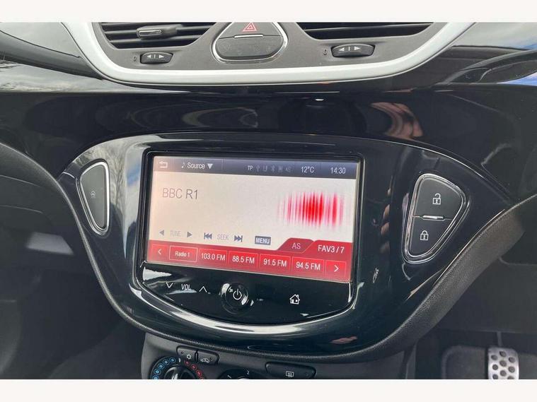 Bluetooth system, Cruise control + speed limiter, Door/boot open warning light, Exterior temperature gauge, Lights on warning, Low fuel level warning light, Multi function display, Rev counter, Service indicator, Speed sensitive power steering, Speed warning indicator, Trip computer, Sports suspension, 6 speakers, DAB digital radio module, Fingertip controls for audio system, USB connection, Black carbon flash roof, Black door mirrors, Black front grille, Body colour bumpers, Chrome door handles, Chrome effect tailpipe extension, Coming home function, Cornering front fog lights with black surround, Dark tinted rear glass, Electric adjustable door mirrors, Electric front windows/one touch facility, Extra tinted glass in rear windows and tailgate, Headlamp levelling, Heated door mirrors, Heated rear window, Heated windscreen, Laminated windscreen, LED daytime running lights, Manual folding door mirrors, Rear wiper, Roof spoiler, Tinted glass including windscreen, Two speed windscreen wipers, 12V power outlet, 2 height adjustable rear headrests, Adjustable dashboard illumination, Air recirculation system, Centre console with cupholders, Chrome gear knob, Delay courtesy light function, Driver/passenger reading lights, Driver/passenger sunvisors and vanity mirrors, Easy entry reclining front seats with memory, Electric reach + rake adjustable steering column, Front door pockets, Front map reading lights, Front seat belt pre-tensioners with load limiters, Glovebox, Grab handles, Height adjustable driver's seat, Height adjustable front headrests, Height/reach adjust steering wheel, Illuminated glovebox, Illuminated luggage compartment, Interior courtesy light operated by all doors, ISOFIX on outer rear seats, Lidded front door storage with drinks holder + armrest, Load restraining lashing points, Luggage compartment cover, Pollen filter, Rear bottle holder, Rear parcel shelf, Reclining front seats, Sports front seats, Sport pack 3 - Corsa, ABS + EBD + EBA, Brake assist function, Driver/passenger 2 stage auto adaptive airbags, ESP + traction control, Front and rear curtain airbags, Front and rear seatbelt reminder, Front seat side impact airbags, Height adjustable front seatbelts, Hill start assist, Manual passenger airbag deactivation function, Side impact protection beams, Three 3 point rear seatbelts, Tyre pressure monitoring system, Anti-drill door locks, Deadlocks, Immobiliser, Key left in ignition audible warning, Locking wheel bolts, Radio frequency remote central locking, Chrome effect speaker surrounds, 17" Black alloy wheels - Style 3, Tyre inflation kit,