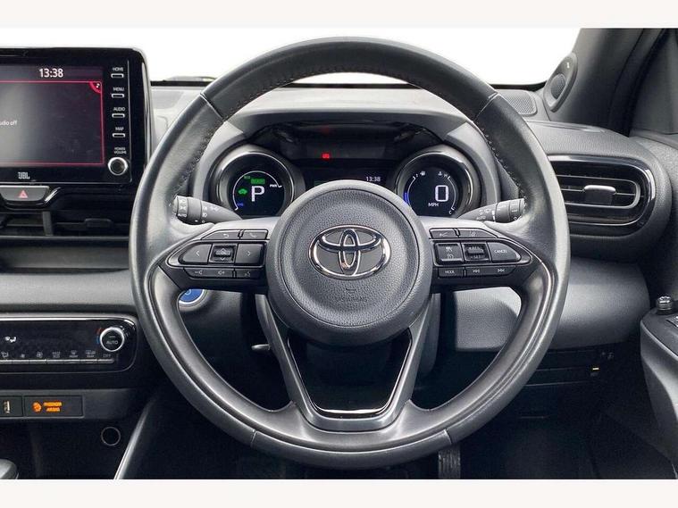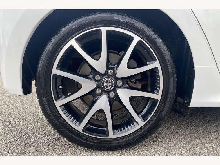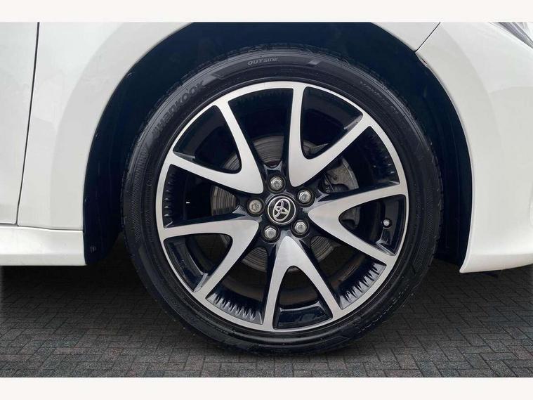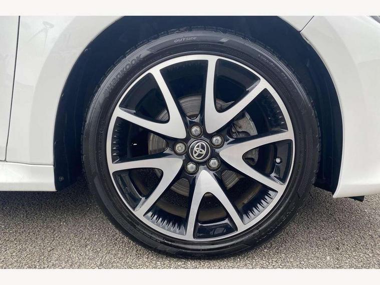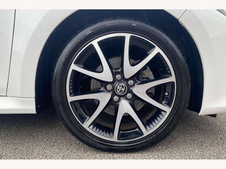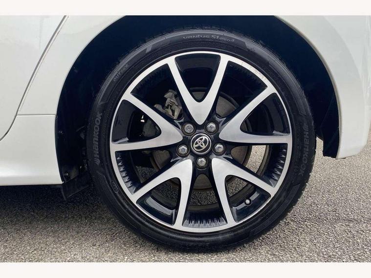 Adaptive cruise control, Adjustable speed limit with speed warning, Bluetooth connectivity, Colour binocular inspired displays with digital speedometer, E-call, Electric power steering, Hybrid energy display, Multi information display switches on steering wheel, Reversing camera, Smartphone integration with Apple CarPlay and Android auto, Vehicle Stability Control (VSC), 8" Multimedia display touch screen, JBL Premium sound system with 8 speakers, Toyota Touch 2 with DAB, USB connection, Acoustic windscreen glass, Auto windscreen wipers, Automatic headlights, Body coloured door mirrors, Electric adjustable heated door mirrors, Follow me home headlights, Front auto power windows with anti jam protection, Full LED rear lights, LED daytime running lights, LED front fog lights, LED Headlights, LED High mounted stop lamp, Painted front grille, Rear auto power windows with anti jam protection, Rear privacy glass, Rear spoiler, Shark fin antenna, Turning signal integrated indicators in door mirrors, 3 adjustable rear headrests, 3 spoke leather steering wheel, 60/40 split folding rear seat, Adjustbale boot height, Coat hooks in rear grab handles, Cup holders (2 front & door), Data Communication Module (DCM) connected services, Dual zone automatic air conditioning, Fabric seat with partial synthetic leather upholstery, Front armrest, Front sport seats, Glovebox, Height adjustable driver's seat, Height adjustable passenger seat, Isofix seat fixing, Leather gearshift, Map pockets on the backs of the front seats, Pollen filter, Shopping bag hooks, Tilt/telescopic steering column, 3 point seatbelts on all rear seats, ABS+EBD+Brake assist, Active headrests, Electronic parking brake, Emergency brake light system (EBS), Front passenger airbag on/off switch, Front seatbelt reminder, Hill start assist control (HAC), Rear child proof door locks, Rear seat belt reminder, Supplemental Restraint System (SRS) 8 airbags: Driver & passenger's airbags, dual side curtain airbags, side impact airbags, front centre airbag, Toyota Safety Sense 2, Precollison + Night time Pedestrian & Cyclist Detection, Lane Trace Assist, Auto High Beam, Intelligent ACC & Road Sign Assist, Tyre pressure warning system, Alarm/immobiliser, Keyless smart entry with push button start, Remote powered central double locking doors, Piano black interior trim, Soft touch instrument panel, Space saver spare wheel,