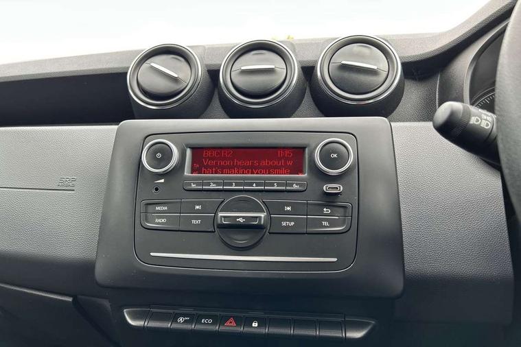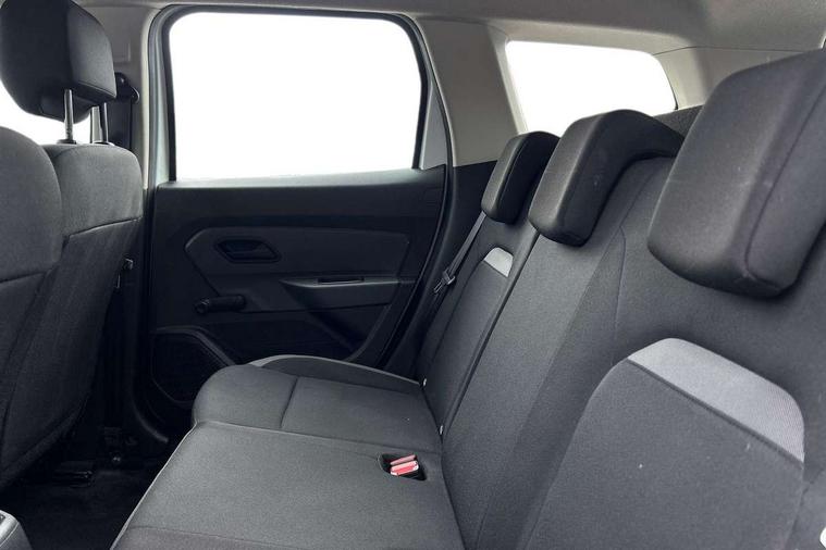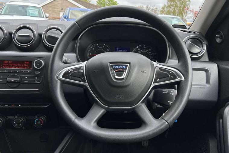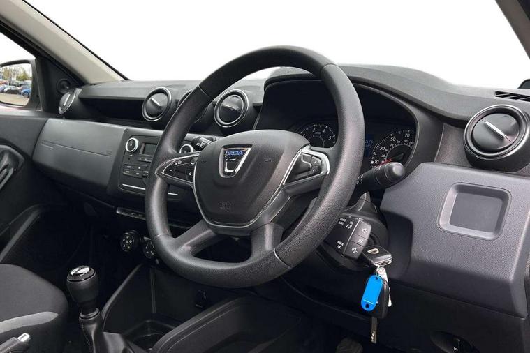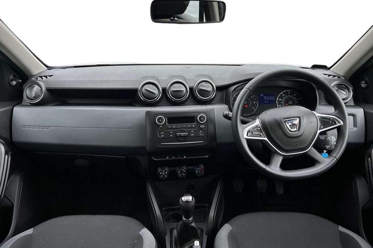 Bluetooth connectivity, Eco mode, Electric power assisted steering, On board computer, odometer, trip computer, average fuel consumption, average speed, service indicator, outside temperature gauge, Rev counter, Speed limiter, Stop/start system, 4x 20W FM/AM/DAB tuner with steering column mounted fingertip controls, Aux-in socket, USB connection for MP3 players, 3 speed windscreen wipers, Black door handles, Black door mirrors, Black longitudinal roof bars, Black side sills, Body coloured front and rear bumpers, Chrome front grille, Double optic headlights, Dusk sensor, Electric front windows, Front fog lights, Heated rear window, High level third rear brake light, LED daytime running lights, Manual rear windows, Manually adjustable door mirrors, Rear wash/wipe, Tailgate trim with satin chrome Duster inscription in black background, Tinted windows, 3 rear height adjustable headrests, 4 speed heating and ventilation with air recirculation, 60/40 split folding rear seat, Bainite cloth upholstery, Boot light, Front under seat storage, Gear shift indicator, Height adjustable driver seat, Height adjustable front headrests, Height adjustable steering wheel, Isofix points for child seats in both outer rear seats, Manual air conditioning, Matt black front door handles, Matt black rear door handles, Rear passenger reading light, 3x3 point rear seatbelts, ABS and Emergency brake assist, ASR traction control with Electronic stability control, Child locks on rear doors, Door open warning, Driver airbag, Driver and passenger seatbelt not fastened - visual and audible warning, Front passenger airbag deactivation, Front seatbelt pretensioners, Front side airbags, Height adjustable front seatbelts, Tyre pressure monitor, Remote central locking, Thatcham approved engine immobiliser, Dark carbon central console surround, Matt black central console fascia, Satin chrome air vent surround, Satin chrome instrument dial surrounds, 16" Fidji steel wheels,