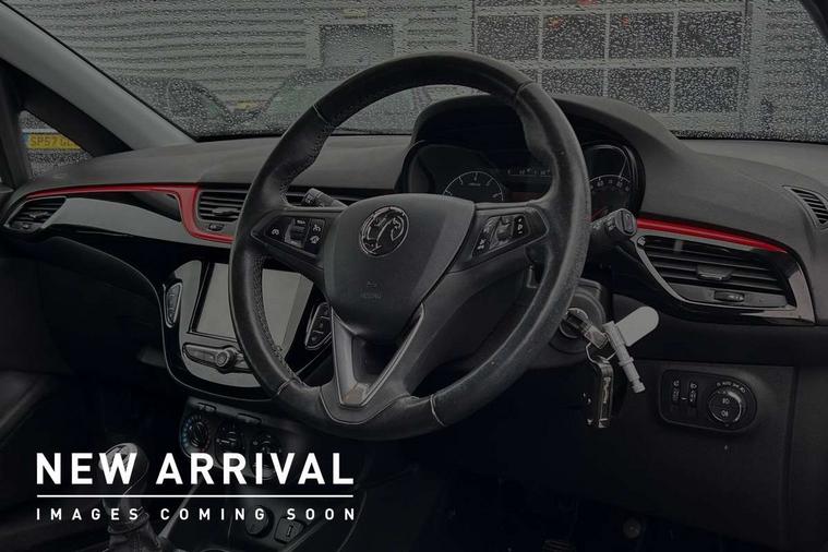 Apple car play/Android Auto, Bluetooth system, Central facia display, Cruise control + speed limiter, Digital fuel gauge with low fuel warning light, Digital water temperature gauge, Electric speed sensitive power steering, Exterior temperature gauge, Lights on audible warning, Navi 4.0 IntelliLink navigation with 7" touchscreen, traffic program, DAB , USB, Bluetooth audio streaming, Apple CarPlay/Android auto, and microphone, Rev counter, Service indicator, Speed warning indicator, Speedometer, Trip computer, White graphics on black background, Front anti roll bar, Sports suspension, Six speakers, Steering wheel mounted audio/cruise controls, Automatically dimming anti dazzle rear view mirror, Black door mirrors, Black foil on B-pillars, Black front grille logo bar, Black roof, Body colour bumpers, Body colour door handles, Chrome front grille, Dark tinted rear windows, Dipping rear view mirror, Door to door illumination, Electric adjustable/manual folding door mirrors (wide angle on driver's side), Electric headlight beam leveling, Electrically operated front windows with safety auto reverse/one touch facility, Front fog lights with black surround, Front fog lights with chrome surrounds, Griffin badges, Halogen headlights, Hazard warning lamps, Headlamp levelling, Heated rear window, Heated windscreen, High level LED centre brake light, Intermittent rear wash/wipe, Laminated windscreen, LED daytime running lights, Mineral black door mirror housings, Rain sensitive windscreen wipers, Rear fog lights, Rear wiper, Side window demist vents, Tinted windows, Two speed windscreen wipers with variable intermittent wipe, Welcome lighting, Windscreen demist vents, 12V electrical accessory socket in front, 3 spoke steering wheel, Air conditioning, Anti submarining ramps in all seats, Centre console with cupholders, Chrome gear knob, Chrome interior door handles, Comfort front seats, Driver's and front passenger's sunvisors, Driver's and front passenger's tiltable assist handles, Driver's and passenger's vanity mirrors with flip up cover, Driver's vanity mirror, Four adjustable facia vents, Front courtesy lights, Front door pockets, Front map reading lights, Front seat belt pre-tensioners with load limiters, Glovebox with lid, Grab handles, Griffin branded floor mats, Heated front seats, Height adjustable driver's seat, Height adjustable front headrests, Height adjustable rear head restraints with adjustable backrest, Illuminated luggage compartment, Instrument panel light dimmer, Interior tailgate handles, Isofix child seat mounting points on outer rear seats, Lace cloth trim, Load restraining lashing points, Luggage compartment cover, Multi function steering wheel, One piece folding rear seat, Pollen filter, Reach + rake adjustable steering column, Rear bottle holder, Rear courtesy lights, Rear reading lights, Reclining front seats, Sports front seats, Storage box on driver's side lower facia, Stowage facility for luggage compartment cover behind rear seats, Twin gas assisted tailgate struts, Two rear tiltable passenger assist handles, Sight and light Pack - Corsa, Winter pack - Corsa, Anti-lock braking system (ABS), Brake assist function, Electronic brake force distribution, Electronic Stability Programme, Energy absorbing steering column, Front and rear seatbelt reminder, Front and rear seatbelt unfastened audible warning and warning light, Front seatbelt force limiters, Gas pressure dampers, Height adjustable front seatbelts, Hill start assist, Manual passenger airbag deactivation function, Pedal release system, Rear child proof door locks, Reinforced passenger safety cell, Side impact protection beams, Six airbags - Driver's dual stage airbag/front passenger's dual stage airbag/front seat side impact airbags/full size curtain airbags, Three 3 point rear seatbelts, Three inertia reel lap/diagonal seatbelts, Traction control, Tyre pressure monitoring system, Electronically protected audio, Engine Immobiliser & Deadlocks, Key left in ignition audible warning, Locking wheel bolts, Remote control central locking, Visible vehicle identification number, Rhutenium facia with chrome effect inserts, 16" 4 twin spoke black alloy wheels, Tyre inflation kit,