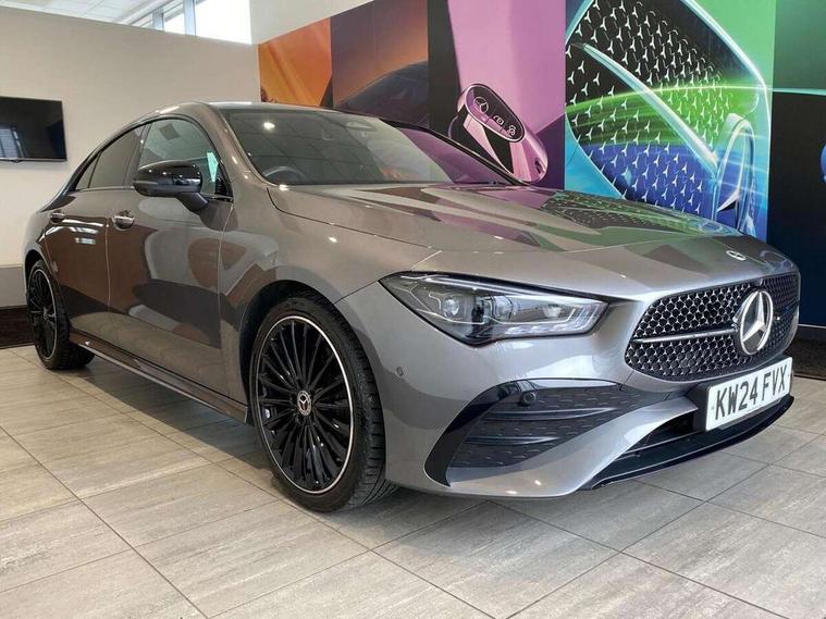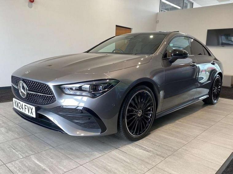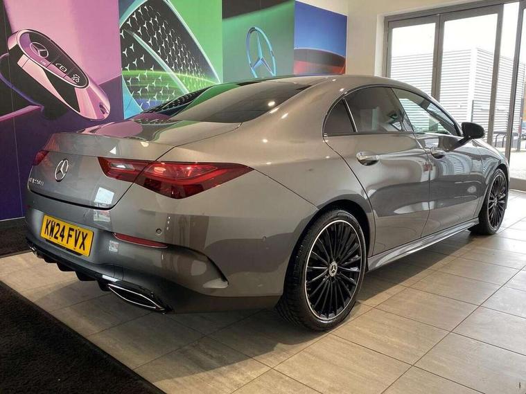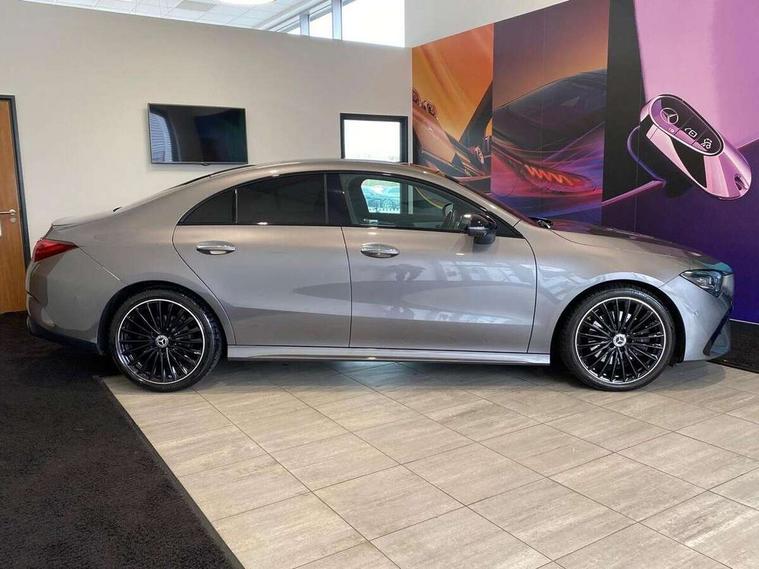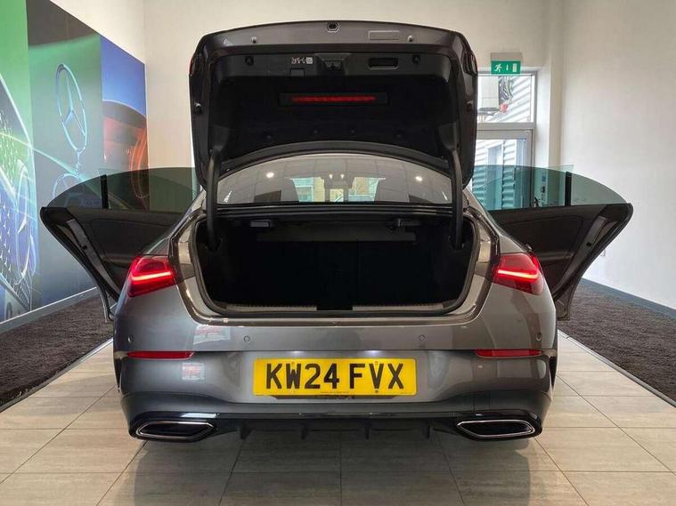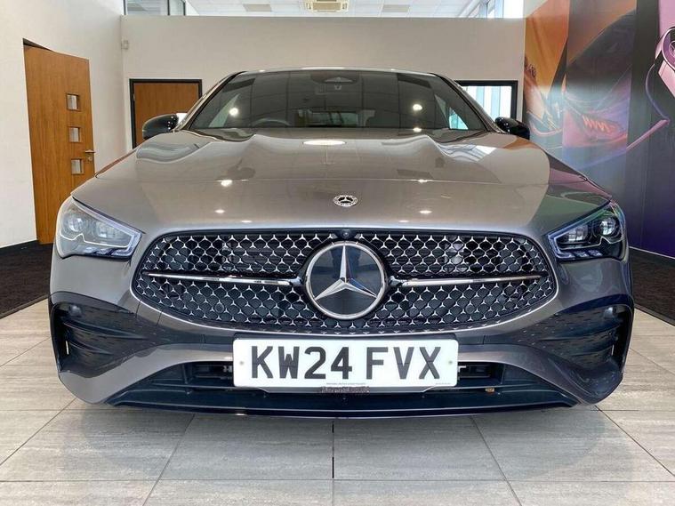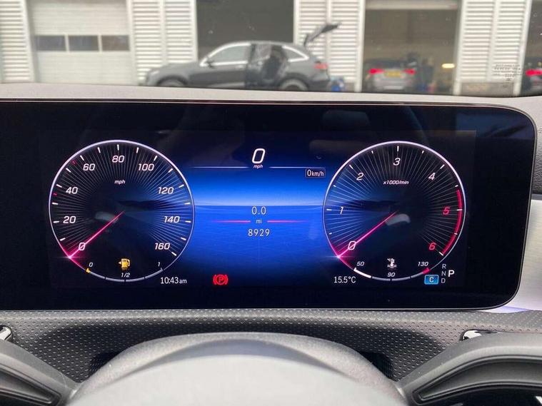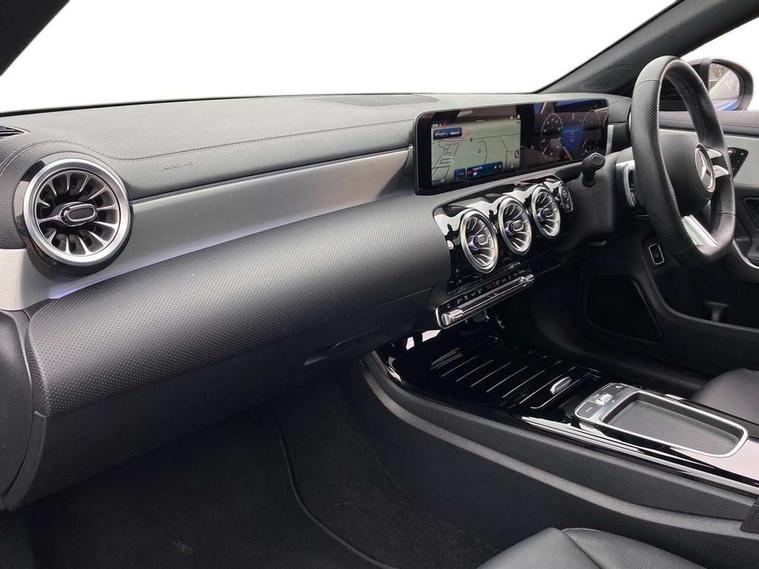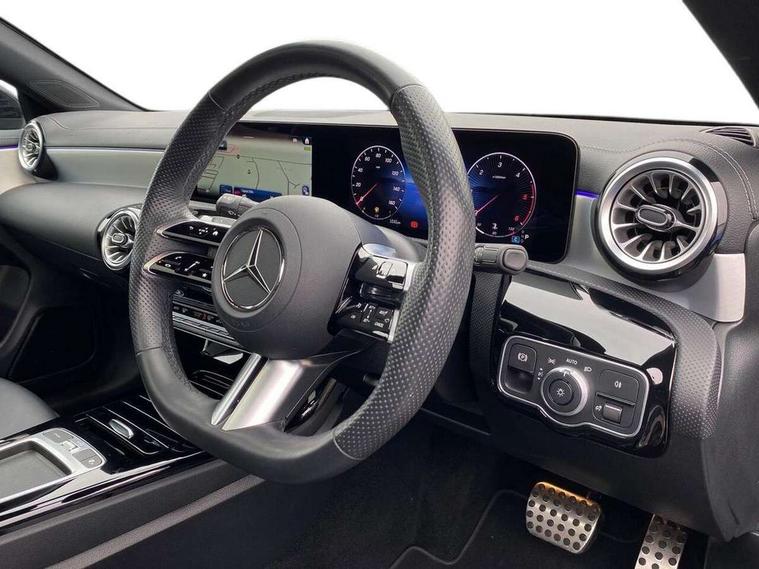 10.25 inch Instrument display with digital cockpit, 10.25 inch touchscreen central media display, Active lane keeping assist, Attention assist - Monitors steering behaviour and long journey fatigue, Bluetooth connection, Car wash mode, Cruise control with limiter, Direct steer system, DYNAMIC SELECT with a choice of driving modes (ECO, Comfort, Sport and Individual), ECO start/stop function, Fluid level warning indicator for fuel, oil, coolant and washer fluid, Hard-disk navigation, Hey Mercedes Voice activation, Lamp failure indicator, Mercedes me connect including emergency call system, accident recovery, breakdown and maintenance management, Mercedes me remote services, Outside temperature gauge, Owners manual in English, Pre-installation of private car share, Radio aerial integrated into front and rear windshields, Service indicator (ASSYST), Smartphone integration with Apple CarPlay and Android auto, Traffic sign assist, Trip computer in multifunction display with current consumption indicator, Wireless charging in the front centre console, Comfort suspension with ride height lowering, Rear axle multi-link, DAB digital radio tuner, MBUX multimedia system, Mercedes Benz advanced sound system (225 W) with 10 speakers, 1 central speaker, speakers on doors, a tweeter on door, one sub woofer + boost amplifier, Pre installation for Mercedes Benz Link, Adaptive brake lights, AMG body styling with AMG front apron and rear apron and visible exhaust tailpipe in chrome trim elements, Body colour door handles, Electric panoramic sunroof with automatic tilt and convenience closing fuinctions, rain sensor auto closing and electronic roller sunblind, Electric windows, Electrically adjustable and heated door mirrors with integrated LED indicators, Exhaust system with 2 Visible tailpipe trim elements and rear apron with trim in chrome, Hand free access, Headlamp assist automatic headlamp activation, Heated glass rear windscreen + timer control, High level LED third brake light, Integrated LED daytime running lights, Interior mirror with black reading lamps and frameless, LED tail lamp, Multibeam LED headlamps with adaptive highbeam assist plus, Privacy glass with dark tinting on rear side windows and rear window, Radiator grille with Mercedes-Benz pattern in chrome and central Mercedes star, single louvre in high-gloss black with chrome inserts, Rain sensing windscreen wipers with two sensitivity settings, Rear boot, Rear fog lamp, Rear side wing doors, Variable front intermittent wipers, 3 seat bench in 2nd row, 3 twin spoke flattened multifunction steering wheel in nappa leather - horizontal twin spoke in high gloss black, vertical twin spoke in silver chrome, 40:20:40 split folding rear seat backrests, Air conditioning - Two zone thermotronic luxury automatic climate control with display, Air vents with surround in silver chrome, Automatic child seat recognition sensor, Black roof lining, Brushed stainless steel sports pedals with rubber studs, Electrically adjustable front memory seats including 4 way lumbar support, Floor mats with stitched AMG lettering, Fluorescent jacket, Front centre armrest with stowage, Galvanished gear shift paddles in silver chrome, Heated front seats, Illuminated front door sills with Mercedes Benz lettering and changeable cover, Interior lighting - 64 colour Ambient lighting, Luggage net on driver/front passenger seat backrest, Manually height and reach adjustable steering column, Rear armrest with two integral cup holders for drinks, Rear head restraints, Single front passenger seat, Sport seats with fixed head restraints, Stowage compartment in centre console with retractable cover, Sunvisors with illuminated vanity mirrors, Twin front cupholders, Two outer rear seat isofix and top tether child seat fixing points, Drive parking assist pack with 360 degree camera - CLA, Keyless go comfort pack - CLA, Light and sight pack - CLA, Mirror pack - CLA, Night package - CLA, Seat comfort pack - CLA, USB package plus - CLA, Active bonnet pedestrain safety measure which detects an impact and raises bonnet by 65mm, Adaptive brake assist with hold function and hill start assist, Anti lock braking system (ABS) with brake assist, Black seat belts, Bonnet with power domes, Brake calipers with Mercedes-Benz lettering, Brake pad wear warning indicator, Childproof locks manually operated for rear doors and electrically operated for rear power windows, Crash responsive emergency lighting, Driver and front passenger head and sidebags, Driver and front passenger windowbags, Drivers knee airbag, Dual stage driver and front passenger airbags, Electric parking brake, Electronic stability programme with acceleration skid control, ESP curve dynamic assist, Exit warning, Front and rear seatbelt reminder, Front passenger seat occupancy sensor, Perforated front brake discs, Sports braking system, Three point rear seat belts, Tyre pressure monitoring system, Warning triangle and first aid kit, Alarm system with immobiliser and interior protection -Thatcham category 1, Guard 360 deg vehicle protection - tow away protection with visual, acoustic warning, interior monitoring, preinstallation for parking damage, Remote central locking and crash sensor with emergency opening function, Light aluminium with longitudinal grain interior trim, 19" AMG multi-spoke black painted light alloy wheels with high sheen rim finish, Summer tyres, Tirefit tyre sealant kit,