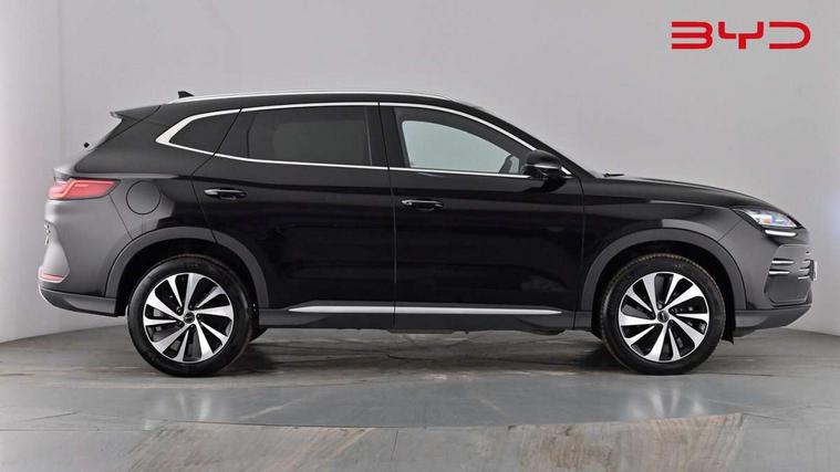 12.3" TFT full LCD instrument panel, 360 camera, Adaptive Cruise Control (ACC) and Intelligent Cruise Control (ICC), Automatic vehicle hold, Blind spot detection, BYD voice control assistant "Hi, BYD", Controller Deceleration Parking (CDP), Drive mode select (Eco, normal, sport, snow), e-Call (emergency call), Electric tailgate release, Emergency Lane Keeping Assist (ELKA), Forward collision warning, Front and rear parking sensors, Front cross traffic alert and front cross traffic brake, Head up Display, Indirect driver fatigue management, Intelligent Speed Limit Control (ISLC), Keyless system entry and start, Lane change assist, Lane Departure Assistant (LDA) and Lane Departure Warning (LDW), Lane departure prevention, PAS, Predictive collision warning, Rear collision warning, Rear cross traffic alert and rear cross traffic brake, Rollover Control System (RMI), Smartphone wireless charging, 2 x 15W, Traffic sign recognition (TSR), Vehicle-to-Load (V2L) function, 11kW on board charger, Mode 3 Type 2 charging cable (3 phase), V2L (Vehicle to load) power strip - Type F, 15.6" Electrically rotatable touchscreen, FM/DAB+ radio, Front USB ports, 1 x 18W Type C, 1 x 60W Type C, Infinity sound system with 10 speakers, Rear USB ports, 2 x 18W Type C, Aluminium roof rails, Auto dimming interior rear view mirror, Auto headlamps (on/off), Dynamic welcome lights, Electric folding and heated door mirrors, Emergency tow hook, Exterior mirror footlights, Follow me home headlights (The headlights turned on in advance and delayed off function), Front windscreen, UV protection, thermal insulation and sound proofing, High beam assist, LED 3rd brake light, LED daytime running lights, LED Headlights, LED taillights, One touch electric front/rear windows with pinch protection, Panoramic sunroof with anti-pinch sensor and electrically adjustable sunshade, Rain sensor windscreen wipers, Rear fog lights, Rear side wing doors, Rear window and rear windscreen with tinted glass, Rear wiper, 12V power outlet, 3 seat bench in 2nd row, 8 way electrically adjustable drivers seat, Adjustable rear headrests, Boot parcel shelf, Driver and passenger sunvisors with illuminated vanity mirrors, Driver seat memory function, Front centre armrest with 2 cupholders, Front LED reading lights, Front passenger seat with 4-way electric adjustment, Front seat footlights, Heat pump, Heated front seats, Heated steering wheel, Integrated headrest in front seats, ISOFIX and i-Size for front passenger and outer rear seats, LED front door lights, Nylon floor mats, PM2.5 air filter, PM2.5 air purification system, Rear air vents, Rear armrest with 2 cupholders, Rear side LED reading lights, Rhythm-reactive multi-colour ambient lighting, Single front passenger seat, Split folding rear seats - 40/60, Vegan leather multifunction steering wheel, Vegan leather upholstery, Ventilated front seats, 3x3 point rear seatbelts, ABS/EBD, Automatic emergency braking system, Brake override system (BOS), Child presence detection, Comfort stop, Door open warning, Driver airbag, Electric parking brake, Force limiting pre-tensioned front seat belts, Front centre airbag, Front passenger airbag, Front passenger airbag deactivation, Front side airbags, Hill descent control, Hill hold control, Hydraulic Brake Assist (HBA), Hydraulic brake boost, Mechanical child safety lock, Rear middle seat force limiting seat belt, Rear seat belt pretensioners, Reflective vest, Side curtain airbags, Traction control system (TCS), Tyre pressure monitoring system (TPMS), Vehicle Dynamics Control System (VDC), Warning triangle, 2 x Smart keys, Anti theft alarm system, Automatic door locking, 19" Bi-colour alloy wheels, Tyre nut covers remover, Tyre repair kit,