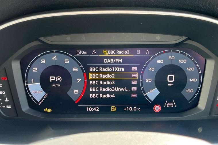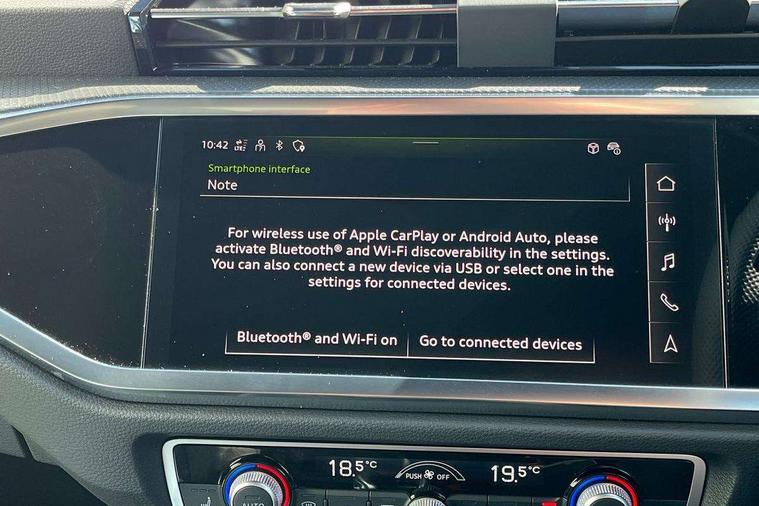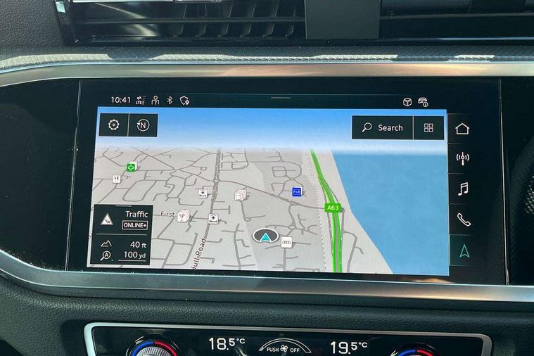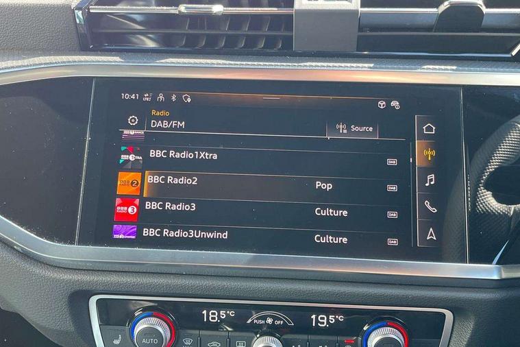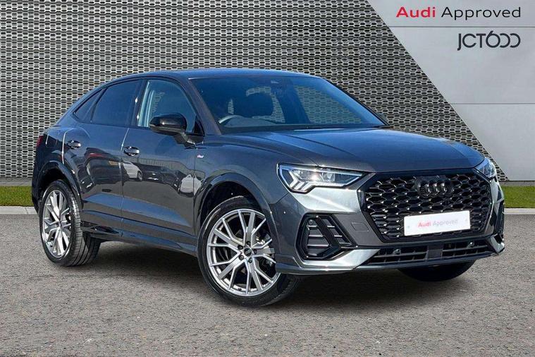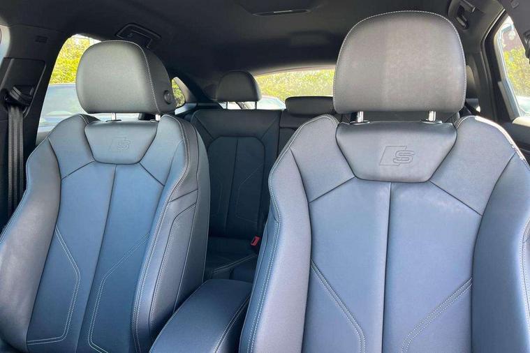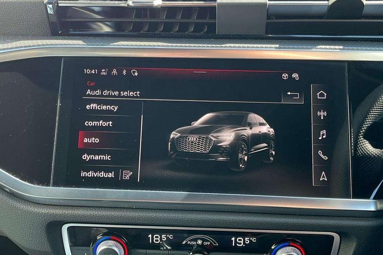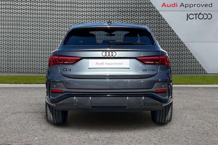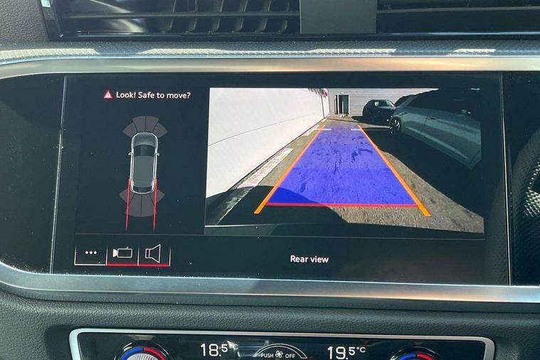 Audi connect safety and service, Audi drive select, Audi lane departure warning, Audi Virtual Cockpit - 10.25" display, Bluetooth interface, Camera based traffic sign recognition, Distraction and Fatigue warning, Legal emergency call, MMI Navigation Plus with high resolution 10.1 inch touchscreen colour display, Power operated tailgate, Progressive steering, Service interval indicator, Smartphone interface includes wireless Apple carplay/Android Auto, Start stop system with recuperation, Voice control system with natural language interaction, Sports suspension, 2 USB-C ports with charge and data functions, 6 passive loudspeakers, DAB digital radio module, Acoustic windscreen, Audi Beam uses LEDs to project the Audi logo onto the ground as you exit your Q3, Auto dimming door mirrors, Auto dimming frameless rear view mirror, Electrically folding, adjustable and heated door mirrors with integrated LED side indicators and kerb view function for passenger side, Front and rear electric windows, Front fog lights, Front underbody protection in manhattan grey paint finish, High gloss black finish B and C pillars, Honeycomb design radiator grille in matt anthracite black, LED Dynamic rear indicators, LED headlights with LED daytime running lights, LED rear lights, LED third brake light, Privacy glass dark tinted rear and rear-side windows (from B-pillar backwards), Rain and light sensors, Rear diffuser grille in grained matt black, Rear diffuser strip in matt anthracite black, Rear side wing doors, Rear underbody protection in matt black, Rear wiper, S line front and rear bumpers and side skirts in contrasting Manhattan grey paint finish, Variable front intermittent wipers, 12V socket in rear centre console, 3 seat bench in 2nd row, 40:20:40 folding with manual adjustment for 60:40 forwards/backwards position and backrest angle, Adjustable rear seat bench/backrest with centre armrest and cupholder, Black carpet mats, Black cloth headlining, Dual zone electronic climate control, Electric lumbar support, Front and rear black floor mats with contrast stitching in rock grey, Front and rear headrests, Front centre armrest, Height and reach adjustable steering wheel, Illuminated door sill trims with S logo, ISOFIX child seat mounting for front passenger with airbag deactivation and outer rear seat including top tether attachment point for outer rear seats, Luggage compartment sill protection in stainless steel, Manual front seats with height adjustment, Perforated leather gearknob, Single front passenger seat, Stainless steel pedals, Twin leather upholstery with front sport seats + S embossing, Black styling pack - Q3, Non smoking pack - Q3, 3x3 point rear seatbelts, 6 airbags - Driver, front passenger, curtain and side windows, Audi pre-sense front with pedestrain and cyclist recognition, Electrically operated child locks on rear doors, Electromechanical parking brake, Electronic stabilisation control including ABS, ASR and EDL, Front seatbelt reminder, Hill descent control, Hill hold assist, Pre sense basic, Seatbelt monitoring, Tyre pressure warning, Warning triangle and first aid kit, Anti theft wheel bolts, Immobiliser, Remote central locking, Thatcham approved category 1 anti theft alarm, Aluminium look interior elements, Detail dashboard around MMI touch colour display in glass look, black with surround in aluminium look, Leatherette door armrest, Piano black inlay,