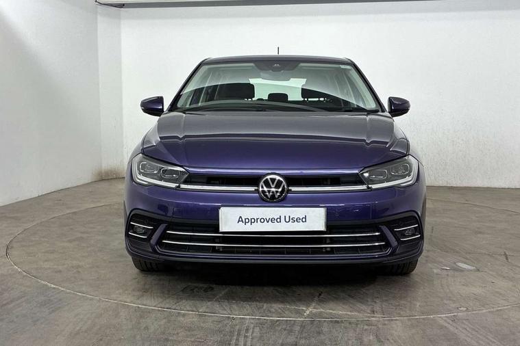 Adaptive cruise control without follow-to-stop and speed limiter, Bluetooth mobile phone interface, Digital Cockpit Pro with 10.25" Display, Driver alert system, Dynamic road sign display, Emergency call service, Power assisted speed sensitive steering, Preparation for We connect and We connect plus, Speedo and rev counter, electronic odometer, trip, service interval display and fuel gauge, Standard rear axle, Travel Assist - Lane keeping system and traffic jam assist, Travel assist including emergency assist, Trip computer, Warning signal and warning light for front and rear seatbelts not fastened, Washer fluid level indicator, Wireless app connect, Front wheel drive, Rear shock absorpion, Start-stop system with battery regeneration (recuperation - energy recovery during braking), DAB Digital radio, Diversity antenna for FM reception, Front and rear 6 speakers, Automatic dimming interior rear view mirror, Automatic headlights, Body colour door handles, Body coloured bumpers and radiator grille with chrome trims, Electric front windows, Heat insulating darkened glass in side and rear windows, Heat insulating glass windscreen, LED separate daytime running lights with coming/leaving home function, Power folding adjustable/heated exterior mirrors and front passenger exterior mirror lowering function, Rain sensor, Rear electric windows, Rear fog light, Rear side wing doors, Rear windscreen washer and wiper with interval delay, Third brake light, 12V power socket in centre console, 2 USB-C ports in the front, 2 USB-C charging sockets on the center console in the rear, 3 rear head restraints, 60/40 split folding rear seat and rear seat bench not split, Air care climatronic air conditoning system with active combination filter and 2-zone temperature control, Ambient lighting, Ceramique headliner, Chrome plated radiator grille inserts, air vent surrounds and light switch surrounds, Door and side trim panel, Driver and front passenger seat height adjustment, Driver/passenger sunvisors with illuminated vanity mirrors, Front + rear carpet mats, Front centre armrest, Front footwell illumination, Front seat backrest storage pockets, Front sports comfort seats, Handbrake lever handle in leather, Isofix child seat preparation easy-fit (for two outer rear seats, and front passenger seat) compatible with I-size, Leather trimmed gear knob, LED interior light with switch off delay and dimmer, 2 reading lights front and rear, Luggage compartment cover, Luggage compartment floor, Luggage compartment lighting, Lumbar adjustment for front seats, Multifunction steering wheel, Single front passenger seat, Standard pedal cluster, IQ LED matrix headlights pack - Polo, Light and vision pack - Polo, 3 point height adj front seatbelts + pretensioners, 3x3 point rear seatbelts, ABS, Driver and front passenger airbag with front passenger airbag deactivation, Drivers and front passengers safety optimised head restraints, ESC (Electronic stability control) + EDL (Electronic Differntial lock) and ASR (Traction control), Extended and predictive pedestrian/ cyclist protection, Front curtain and side airbags with center airbag, Front disc brakes, Hill hold control, Manual child lock in rear doors, Rear drum brakes, Single tone horn, Tyre pressure loss indicator, Alarm with interior protection, Anti-theft alarm system with interior monitoring, backup horn, and towing protection, Anti-theft wheel bolts, Electronic engine immobiliser, Chrome applications on rotary light, mirror adjustment, window regulator switches, outlet with frame in black, Deep iron gloss decorative inserts in dash and front door panels, Low rolling resistance tyres,